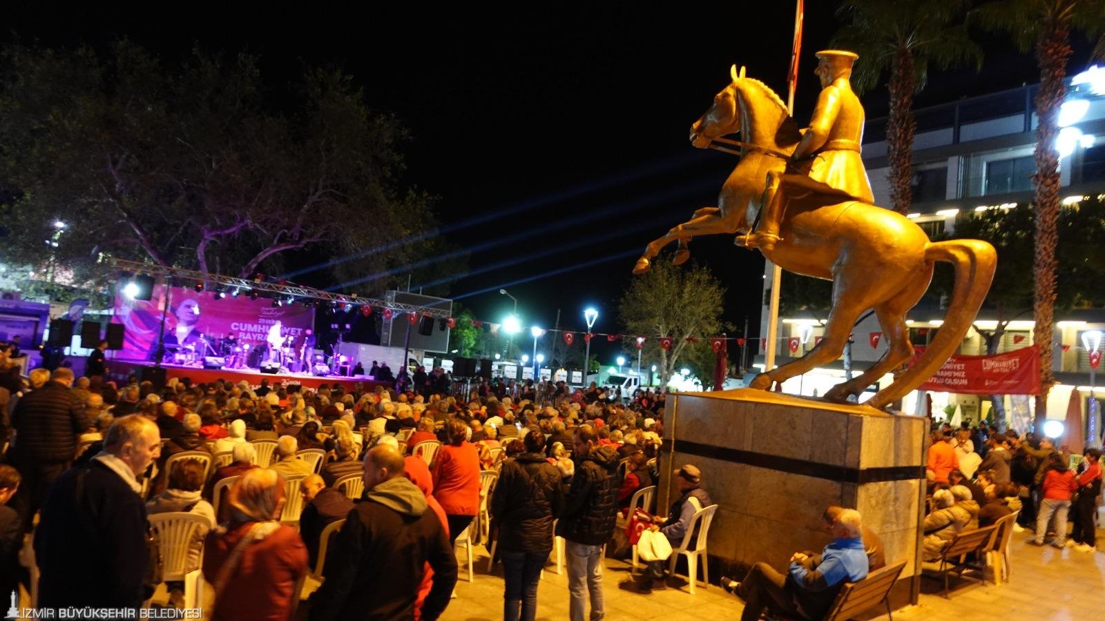 İzmirliler, İzmir Büyükşehir Belediyesi'nin "Cumhuriyet Her Yerde" etkinlikleri ile Cumhuriyet Bayramı’nı bir hafta boyunca farklı ilçelerde kutladı. Hem yetişkinlere hem gençlere ve çocuklara hitap eden aktivitelere katılan yurttaşlar, Cumhuriyet coşkusunu doyasıya yaşadı. "Cumhuriyet Her Yerde" kutlamaları, 29 Ekim Cumhuriyet Bayramı’nda Dikili ve Selçuk’ta son buldu. Dikili merkezinde üç konser düzenlendi. İzmir Büyükşehir Belediyesi Kültür Orkestrası’nın Enes Kunduracı ve Özlem Menokan konserleri ile İzmir Büyükşehir Belediyesi Türk Halk Müziği Orkestrası’nın Burak Maral konseri yoğun ilgi gördü.