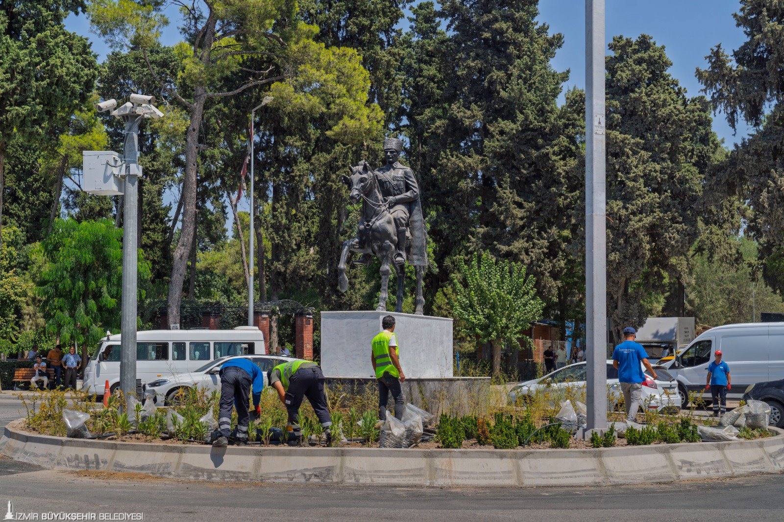Peyzaj çalışmalarında İzmir’in iklim rejimiyle uyumlu ve çoğunluğu doğal türlerden oluşan, ılgın, zakkum, ateş dikeni, katırtırnağı, abelya, taflan türü bitkilerin kullanıldığını ifade eden Gizem Özçıngırak, “İzmir’in iklim rejimine uygun olan, büyük oranda doğal bitki örtüsünü kullanarak peyzajın dokusunu güçlendirmeye çalışıyoruz. Bu sayede su kaynaklarının azalmasını engellemeyi hedefliyoruz” şeklinde konuştu.