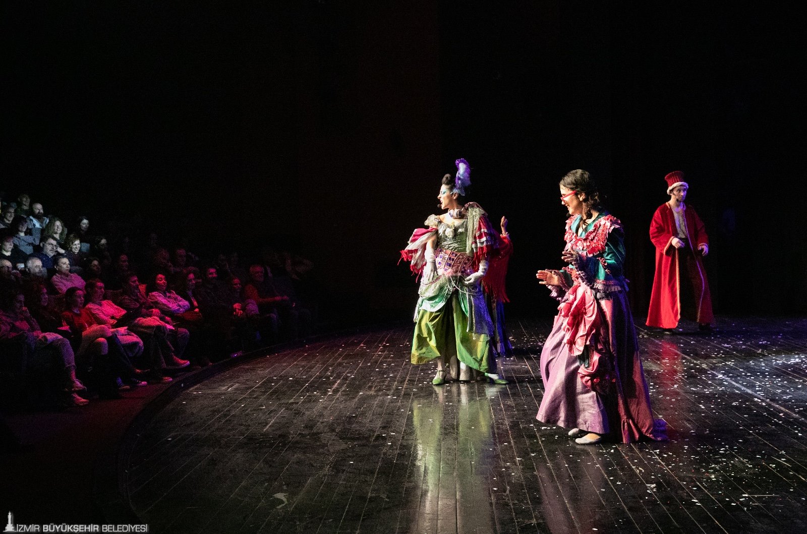 İzmir Büyükşehir Belediyesi Şehir Tiyatroları (İzBBŞT) yeni oyunu “Demokrasi Gemisi”nin prömiyerini yaptı. İzBBŞT İsmet İnönü Sahnesi’ndeki prömiyere bürokratlar, gazeteciler, kültür ve sanat camiası ile tiyatroseverler katıldı. Usta yazar Aziz Nesin’in “Karagöz” metinlerinden hareketle İzBBŞT Genel Sanat Yönetmeni Yardımcısı Harun Özer’in geleneksel orta oyunu formunda sahneye uyarladığı Demokrasi Gemisi, seyirciden tam not aldı. Günümüz Türkiye’sinde yaşanan aksaklıkları mizahi bir dille hicveden oyunda, sanatçıların performansı sık sık alkışlarla kesildi.