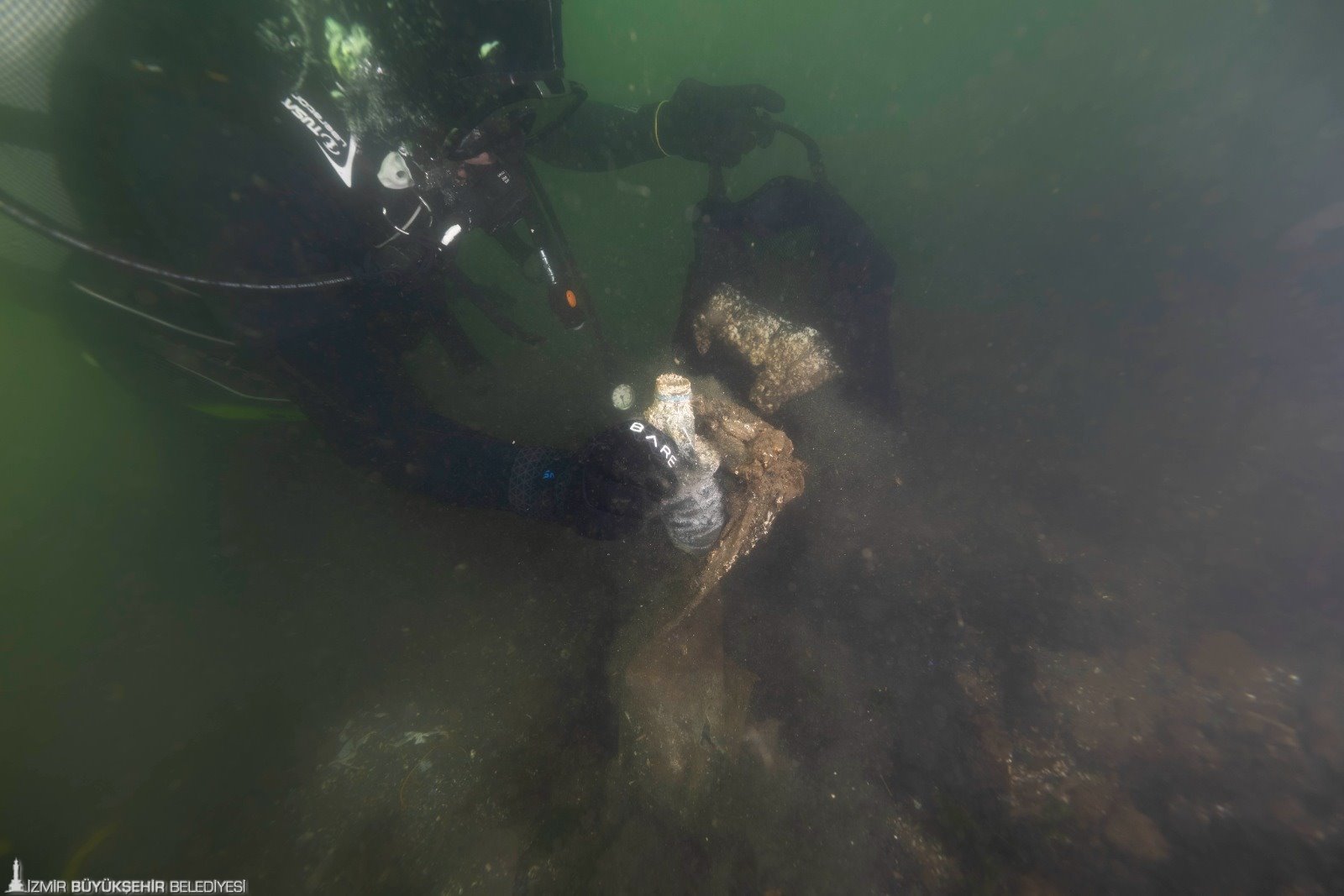 Çevre ve deniz ekosistemi sorunlarına dikkat çekmek amacıyla İzmir Büyükşehir Belediyesi dalgıçları Körfez’de dalış yaptı. Çok sayıda ambalaj atığının toplandığı dalıştan çıkan malzemeler Darağaç Sanat Kolektifi tarafından tasarım malzemesi olarak kullanılıp Karşıyaka İskelesi’nde sergilenecek.