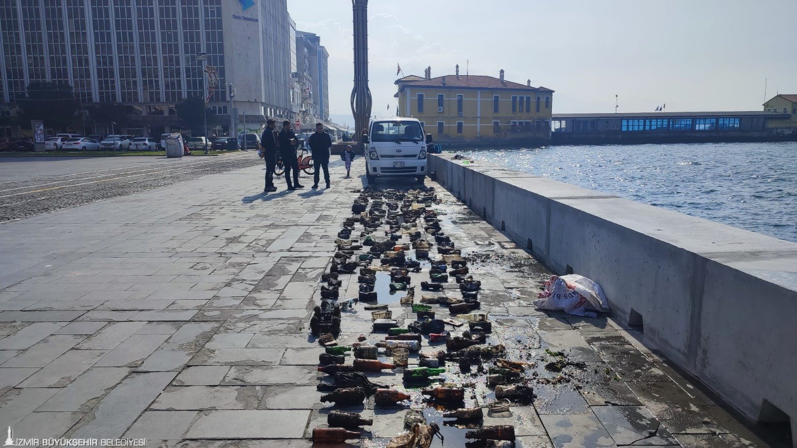 Temiz bir Körfez için dört koldan çalışan İzmir Büyükşehir Belediyesi, çevre ve deniz ekosistemi sorunlarına dikkat çekmek ve bu konuda farkındalık yaratmak için farklı bir çalışmaya imza attı. İZDENİZ ve İzmir Büyükşehir Belediyesi İtfaiyesi dalış ekipleri, Cumhuriyet Meydanı’nda dalış yaptı. Ekipler, İzmir Körfezi’nden çok sayıda ambalaj atığı çıkardı. 5 kişilik dalgıç ekibi ile gerçekleştirilen dalış sonrası çıkan atıklar önce Cumhuriyet Meydanı’nda sergilendi. Sergilenen atıklar bölgeden geçen vatandaşlar tarafından hayretle izlendi.