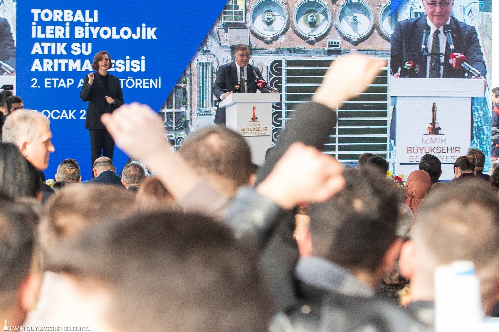 İzmir Büyükşehir Belediye Başkanı Dr. Cemil Tugay, İzmir’de Çiğli İleri Biyolojik Atık Su Arıtma Tesisi’nin ardından en büyük kapasiteli ikinci atık su arıtma tesisi Torbalı Atık Su Arıtma Tesisi’nin ek ünitelerinin açılışını yaptı. Günde 57 bin metreküp arıtma yapacak şekilde kapasitesi artırılan tesisin açılış töreninde Torbalı Belediye Başkanı Övünç Demir, CHP İzmir İl Başkanı Şenol Aslanoğlu, Menderes Belediye Başkanı İlkay Çiçek, Buca Belediye Başkanı Görkem Duman, Tire Belediye Başkanı Hayati Okuroğlu, Gaziemir Belediye Başkanı Ünal Işık, Kemalpaşa Belediye Başkanı Mehmet Türkmen, Foça Belediye Başkanı Saniye Bora Fıçı, Ödemiş Belediye Başkanı Mustafa Turan, Beydağ Belediye Başkanı Şakir Başaran, Selçuk Belediye Başkanı Filiz Ceritoğlu Şengel, İzmir Büyükşehir Belediyesi Başkan Vekili Zafer Levent Yıldır, İZSU Genel Müdürü Gürkan Erdoğan, meclis üyeleri, muhtarlar, sivil toplum kuruluşlarının temsilcileri ve yurttaşlar yer aldı.