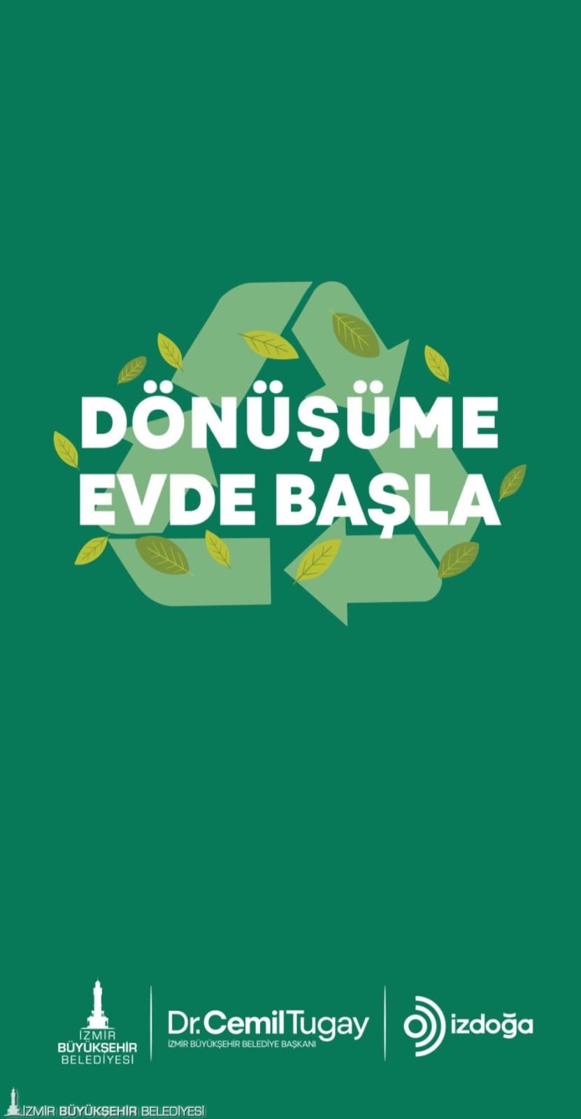 İzmir Büyükşehir Belediyesi ve İZDOĞA AŞ iş birliğiyle yürütülen “Dönüşüme Evde Başla” projesi kapsamında, görevli personelin hanelerden topladığı atık poşetlerinin üzerinde bir QR kod yer alıyor. İzmir Büyükşehir Belediyesi iştiraklerinden İzmir İnovasyon ve Teknoloji AŞ tarafından geliştirilen uygulama sayesinde oluşturulan veri tabanında hanelerin bilgileri kayıt altına alınıyor. Böylece toplama yapılan haneler ve atık poşetleri eşleştiriliyor. Toplanan poşetlerde yer alan ambalaj atıkları İzDönüşüm Fabrikası’nda türüne göre ayrıştırılarak ekonomiye kazandırılıyor. Atık poşetlerine yalnızca ambalaj atıklarının atılması gerekiyor. Belediye tarafından dağıtılan poşetlere organik atık atanlar cezai yaptırıma tabi tutuluyor.