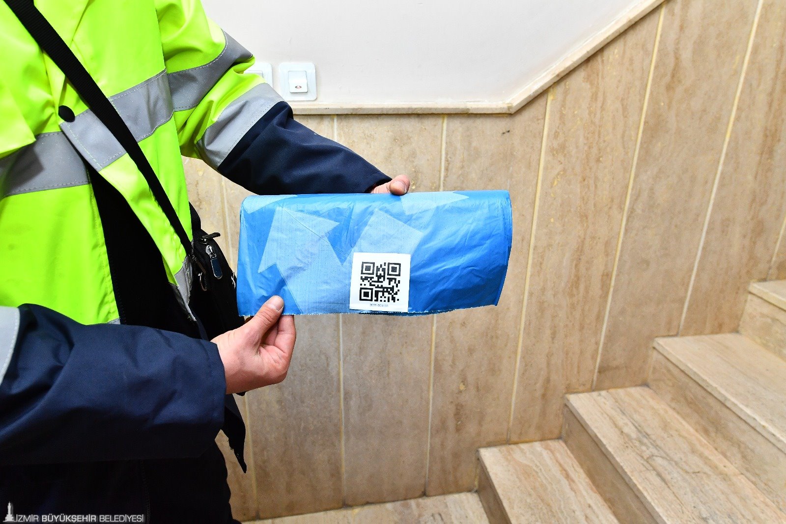 Görevli personelin haftalık olarak hanelerden topladığı atık poşetlerinin üzerinde bir QR kod yer alıyor. İzmir Büyükşehir Belediyesi iştiraklerinden İzmir İnovasyon ve Teknoloji AŞ tarafından geliştirilen uygulama sayesinde oluşturulan veri tabanında hanelerin bilgileri kayıt altına alınıyor. Böylece toplama yapılan haneler ve atık poşetleri eşleştiriliyor. Toplanan poşetlerde yer alan ambalaj atıkları İzDönüşüm Fabrikası’nda türüne göre ayrıştırılarak ekonomiye kazandırılıyor. Atık poşetlerine yalnızca ambalaj atıklarının atılması gerekiyor. Belediye tarafından dağıtılan poşetlere organik atık atanlar cezai yaptırıma tabi tutuluyor.