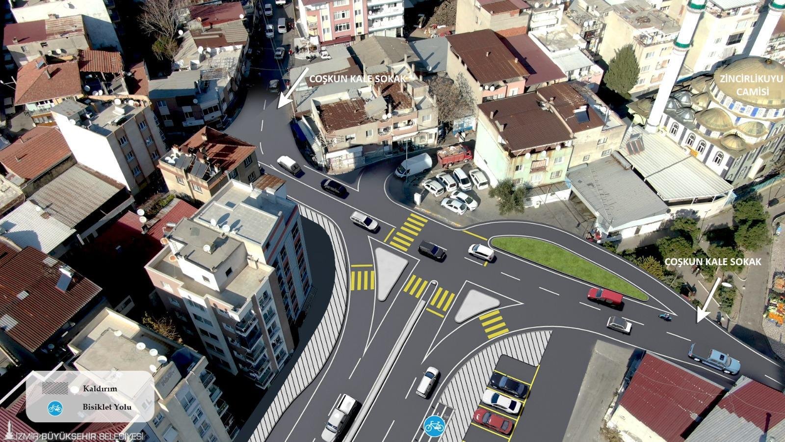 Proje sayesinde Karabağlar Dostluk Bulvarı ile Coşkun Kale Sokak arasında yeni imar yolu açılarak Eskiizmir Caddesi ile Yeşillik Caddesi birbirine bağlanmış olacak. Yeni imar yolu; Dostluk Bulvarı, Şehit Pilot Volkan Koçyiğit Bulvarı ve Sevgi Bulvarı’nın kesişimindeki kavşaktan başlayarak Bozyaka Kapalı Pazaryeri’nin bulunduğu 5714/1 sokak istikametinde ilerleyerek Zincirlikuyu Camii’nde son bulacak. Böylelikle iki nokta arasındaki mesafe yaklaşık 600 metre kısaltılmış olacak. Karabağlar Bozyaka, Sarıyer ve Sevgi mahallelerindeki trafik düğümünü çözecek bağlantı yolu araç, yaya ve bisikletli ulaşım için daha güvenli ve konforlu bir hale gelmiş olacak.