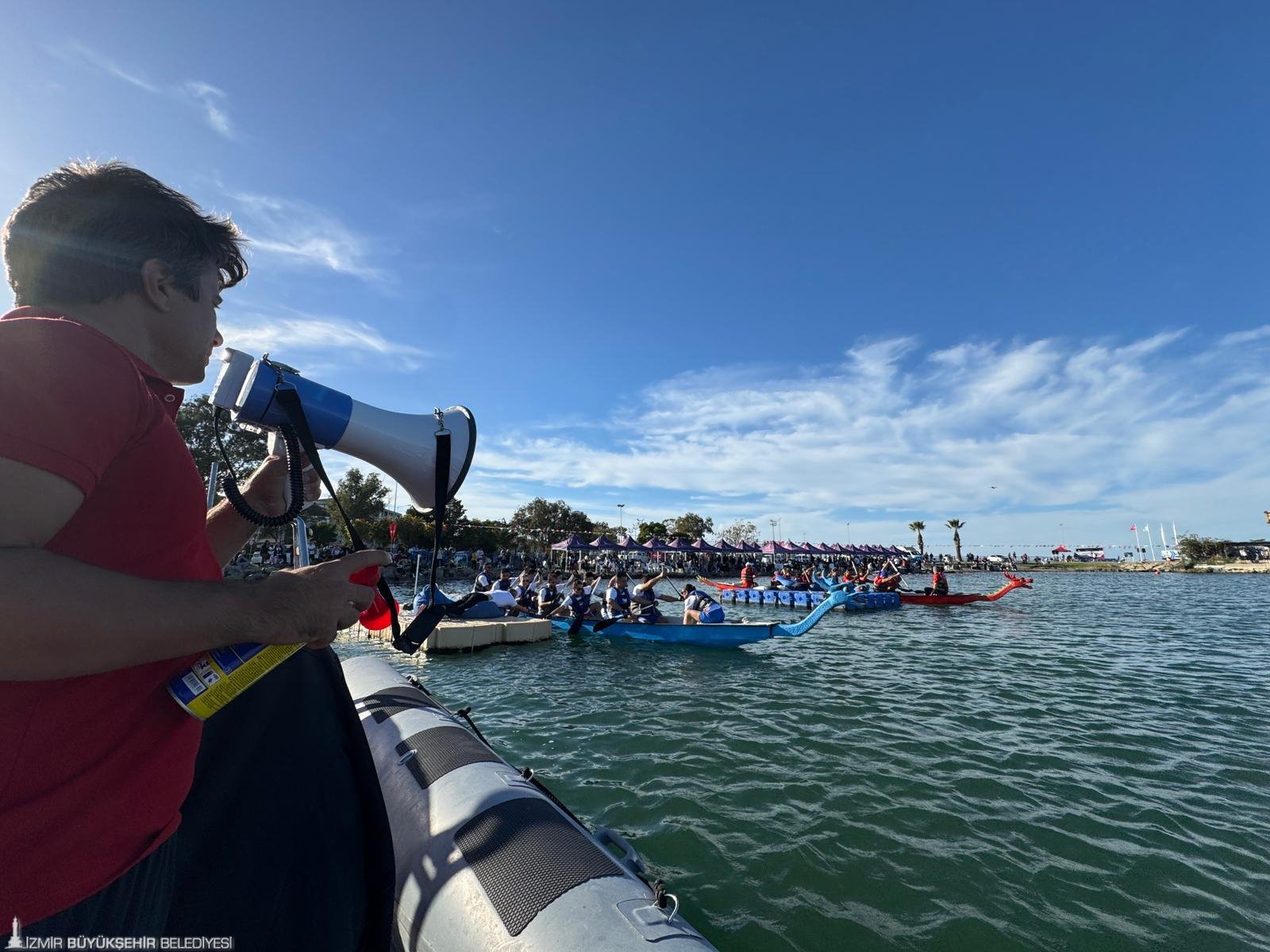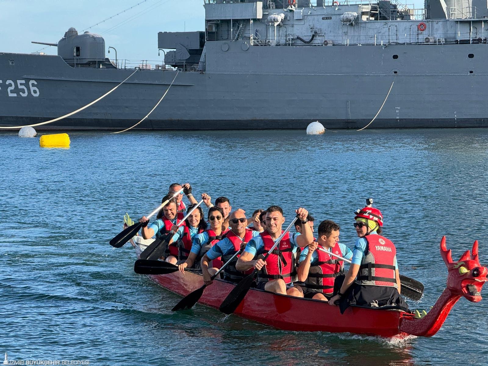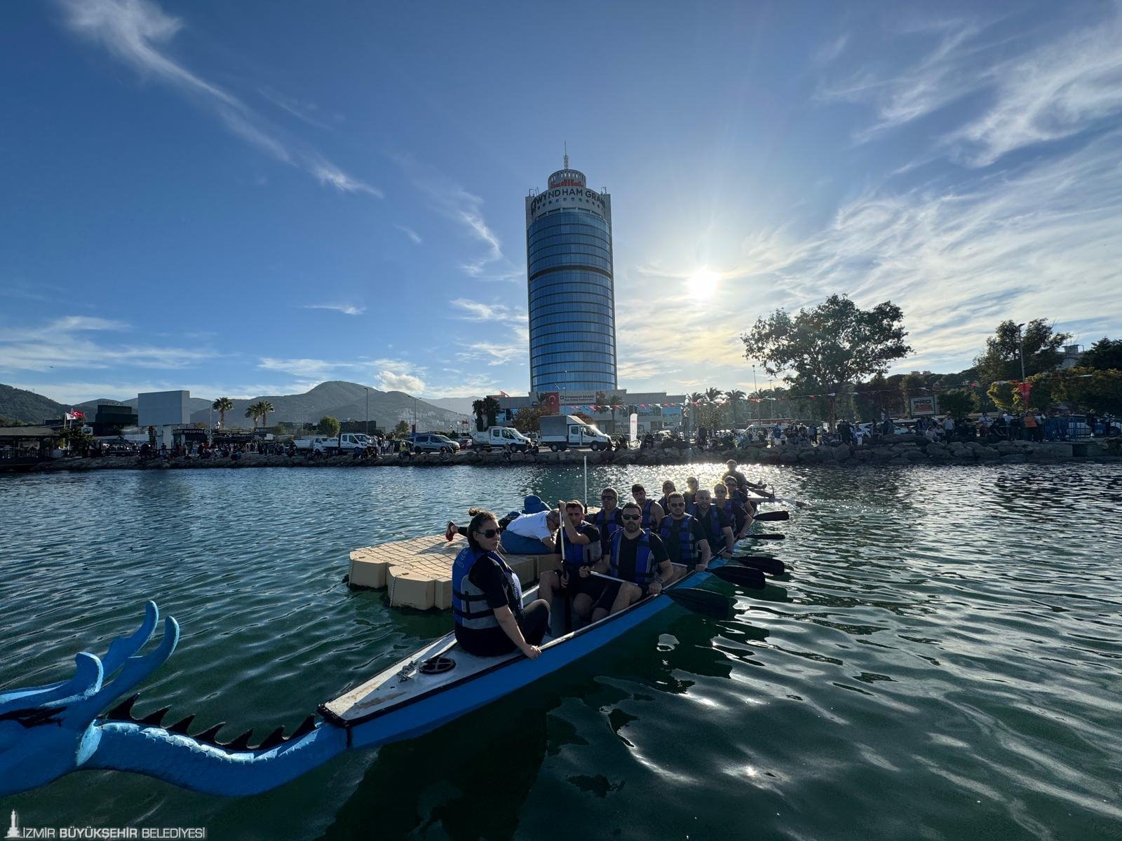 İzmir Büyükşehir Belediyesi tarafından bu yıl üçüncüsü düzenlenen Dragon Tekne Yarışması, renkli görüntülere sahne oldu. Belediye çatısı altındaki birimlerin İzmir Körfezi’nde kürek çektiği yarış, izleyenlere de heyecanlı anlar yaşattı. 28 takımın katıldığı yarış, kıyasıya rekabetin yanı sıra centilmenlik ruhunun da en güzel örneklerine sahne oldu. Balçova İnciraltı sahilinde yerini alan takımlar 250 metrelik parkurda, kazanmak için kürek çekti.