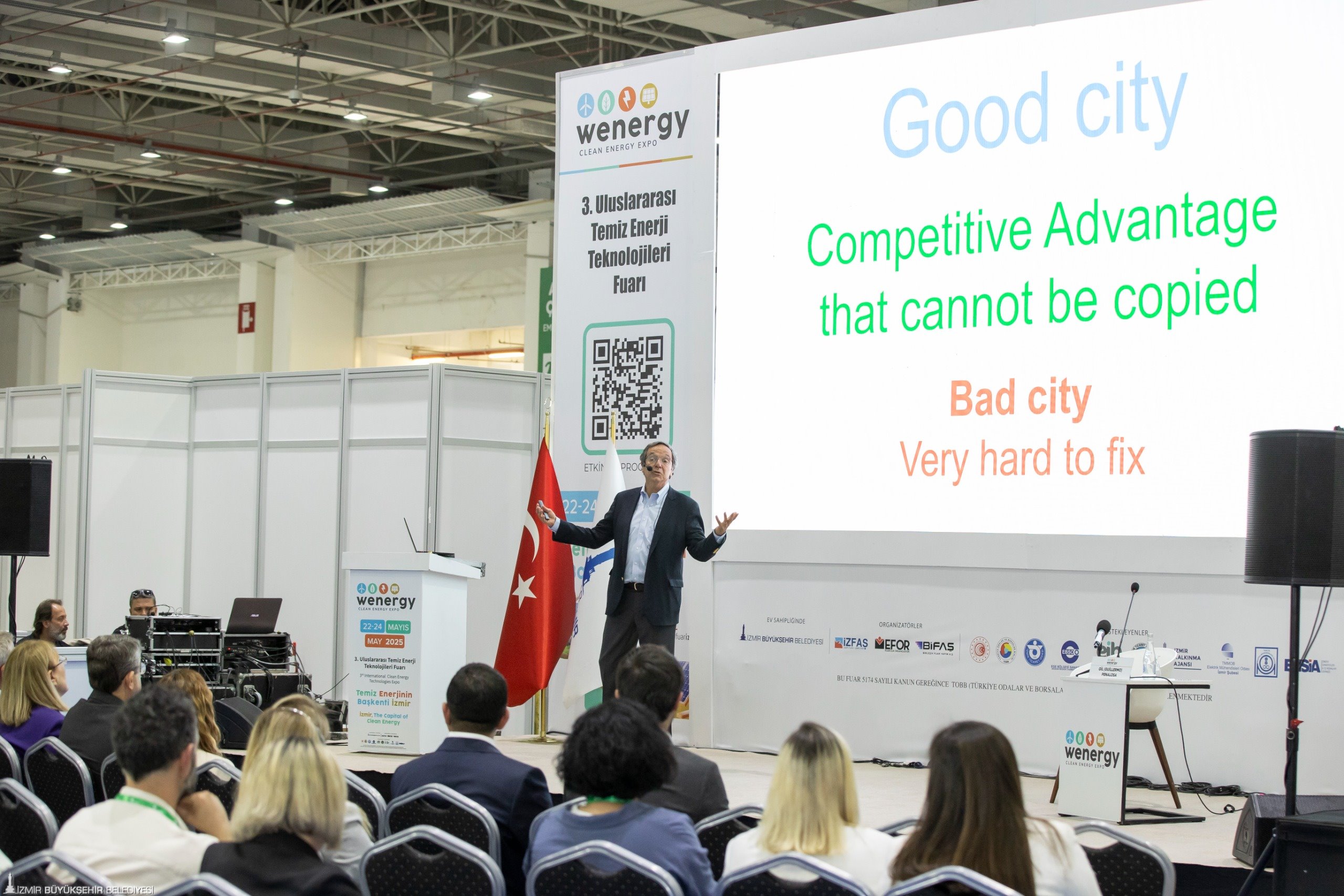 Türkiye’nin ve bölgenin en etkili ve en büyük temiz enerji fuarı WENERGY Expo-3. Uluslararası Temiz Enerji Teknolojileri Fuarı ve Konferansı, “Temiz enerjinin başkenti İzmir” sloganı ile başladı. İlk kez uluslararası boyutta açılan, yabancı katılımcı ve alıcıların katıldığı enerji fuarı, ilgi çekici panellere de sahne oluyor. Fuarın ilk etkinliğinde dünyaca ünlü Kanadalı şehir plancısı Gil Penalosa konuşmacı oldu. İzmir Büyükşehir Belediye Başkanı Dr. Cemil Tugay’ın da izlediği panelde Gil Penalosa, İzmir’in daha iyi ve yaşanabilir bir şehir olması için neler yapılabileceğini anlattı. İyi şehirler yaratma konusunda dünyanın pek çok ülkesinden örnekler veren Penalosa, İzmir’in hem tıp doktoru bir belediye başkanına sahip olması hem de iklimi nedeniyle çok şanslı olduğunu belirtti.