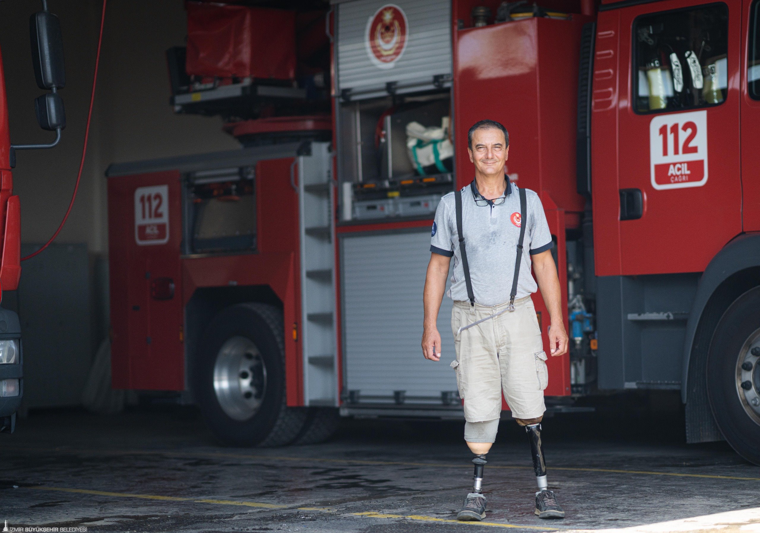 Sayısız yangında, depremde, kazada, kurtarma çalışmalarında görev alan İzmir Büyükşehir Belediyesi İtfaiye Dairesi Başkanlığı ekipleri, İtfaiyecilik Haftası’nı kutluyor. Ateş savaşçıları için önemli olan bu tarihte, ömrünü mesleğe adayan Mümtaz Zarplı’nın mücadelesi dikkat çekiyor. İzmir Büyükşehir Belediyesi İtfaiye Dairesi Başkanlığı bünyesinde görevli 55 yaşındaki Mümtaz Zarplı, 2007 yılında iş kazası geçirdi. Yangın söndürme tüpü eğitimi sırasında meydana gelen patlama nedeniyle iki bacağını birden kaybeden evli ve 2 çocuk babası Mümtaz Zarplı, bir yıl boyunca tedavi gördü. İki bacağına elektronik protez takılan Zarplı, ailesinin, sevenlerinin ve İzmir Büyükşehir Belediyesi’nin verdiği destekle yeniden hayata tutundu. Malulen emekli olduktan sonra engelli kadrosuyla yeniden mesleğine dönen Mümtaz Zarplı, Güzelbahçe İtfaiye Grubu santralinde görev yapıyor. Gelen ihbarları değerlendiren, ekipleri olay yerine yönlendiren Zarplı, bacaklarını kaybetmesine rağmen mesleğinden hiç kopmadı.