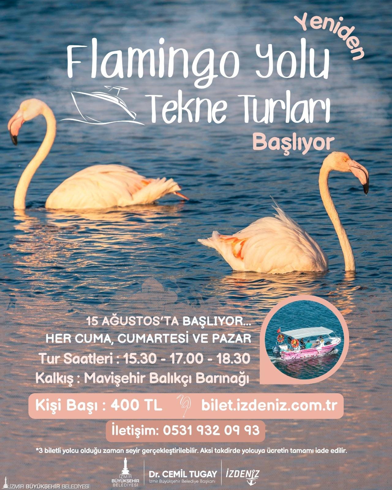 İzmir Büyükşehir Belediyesi iştiraklerinden İZDENİZ tarafından düzenlenen Flamingo Yolu tekne turlarına büyük bir ilgi var. Mavişehir Balıkçı Barınağı’ndan başlayan ve her hafta cuma, cumartesi ile pazar günü yapılan turlara katılanlar tabiat harikası Gediz Deltası’ndaki kuş türlerini gözlemleme fırsatı buluyor.