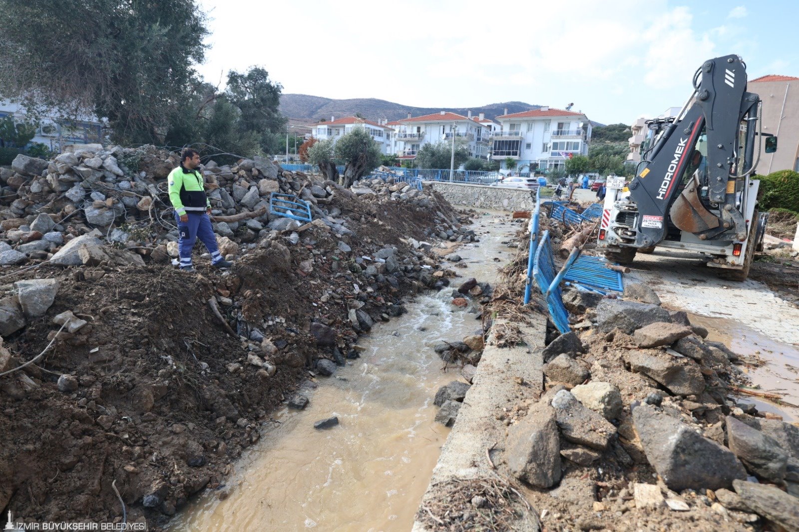 İzmir Büyükşehir Belediyesi, İZSU Genel Müdürlüğü, İzmir İtfaiyesi ve Foça Belediyesi ekipleri su baskınlarının yarattığı olumsuzlukları ortadan kaldırmak, konutlar ve işyerlerindeki suları tahliye etmek ve ilçede genel temizlik çalışmaları kapsamında faaliyetlerine kesintisiz devam ediyor. Dağlık kesimlerden selle birlikte sürüklenerek dere yataklarını tıkayan ağaç dalları ve kaya parçalarının temizlenmesi için de yoğun çaba harcanıyor. Dağlardan taşınan toprakla tıkanan ızgaraların açılması için yoğun bir çalışma yürütülüyor. Ayrıca suyun şiddeti nedeniyle zarar gören dere yataklarının onarılması için İZSU ekipleri çalışmalara başladı.