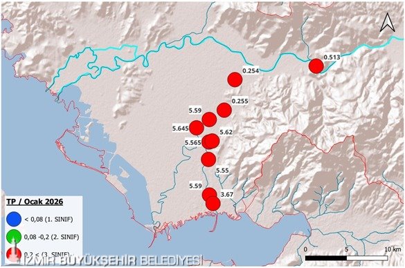 İZSU ve MASKİ verileri bir araya getirilerek bütüncül yaklaşımla yürütülen çalışmalar sonucu hazırlanan Ocak ve Şubat 2026 tarihli “Gediz Nehri ve Yan Derelerinin Kirlilik İzleme Raporu”, havzanın idari sınırlarla değil, ekosistem bütünlüğüyle ele alınması gerektiğini ortaya koyuyor. Rapora göre Gediz 401 kilometrelik yaşam koridoru üzerinde sadece su taşımıyor; aynı zamanda sanayi, evsel atık ve tarımsal baskının izlerini de Körfez’e kadar sürüklüyor. Gediz Nehri’nin Manisa sınırları içerisine kirletilmiş olarak giriş yaptığı görülüyor. Ocak 2026 raporuna göre İzmir tarafında örneklenen Gediz ana kolundaki birçok noktada temel su kalite göstergeleri alarm veriyor. Toplam azot ve fosfor tüm örnekleme noktalarında sınır değerlerin üzerinde yer alırken, su kalitesi III. sınıf olarak sınıflandırılıyor. İletkenlik (tuzluluk) yine tüm noktalarda III. sınıf seviyesinde ölçülürken, kimyasal oksijen ihtiyacı (KOİ) ve biyolojik oksijen ihtiyacı (BOİ) gibi organik yük göstergelerinde çok sayıda noktada “orta kirlenmiş su” seviyesi tespit ediliyor. Raporda ayrıca bromür, alüminyum, demir ve bakır değerlerinin tüm örneklerde çevresel kalite sınırlarının üzerinde olduğu belirtiliyor. Bu durumun, nehirde hem organik yükün hem de endüstriyel ve tarımsal kaynaklı baskının eş zamanlı etkili olduğuna işaret ettiği ifade ediliyor.