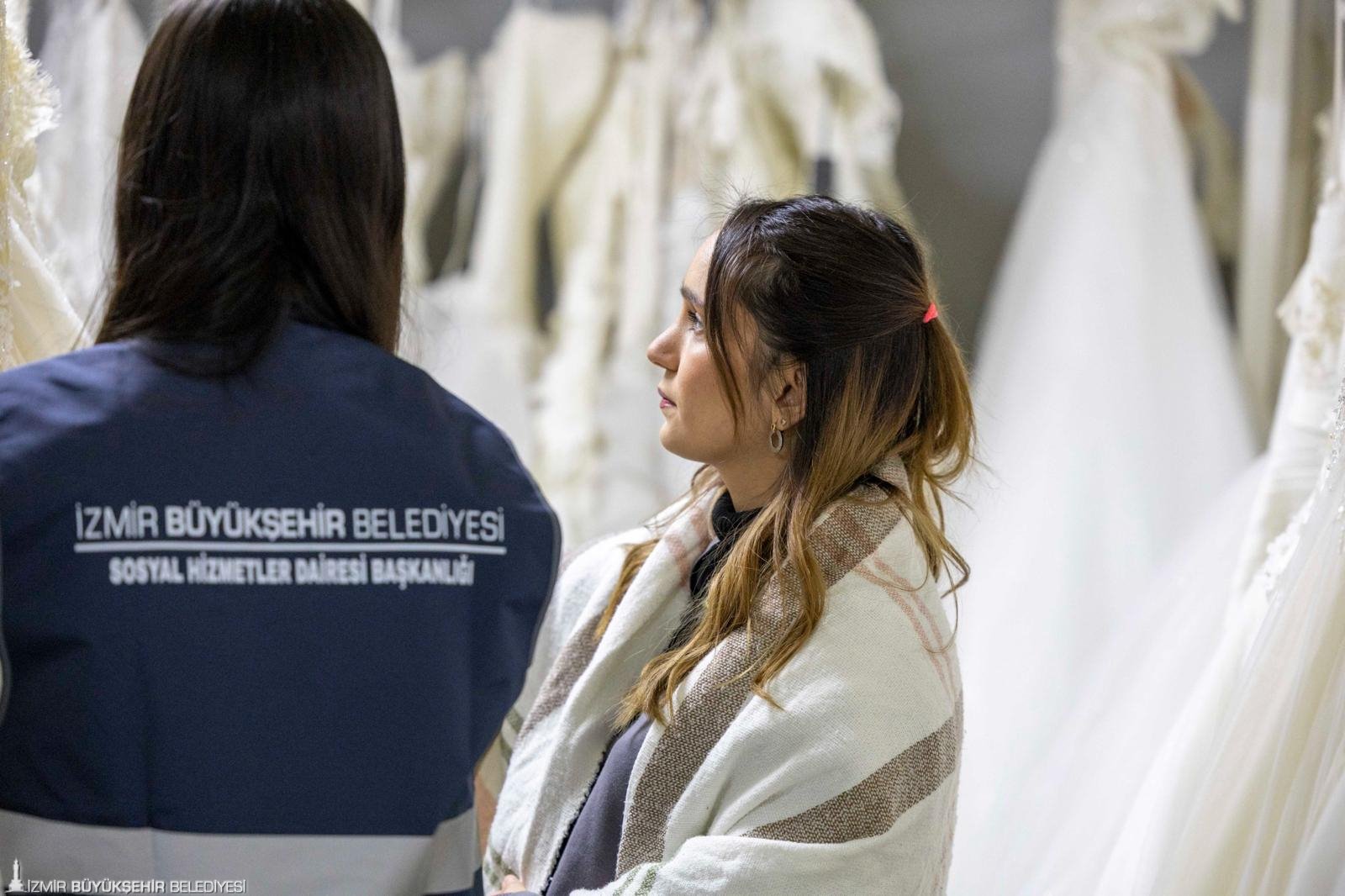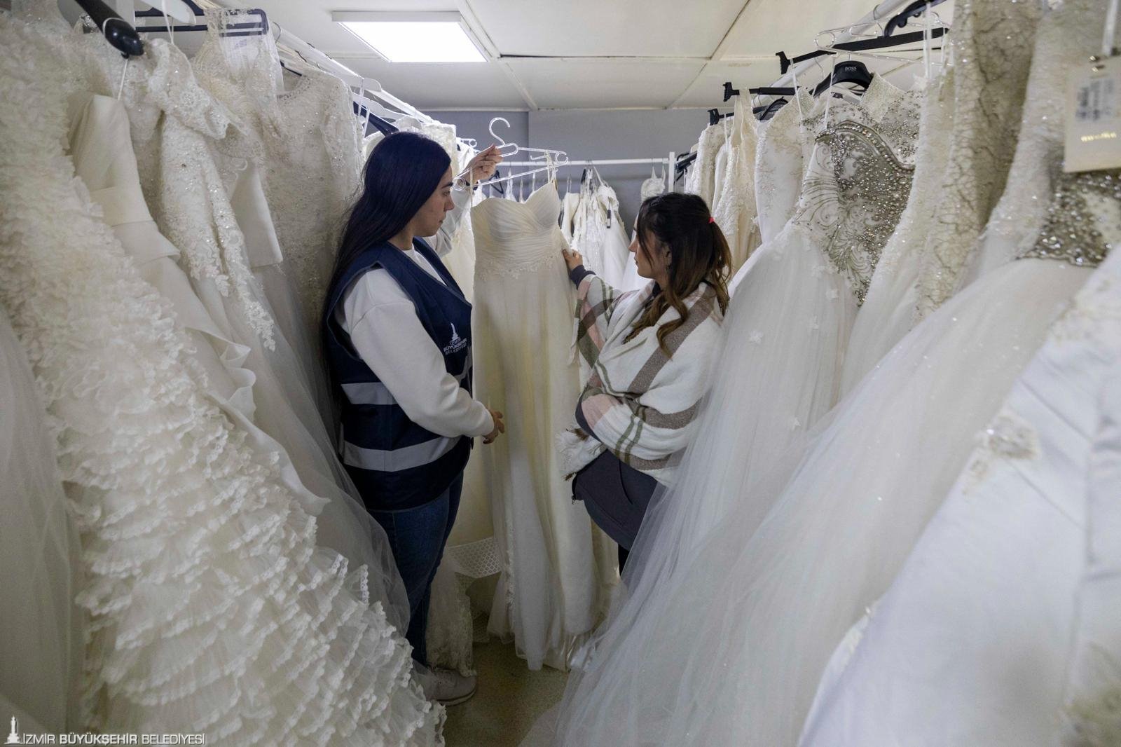 İzmir Büyükşehir Belediyesi’nin sosyal belediyecilik anlayışıyla yürüttüğü projelere bir yenisi daha eklendi. Mimar Kemalettin Moda Merkezi Derneği ile yapılan protokol ile bağış olarak alınan gelinlik-damatlık, abiye kıyafetler ve Büyükşehir’in temin ettiği ev tekstili ürünleri ihtiyaç sahibi genç çiftlere ücretsiz ulaştırılıyor. İzmir Büyükşehir Belediyesi’nin vatandaşlara ulaşmak amacıyla köprü olarak kullandığı merkezlerden Gürçeşme Danışma ve Giyim Noktası’nın hemen yanında Gelinlik, Damatlık ve Ev Tekstil Ürünleri Merkezi faaliyet gösteriyor. Merkez vasıtasıyla evlenecek çiftlerin ihtiyaçları karşılanıyor.