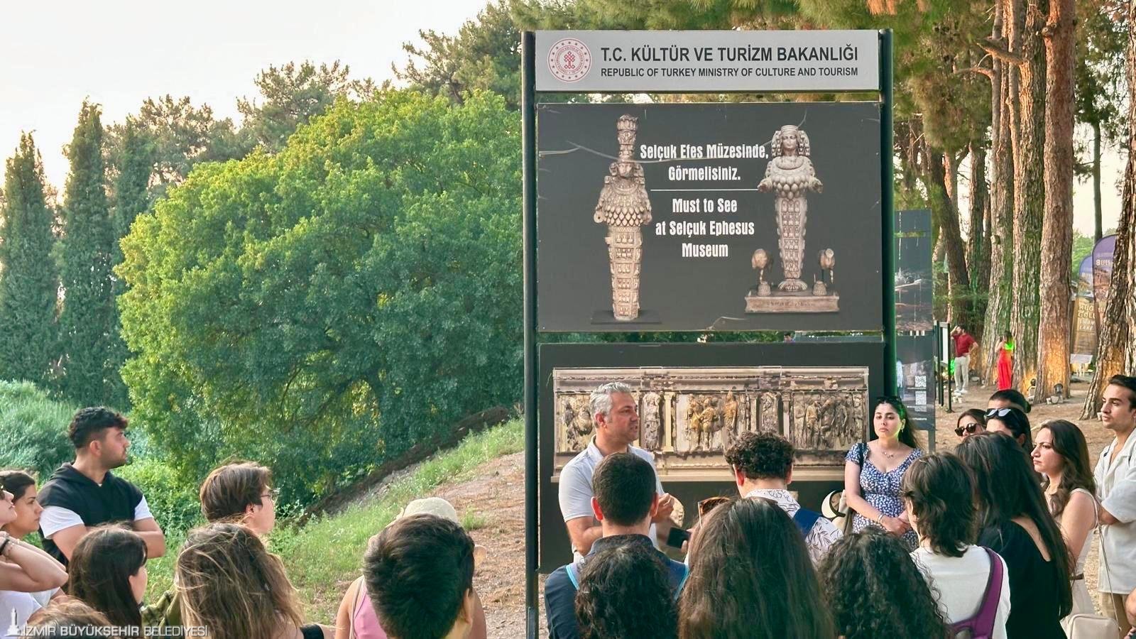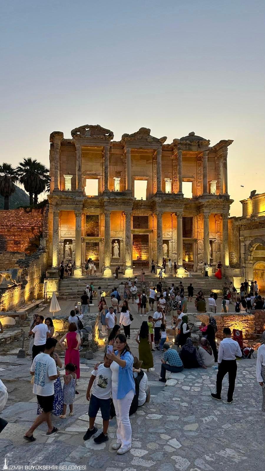 İzmir Büyükşehir Belediyesi’nin “Gençler İzmir’i Geziyor” projesi kapsamında düzenlendiği ücretsiz Efes Gece Müzeciliği etkinliği gençlere tarihle iç içe unutulmaz bir deneyim yaşattı.