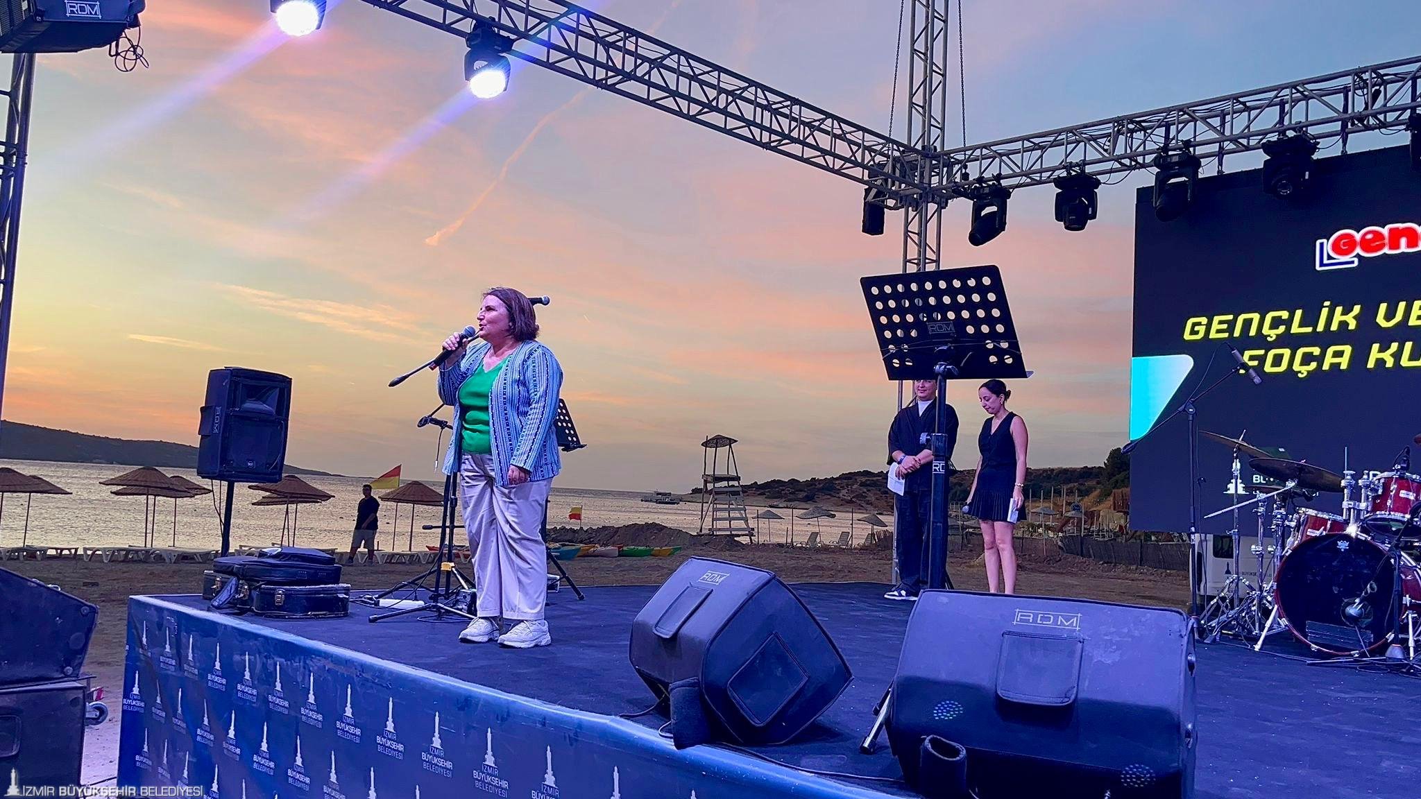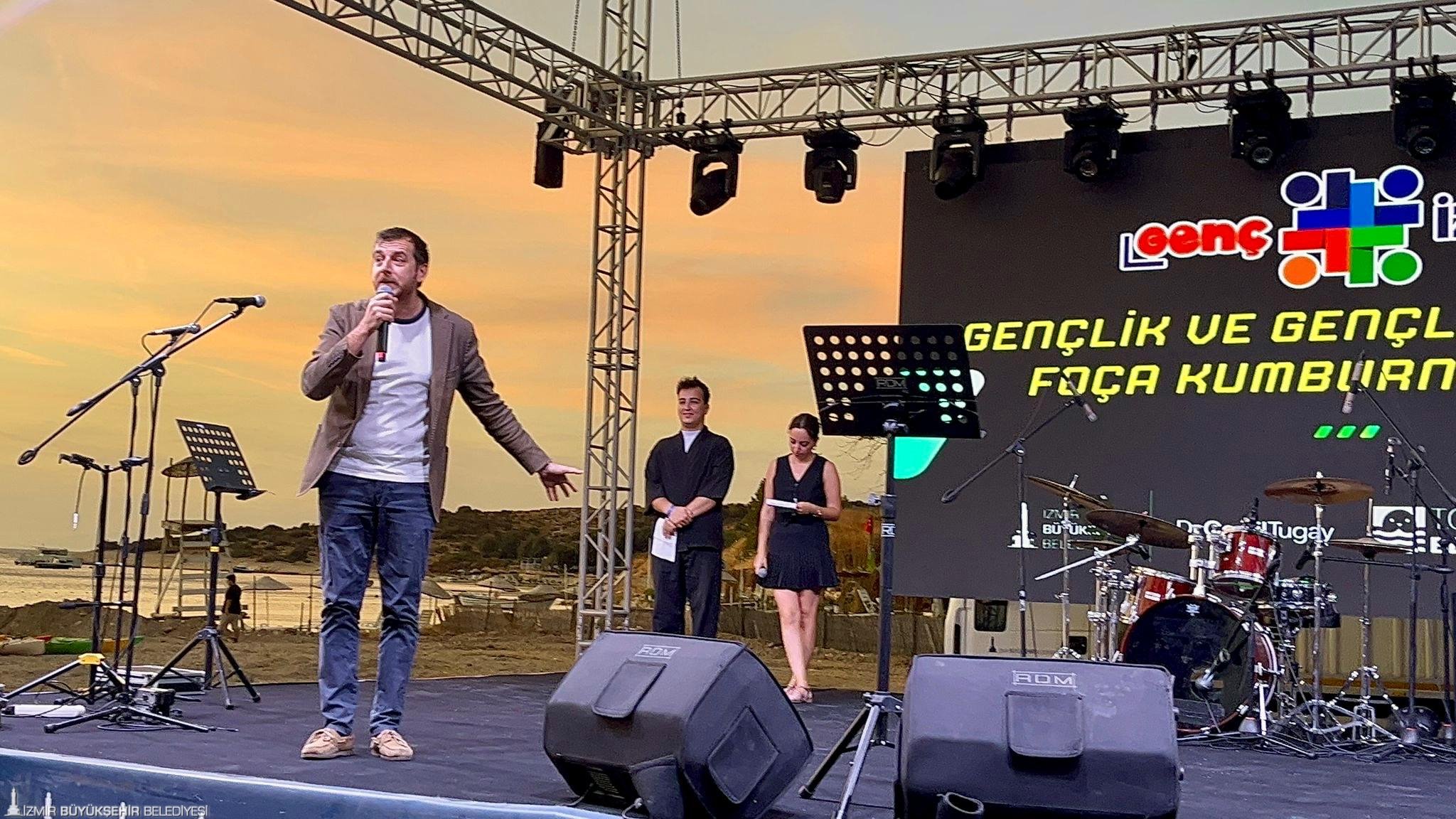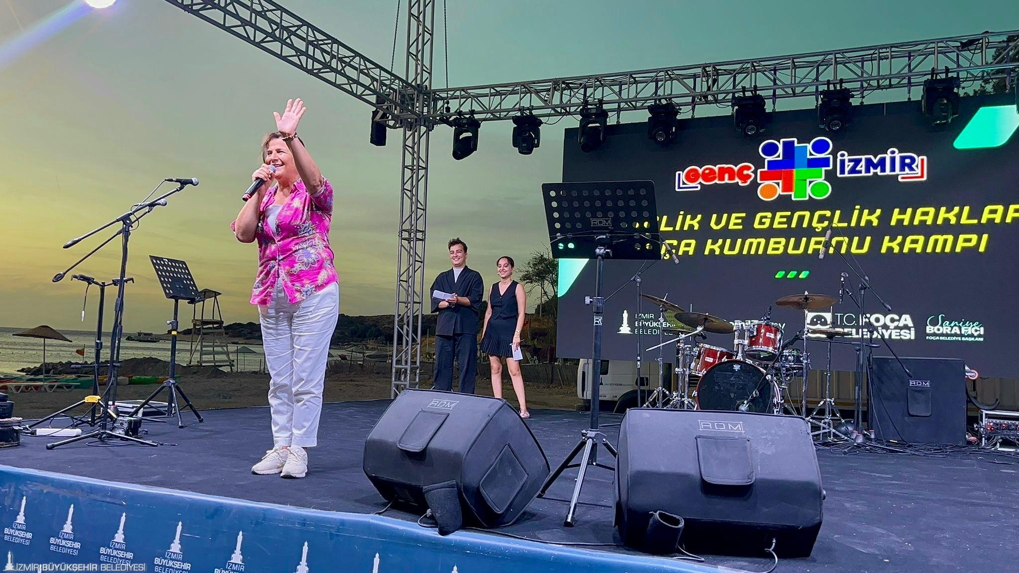 Akşam etkinlikleri öncesinde gençlerle sohbet etmek üzere sahneye çıkan Foça Belediye Başkanı Saniye Bora Fıçı, gençlerin geleceğin mimarı olduğuna ve cumhuriyetin gençlere emanet edilmesinin önemine değinerek “İyi ki Foça’dasınız. Gelecek yıl bu kampı daha zengin içeriklerle, daha fazla etkinlikle planlayacağız. Göreve geldiğimden bu yana çocuklara ve gençlere yönelik projeleri en öncelikli konular arasında görüyorum. Türkiye’nin dört bir yanından gelen ve ilçelerimizde yaşayan gençleri her zaman Foça’da görmekten mutluluk duyuyoruz” diye konuştu. İzmir Büyükşehir Belediyesi Meclis Üyesi Çiler Gürel ise sözlerine İzmir Büyükşehir Belediye Başkanı Dr. Cemil Tugay'ın gençlere selamını ileterek başladı. Gürel, "İzmir Büyükşehir Belediyesi olarak gençlerin iyi olma hâlini destekleyecek organizasyonları çok önemsiyoruz. Kampınızın verimli geçeceğine eminim. Umarım hepiniz çok keyif alırsınız" ifadelerini kullandı.