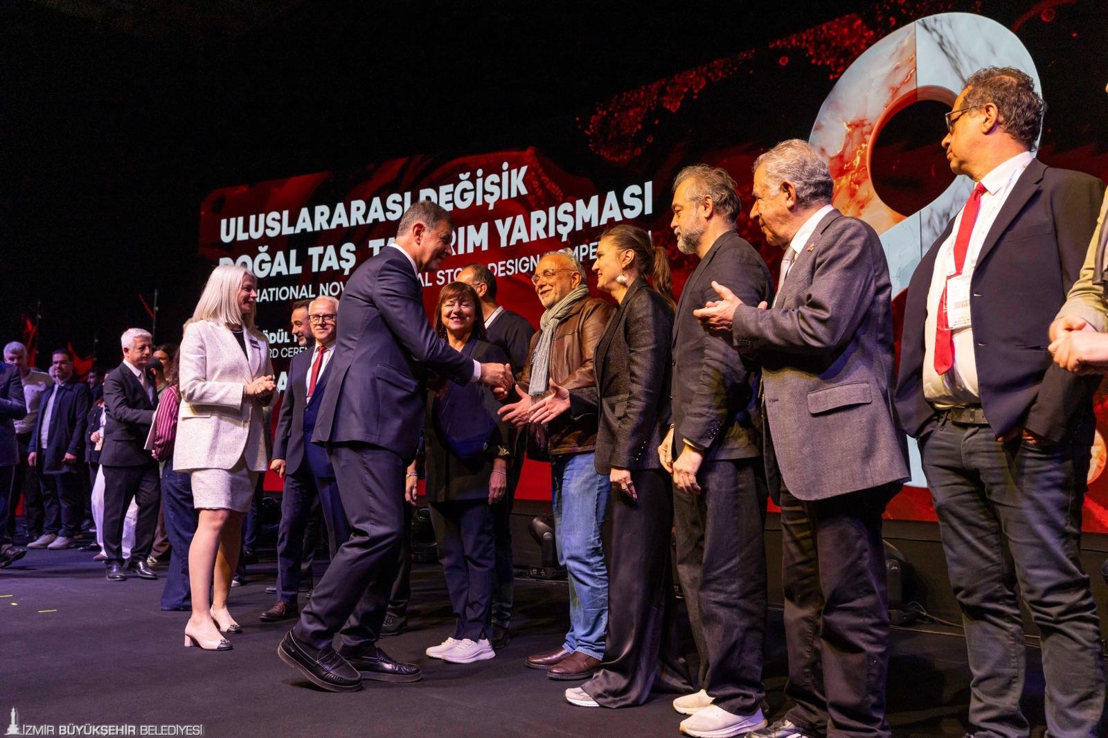 Ödül töreninde konuşan İzmir Büyükşehir Belediye Başkanı Dr. Cemil Tugay, Marble İzmir’in doğaltaş sektörünü dünyaya açtığını belirterek, “Dünyanın dört bir yanından mimarları, üreticileri ve alım heyetlerini İzmir’de bir araya getiren bu büyük organizasyon, ülkemizin sahip olduğu zenginlikleri de görünür kılıyor. Türkiye, dünya doğal taş rezervlerinin yaklaşık yüzde 35’ine sahip. 120’nin üzerinde renk ve desende mermerimiz, Marble İzmir sayesinde küresel pazarda hak ettiği değeri buluyor. Ama artık sadece üretmek yetmiyor; katma değer yaratmak ve fark yaratmak gerekiyor. İşte bu noktada tasarım devreye giriyor. Bugün ödüllerini vereceğimiz 8. Değişik Doğal Taş Tasarım Yarışması, bu anlayışın bir ürünü. Doğal taşı yalnızca hammadde olmaktan çıkaran, estetik, işlev ve yaratıcılıkla buluşturan bir vizyonu yansıtıyor. Bu yarışmayı, doğal taş sektörünün uluslararası pazardaki rekabet gücünü artırmak ve genç tasarımcıları desteklemek amacıyla düzenliyoruz” dedi.