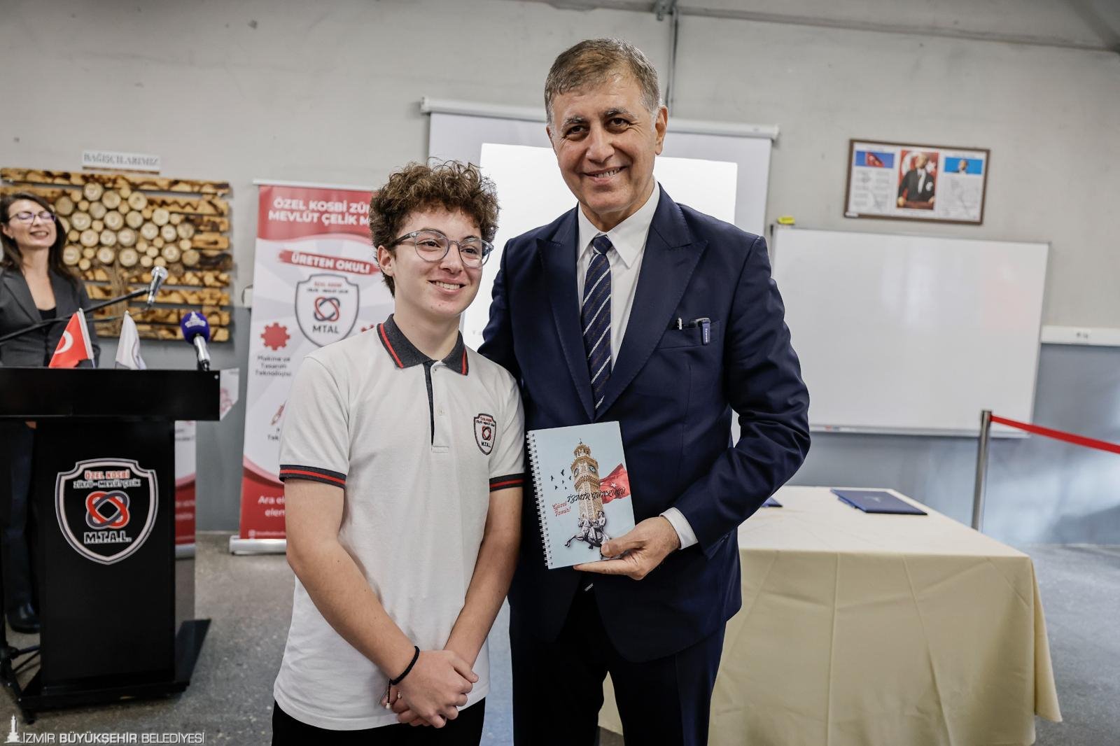 Konuşmaların ardından Başkan Tugay, KOSBİ Yönetim Kurulu adına Başkan Mehmet Türkmen ve okul müdürü Nuray Gowans arasında protokol imzalandı. Daha sonra öğrencilerin bilgilendirici ve eğlendirici iş güvenliği konulu tiyatro oyunu sahnelendi. Farklı bölümlerden öğrencilerin okudukları bölümle ilgili gösteri yaptığı programda, otomasyon bölümü öğrencileri de robotik kodlama ile oluşturdukları Türk bayrağı ve Atatürk resmini Başkan Tugay’a hediye etti. Başkan Tugay ve bağışçılar, eğitime sundukları destek nedeniyle “bağışçılar ağacına” sembolik olarak plaket çaktı. Başkan Tugay, programda öğrencilerin kurduğu stantları ziyaret ederek projeleri inceledi ve resim sergisini gezdi.