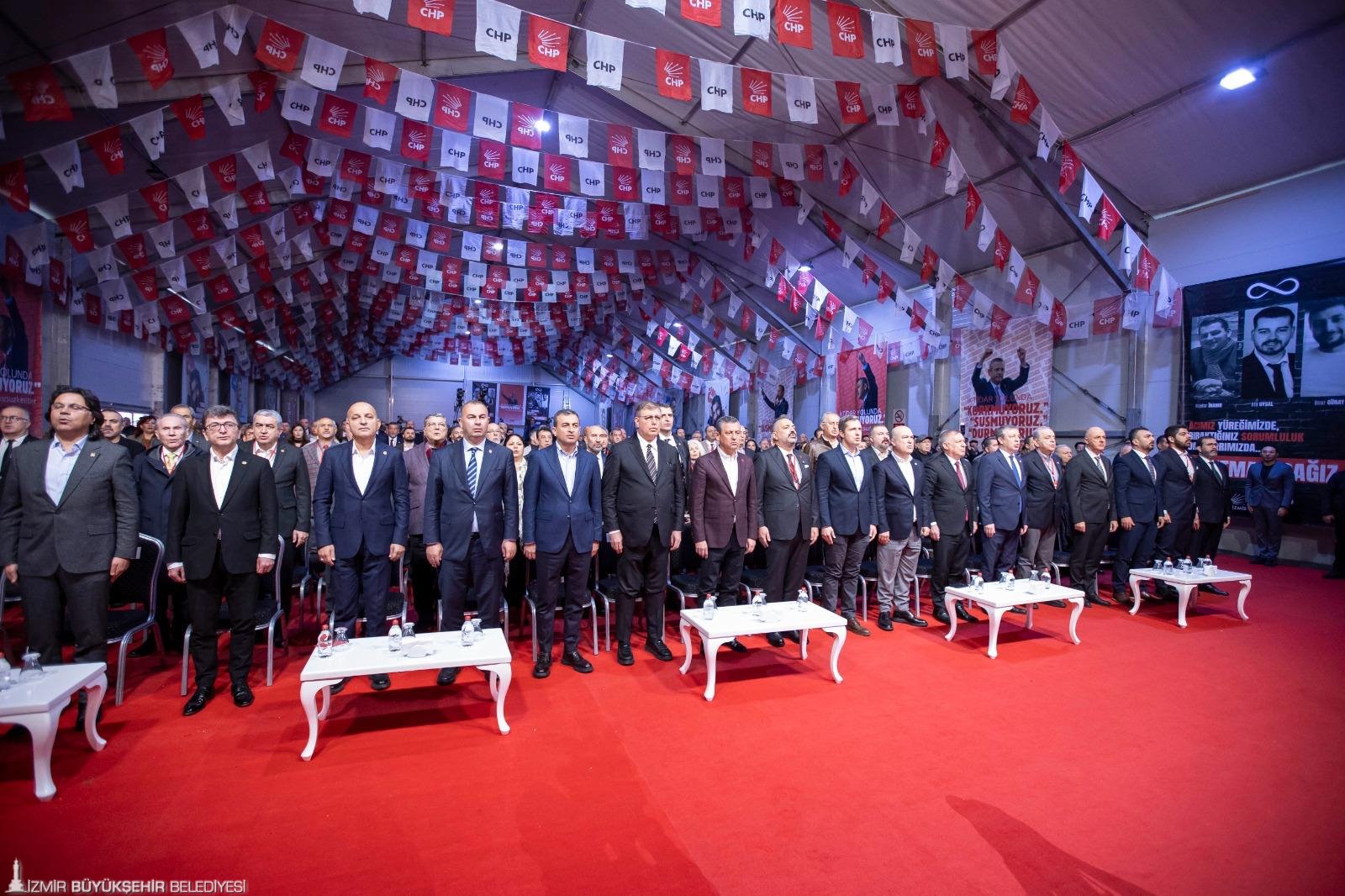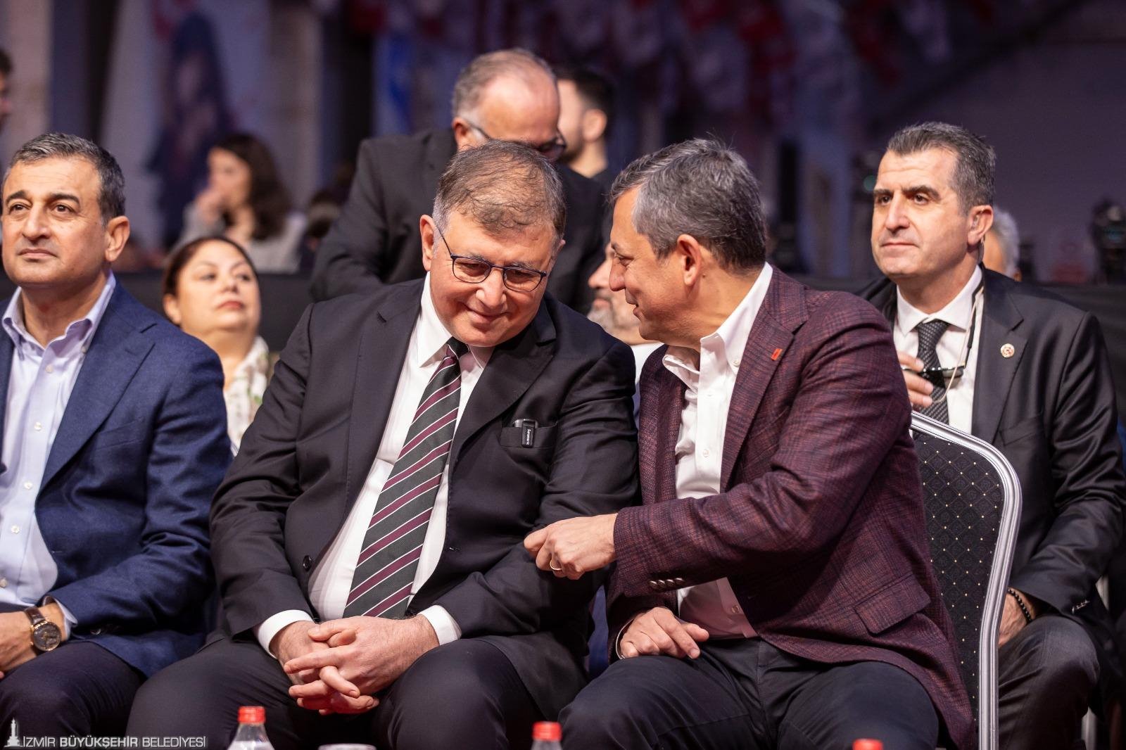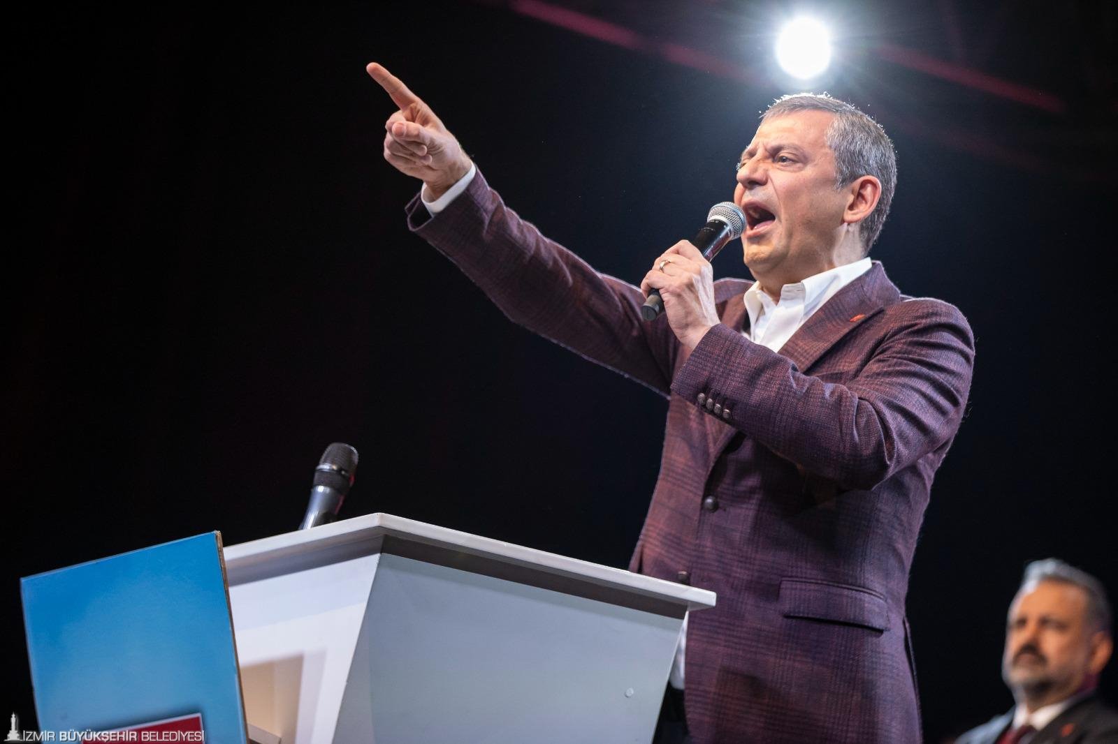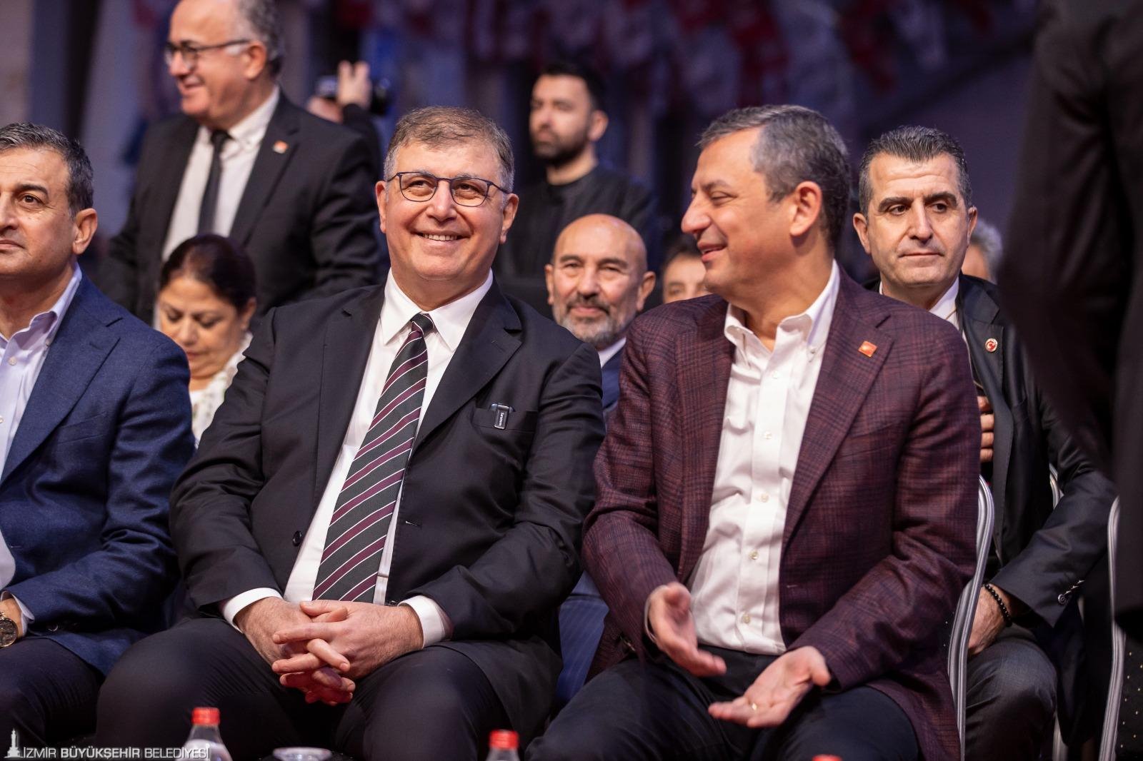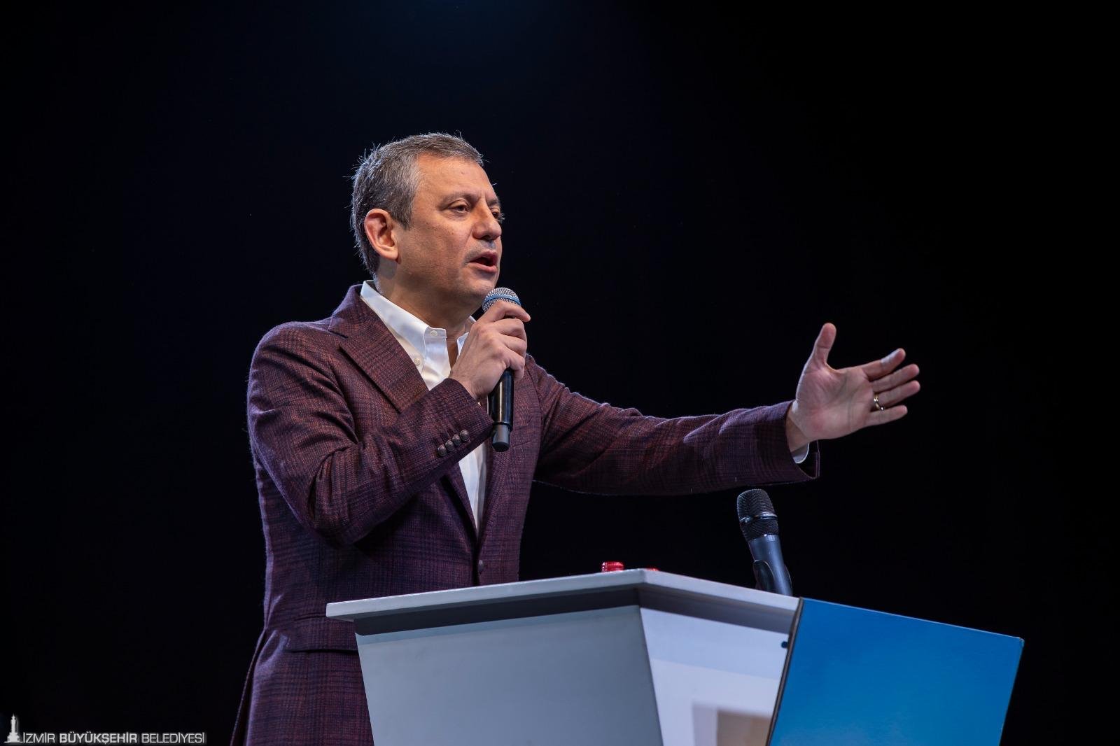 İktidarın İzmir Büyükşehir Belediyesi’ne maaş ödeyememesi için mali kısıtlama uyguladığını hatırlatan Özgür Özel, iki gün içinde sorunun çözüldüğünü ve maaşların yattığını belirtti. Özel, bundan sonraki süreçlerde de yapacakları her türlü kötülüğe karşı hazırlıkların yapıldığını vurgulayarak “Nasıl bir kötücül akılla karşı karşıya olduğumuzu biliyoruz. Siz bu kenti korkutarak, sindirerek bu kentle gönül bağımızı koparamazsınız. İzmir biziz, biz İzmir’iz. İzmirli Körfez’i kimin kirlettiğini, denetletmediğini, koksun istediğini ve bunu kimin istismar ettiğini bilir. İzmir’de kokan, temizlenmesi gereken Körfez değil bu kirli ve kokuşmuş AKP siyasetidir. İzmir Büyükşehir maaş dağıtamasın diye oyun oynayacaksın, dışarıdan kredileri onaylamayacaksın, ondan sonra da İzmirlinin karşısına geçip CHP İzmir’i yönetemiyor diyeceksin. Bunların hepsi ama hepsi İzmirlinin vicdanından dönmüştür. Hep birlikte İzmir’e saldırmalarının sebebi burasının amiral gemi oluşudur. Düşman bir yeri hedef alır. O da içinde komutanın bulunduğu sancak gemisidir. CHP donanmasında bir sancak varsa o sancak Gazi Mustafa Kemal Atatürk’ten emanettir. Ve o sancak gemisi İzmir’e emanettir” dedi.