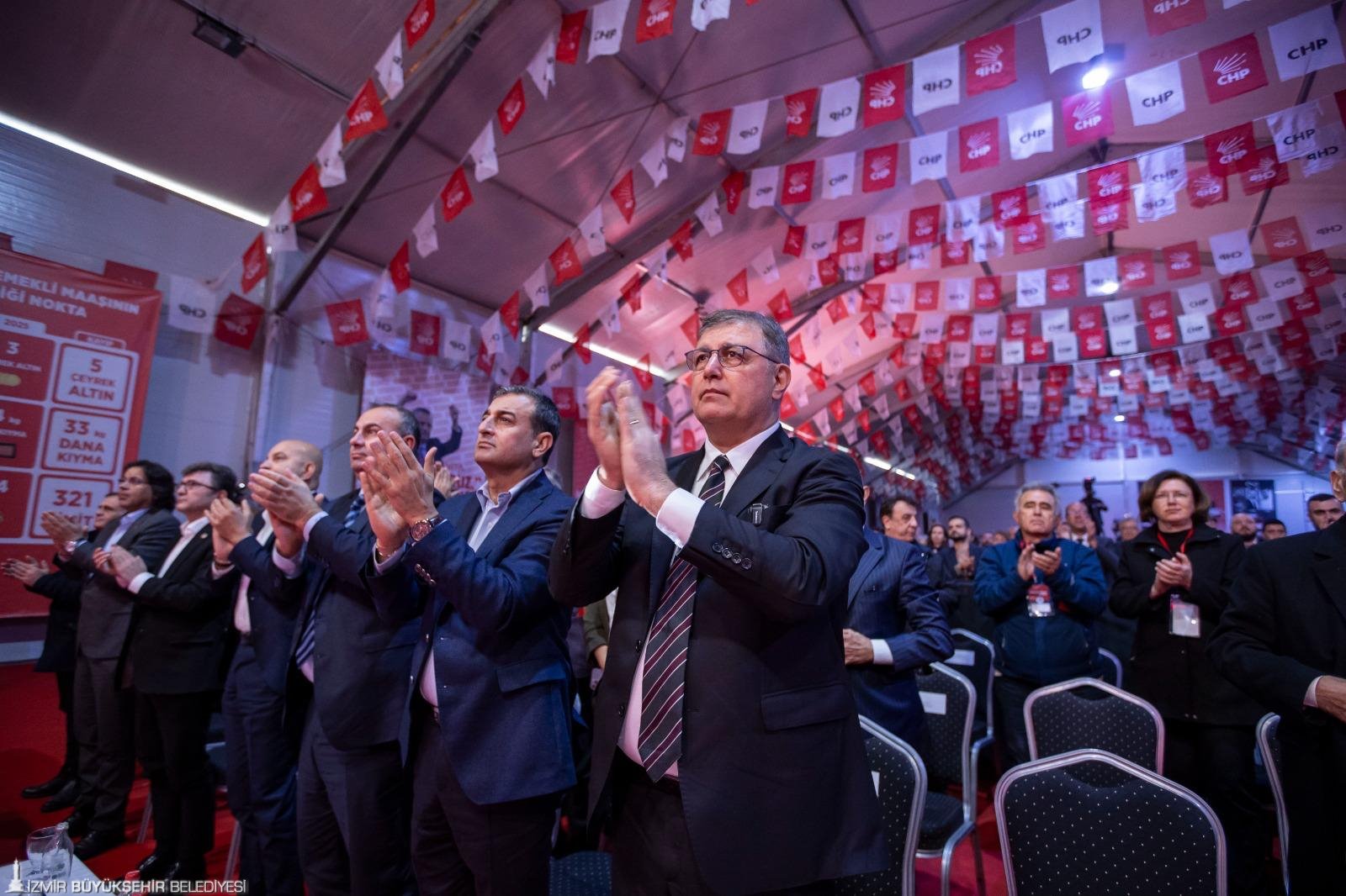Başkan Tugay, göreve geldiği günden itibaren İzmir’in temel sorunlarıyla ilgili çalışmalar yaparken halkın içinde bulunduğu sosyoekonomik sıkıntıları çözmek için de pek çok projeyi hayata geçirdiklerini belirtti. Tugay, İzmir’in CHP geleneğiyle gurur duyduğunu da aktararak “Geçmiş başkanlarımızın hepsine hizmetleri için çok teşekkür ediyorum. Aldığımız bayrağı daha yükseğe taşımak istiyoruz. Geçmişte yapılan her doğrunun üzerine yeni doğrular ekleyerek devam ediyoruz. Her alanda ileriye giden çalışmalar gerçekleştirdik. 9 ayda 20 milyardan fazla parayı yatırıma ayırdık. Üstelik bunu zorlu ekonomik şartlar altında yaptık. Türkiye’de kötü ekonomi sonucunda bütün herkes ve kurumlar gibi belediyeler de sorunlar yaşıyor elbette. Arkamızda hiçbir iktidar desteği olmadığı halde yapabildiğimiz en iyi işi yapıyoruz. Ahlakımızla, namusumuzla, inancımızla çok güzel işler yapıyoruz. Genel Başkan’ımızın enerjisinden güç alarak yapıyoruz” ifadelerini kullandı.