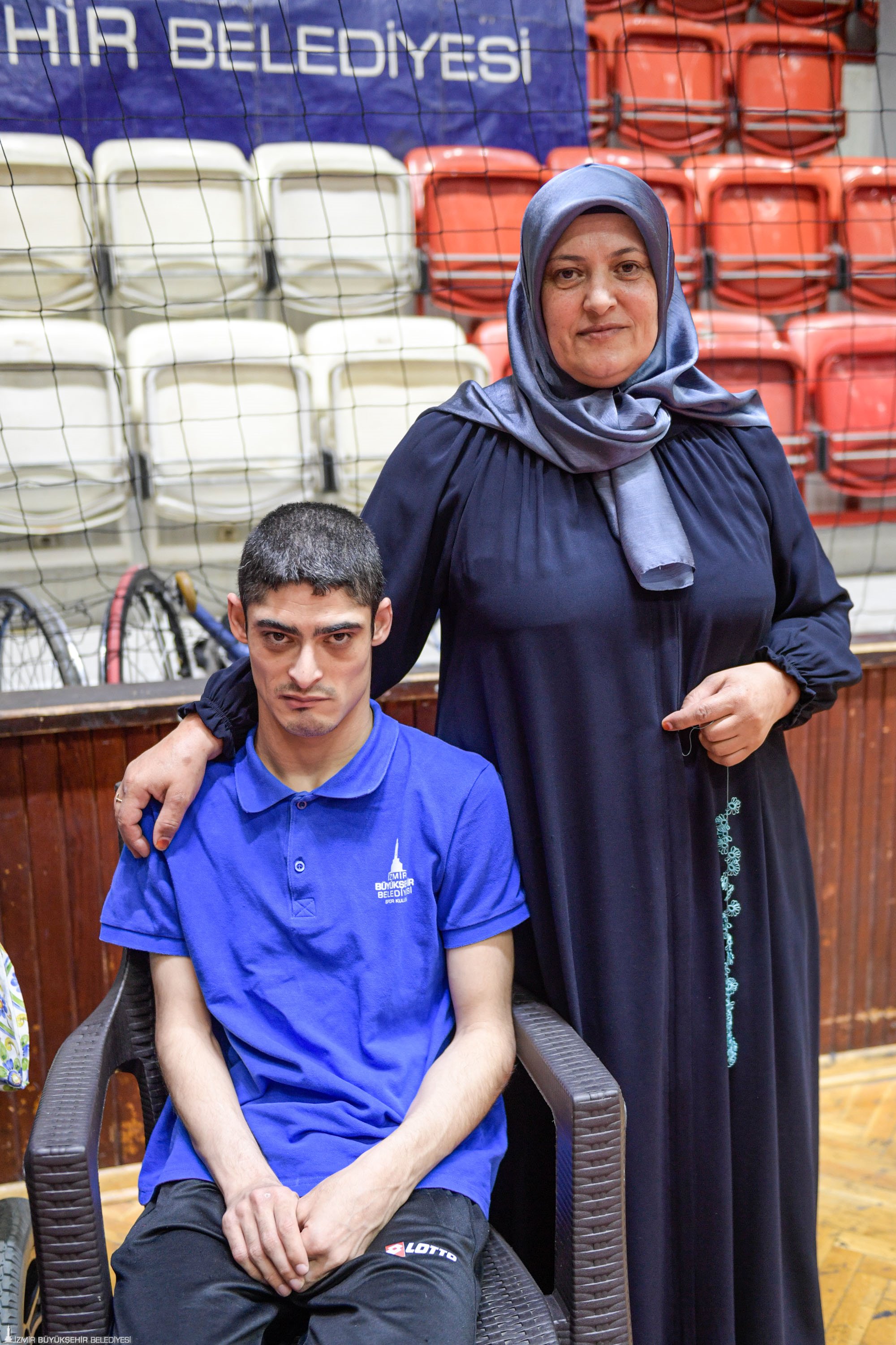 28 yaşındaki sporcu Ömer Şan’n annesi Melahat Şan, hem antrenmanlarda hem de turnuvalarda oğlunun yanından ayrılmıyor. Ömer Şan’ın 12 senedir boccia sporu yaptığını söyleyen Melahat Şan, “Zamanımız çok güzel ve eğlenceli geçiyor. Biz de boccia sporuna alıştık. Evde olunca çok sıkılıyoruz. Onlarla biz de çok mutluyuz. Maçlarda biz de stres yaşıyoruz. Oğlum iki kez dereceye girdi. Burada annenin ilgisi çok önemli. Oğlum olmadan ben de yaşayamam. O benim her şeyim. 30 yıldır örgü örüyorum. Oğlumu getirip götürürken metroda, antrenman salonunda, hastanede örüyorum. Burada ördüğüm örgüler İzmir’i dolaşacak kadar çok” dedi.