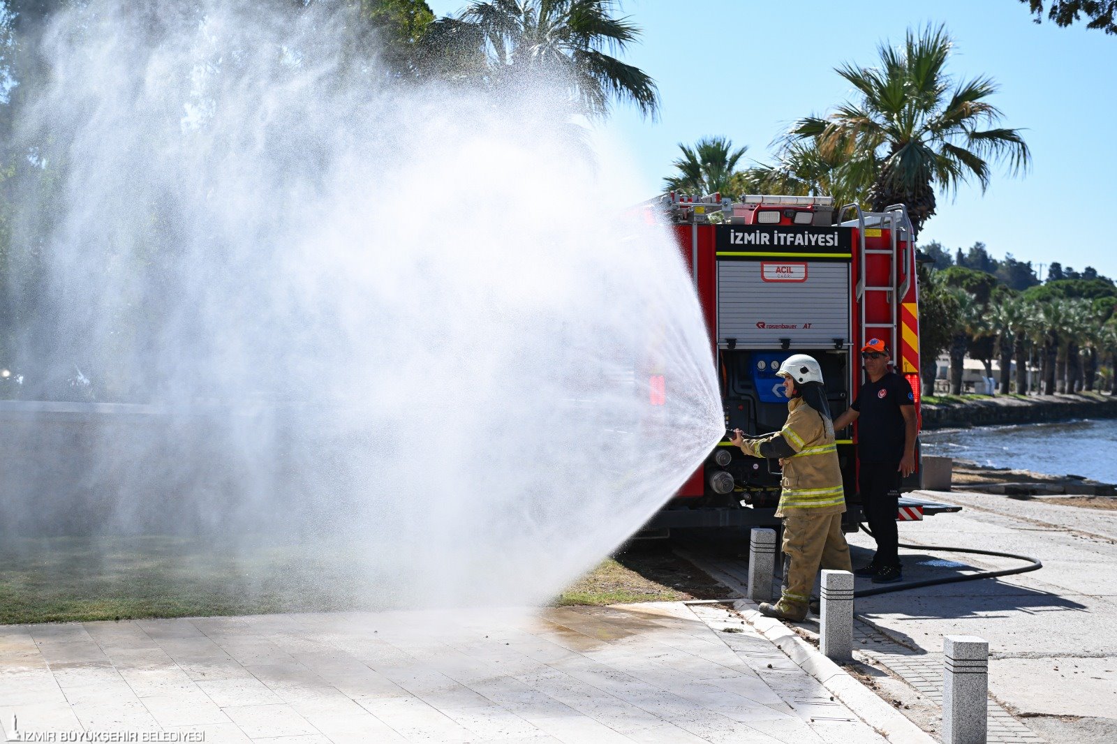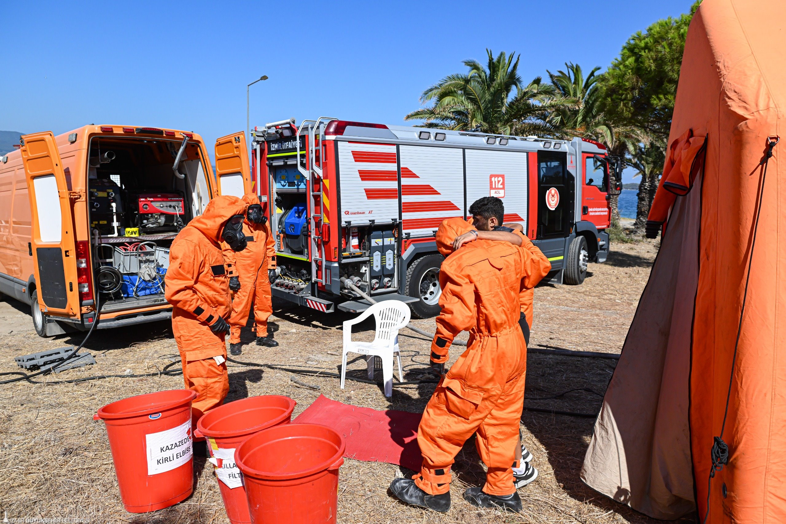 İzmir Büyükşehir Belediyesi İtfaiye Dairesi Başkanlığı İtfaiye Arama Kurtarma Şube Müdürlüğü Koordinatör Amiri Servet Yıldız, su üstü ve su altı kurtarma ekibinin yanı sıra itfaiye ekiplerinin otobanda kimyasal yüklü bir tanker yangınına müdahale ettiklerini söyledi. Servet Yıldız, “Ekiplerimiz su üstünde ve su altında iki yaralıya müdahale ederek denizden çıkardı. Arazöz ile de otoban üzerinde kimyasal yangına maruz kalan araca müdahale ettik. Bu tür tatbikatlar çok önemli. Özellikle afet durumunda, alandaki diğer birimlerle koordinasyonu çok kıymetli ve değerli. Hem birbirimizi tanımamız hem de yapacağımız çalışmalarda daha koordineli olmamız için bu tatbikat çok faydalı oldu” dedi.