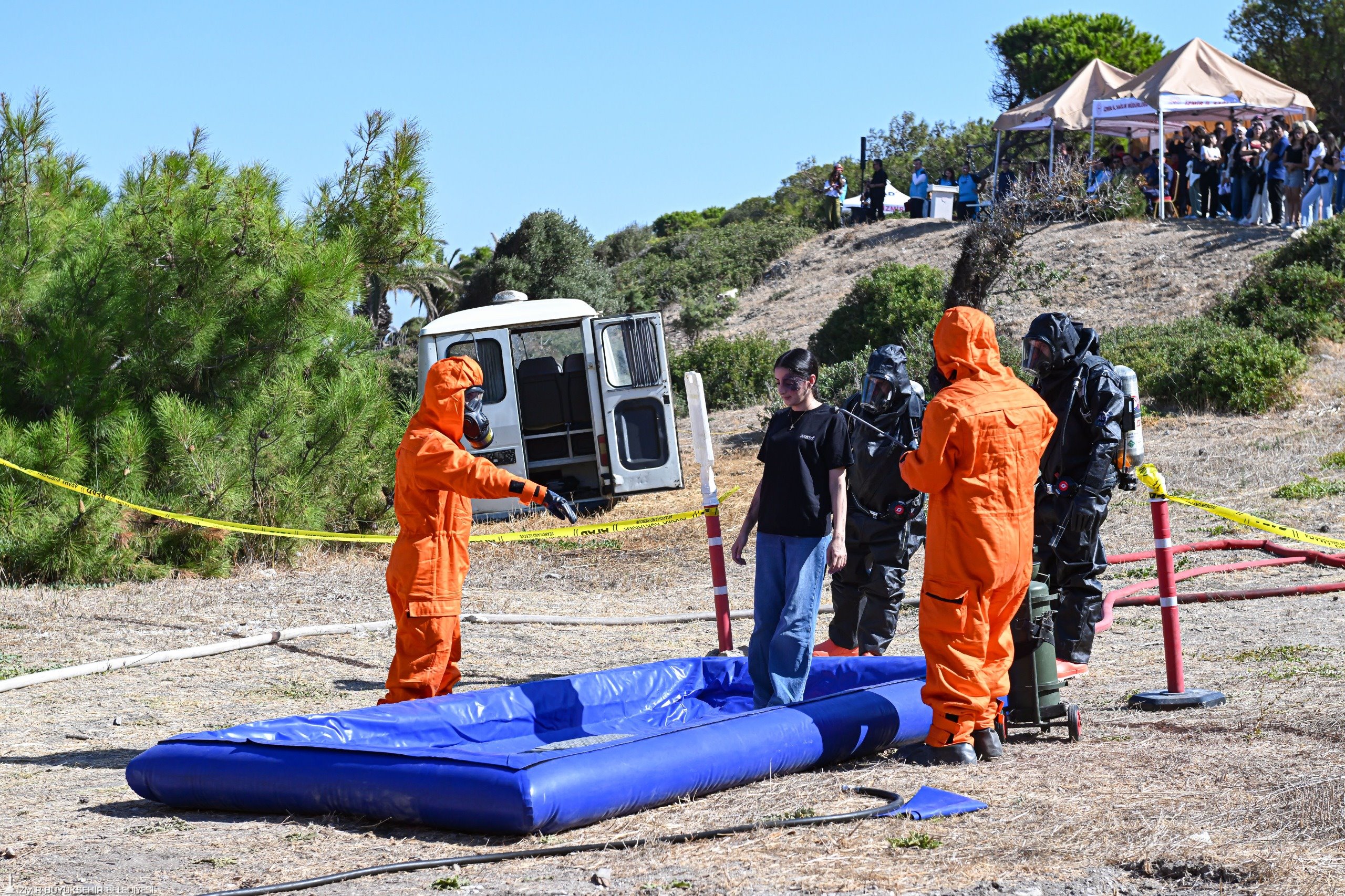 Sağlık Bakanlığı, “2025 Yılı Faaliyet Planı” ve “Türkiye Afet Müdahale Planı” kapsamında, İzmir İl Sağlık Müdürlüğü’nün Urla Karantina Adası’ndaki Acil Sağlık Hizmetleri Bölge Uygulama ve Araştırma Merkezi’nde tatbikat yaptı. İzmir Büyükşehir Belediyesi İtfaiye Dairesi Başkanlığı ile İzmir Büyükşehir Belediyesi Eşrefpaşa Hastanesi başta olmak üzere Ege Ordusu Komutanlığı, İl Afet ve Acil Durum Müdürlüğü (AFAD), İzmir İl Emniyet Müdürlüğü, Sahil Güvenlik Komutanlığı (Sahil Güvenlik Ege Deniz Bölge Komutanlığı), Türk Kızılay İzmir Afet Müdahale Merkezi, Hudut ve Sahilleri Sağlık Genel Müdürlüğü Ege Bölge Baştabipliği ve Dokuz Eylül Üniversitesi Hastanesi, Ulusal Medikal Kurtarma Ekibi’nin (UMKE) de yer aldığı tatbikat heyecanlı anlara sahne oldu.