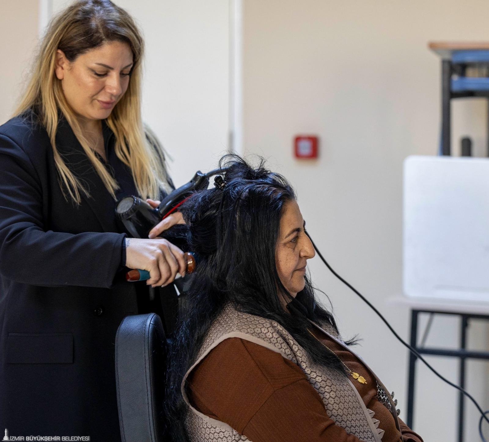 Merkezden uzak mahallelerde yaşayan kadınların belediye hizmetlerine erişimini kolaylaştırmayı amaçlayan İzmir Büyükşehir Belediyesi, Güçlenme Durağı Mobil Kuaförlük Hizmeti ile kadınların hem saçlarını hem de yaşamlarını güçlendiriyor. Her ay farklı bir mahallede, muhtarlıkların belirlediği alanlarda gerçekleştirilen uygulama kapsamında kadınlara ücretsiz saç kesimi ve fön hizmeti sunuluyor. Hizmetin ardından uzman personel tarafından kadın sağlığı, kadın hakları, yasal haklar ve toplumsal cinsiyet eşitliği konularında bilgi veriliyor. Kuaförlük ve eğitim hizmetlerinden yararlanmak isteyen kadınlar, mahalle muhtarlıkları aracılığıyla talep oluşturup randevu alabiliyor. Hizmet bu hafta Gaziemir’in Emrez Mahallesi’ndeydi. Uygulamaya ayrıca meslek yüksekokullarının saç bakımı ve güzellik hizmetleri programında eğitim alan öğrenciler ve eğitmenleri de dâhil edildi. Böylece hem daha fazla kadına hizmet ulaştırılıyor hem de öğrenciler uygulamalı eğitim imkânı buluyor.
