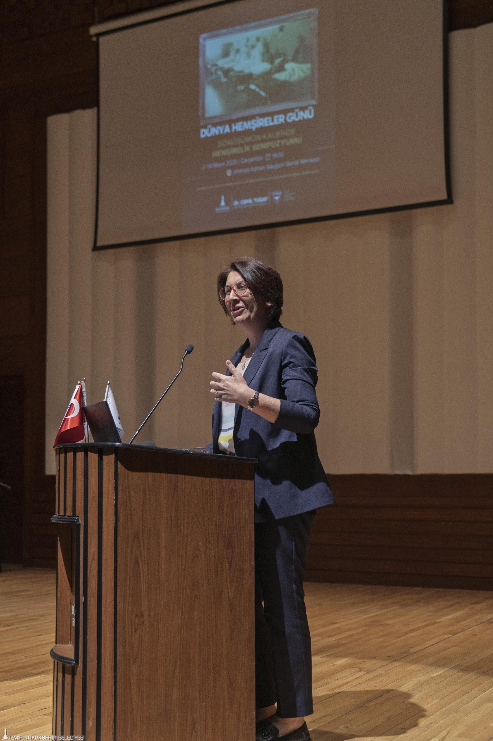 12-18 Mayıs Hemşireler Haftası’nda İzmir Büyükşehir Belediyesi Eşrefpaşa Hastanesi ve Türk Hemşireler Derneği İzmir Şubesi tarafından “Dönüşümün Kalbinde Hemşirelik Sempozyumu” düzenlendi. Ahmed Adnan Saygun Sanat Merkezi (AASSM) Küçük Salon’da yapılan sempozyuma, İzmir Büyükşehir Belediyesi Eşrefpaşa Hastanesi hemşireleri ile hastaneden emekli hemşirelerin yanı sıra İzmir Tınaztepe Üniversitesi’nde (İZTÜ) öğrenim gören hemşire adayları da katıldı.