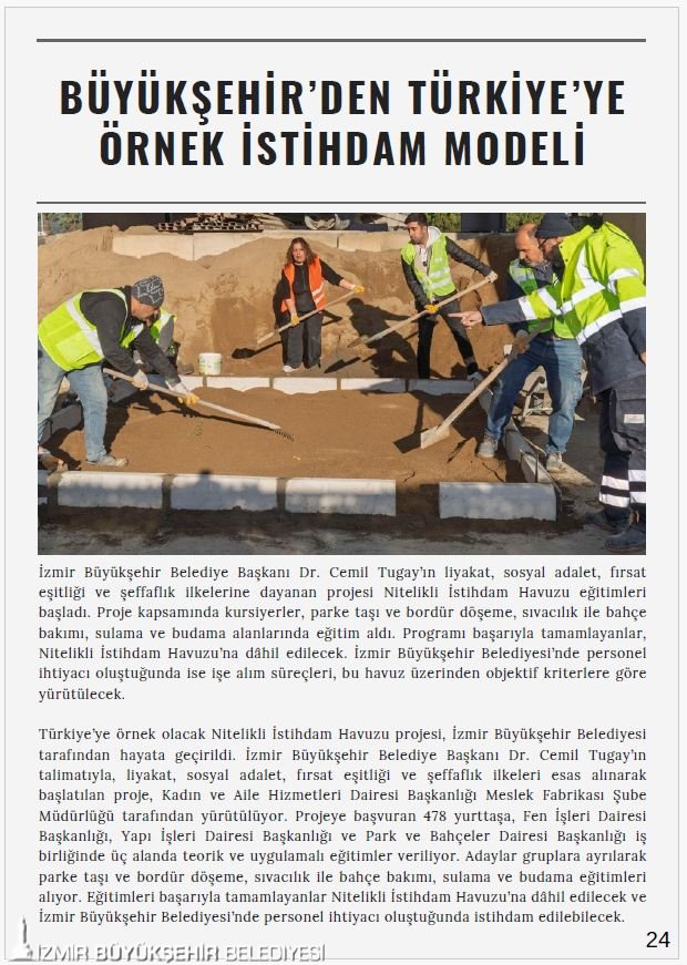 İzmir Büyükşehir Belediye Başkanı Dr. Cemil Tugay’ın “yaşamın her alanına dokunan sosyal belediyecilik” ve “hizmetlere eşit ve kolay erişim” hedefleri doğrultusunda sürdürülen iletişim çalışmaları kapsamında yayımlanan “Hep Birlikte İzmir” e-bülteni, üçüncü sayısıyla bir kez daha okuyucularla buluştu. Bülten; Meslek Fabrikası, Çocuk Çalışmaları, Gençlik Çalışmaları ve Kadın Çalışmaları şube müdürlüklerinin gerçekleştirdiği faaliyetleri kapsamlı biçimde aktarıyor.