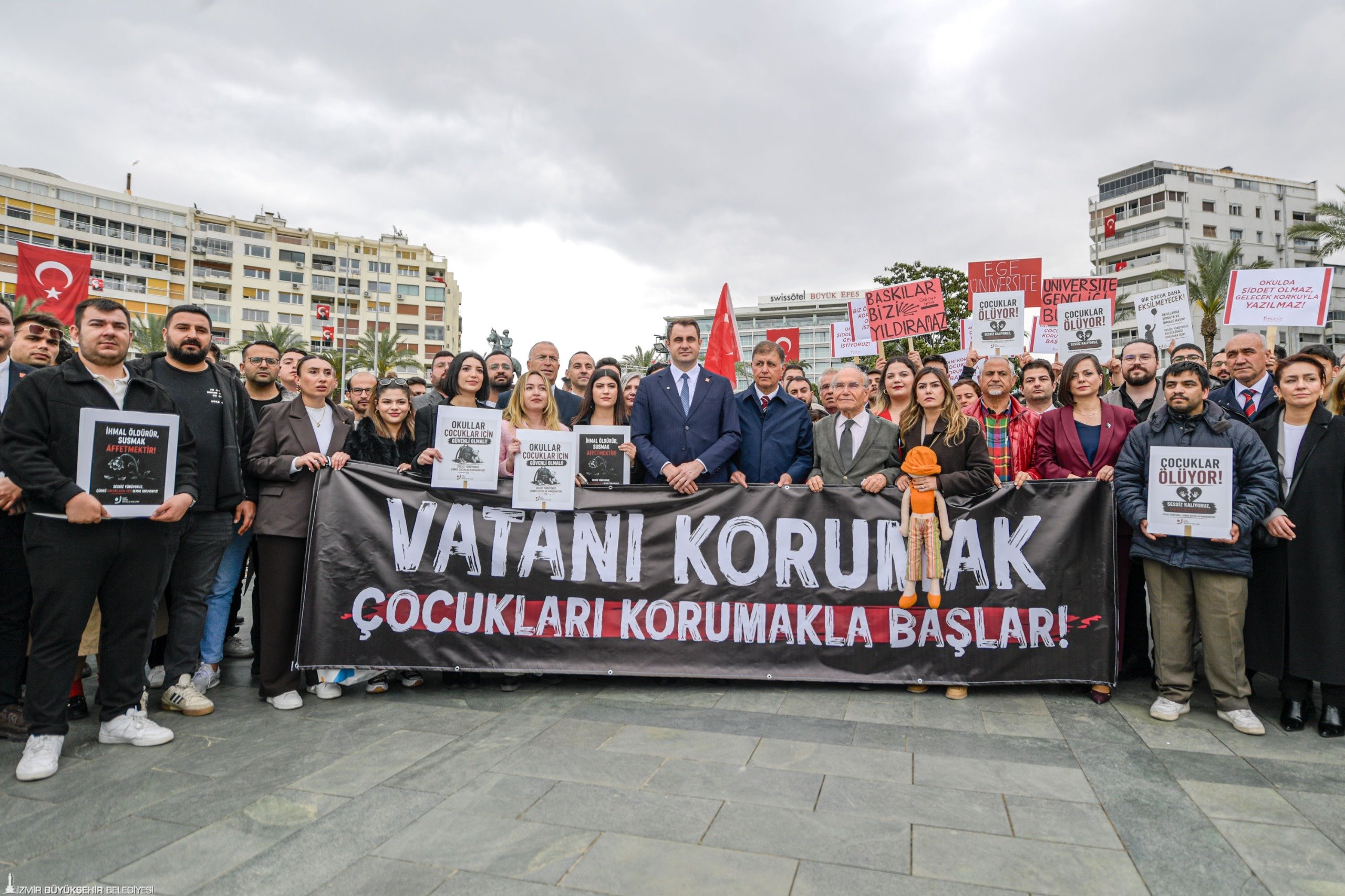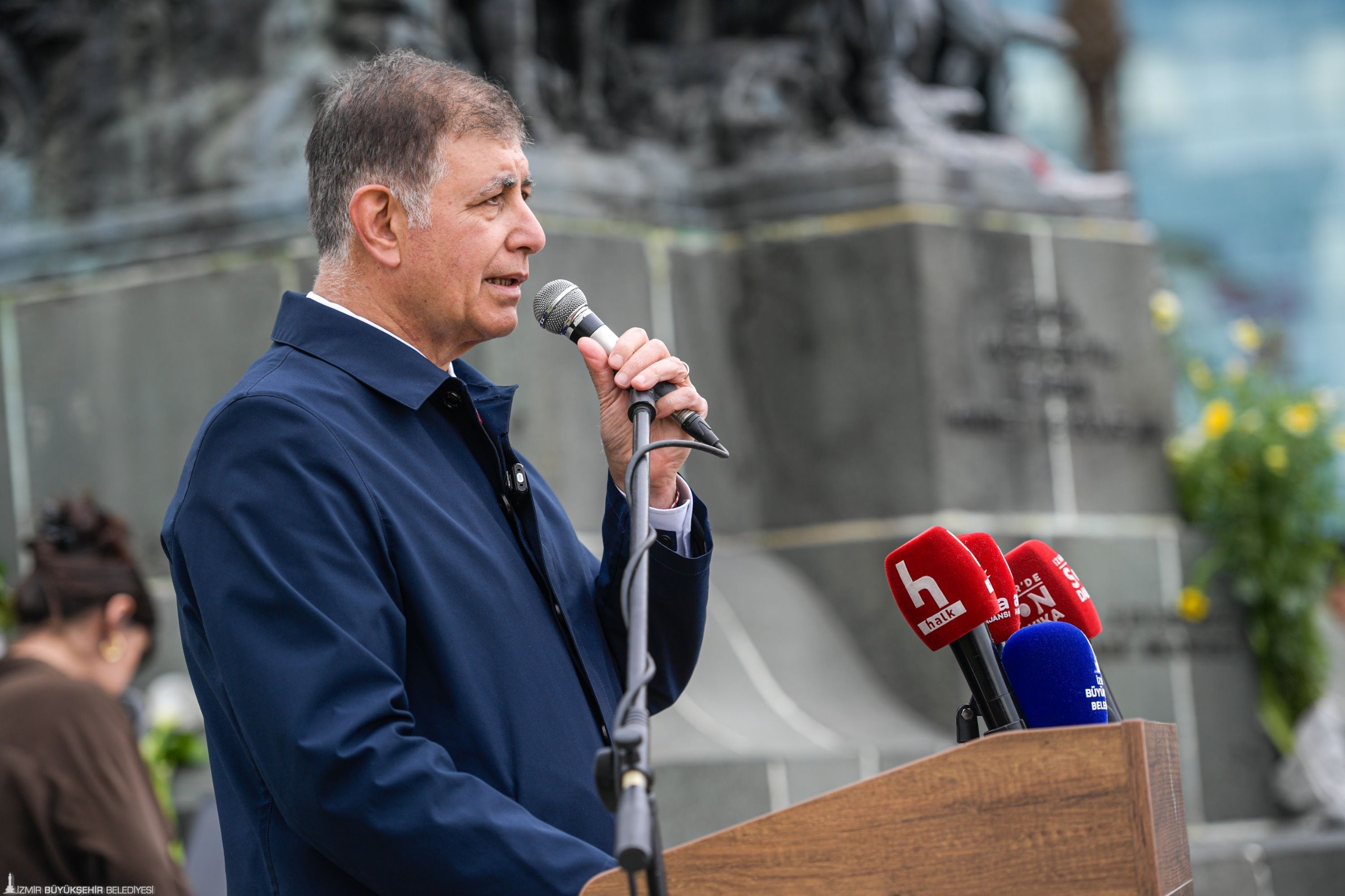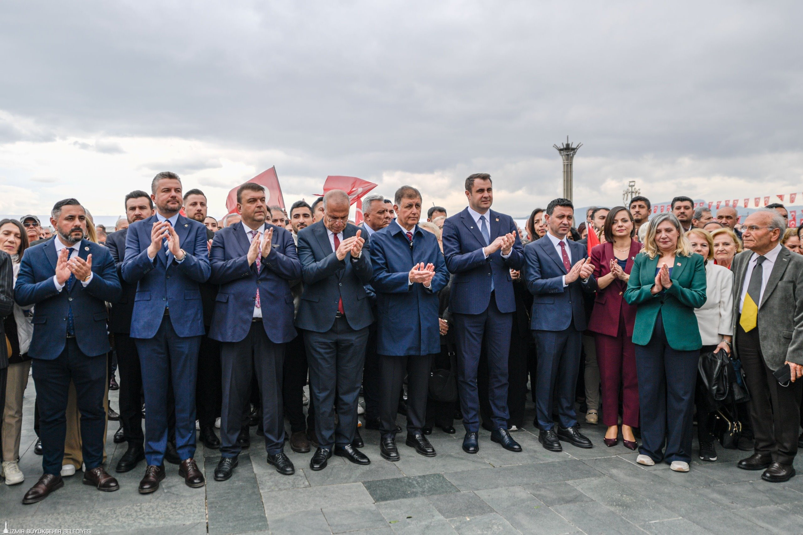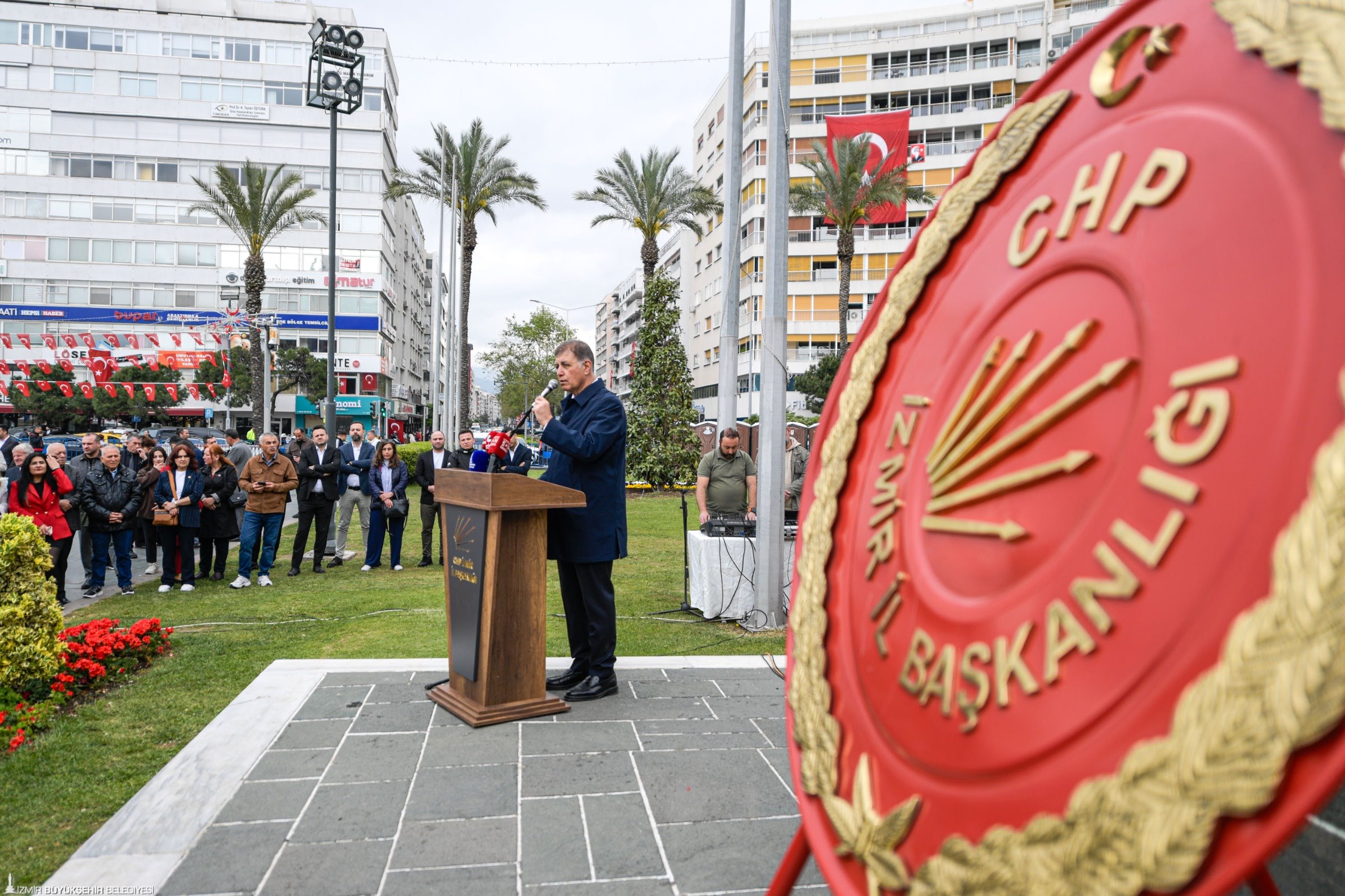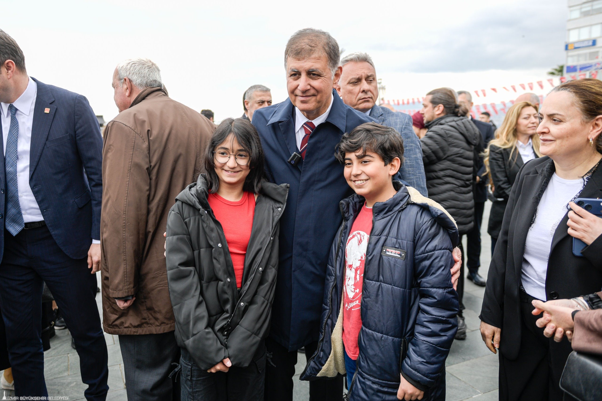 İzmir Büyükşehir Belediye Başkanı Dr. Cemil Tugay, Cumhuriyet Halk Partisi (CHP) İzmir İl Başkanlığı tarafından Cumhuriyet Meydanı’nda düzenlenen 23 Nisan Ulusal Egemenlik ve Çocuk Bayramı çelenk sunma törenine katıldı. Törende CHP İzmir İl Başkanı Çağatay Güç’ün yanı sıra ilçe örgütü başkanları, belediye başkanları, parti yöneticileri ve üyeler de yer aldı. Meydandaki Atatürk Anıtı’na çelenk; Çağatay Güç, CHP İzmir Kadınlar Kolları Başkanı Zahide Kurun ve CHP İzmir Gençlik Kolları Başkanı Ruhsar Selis Çelik Kınacı tarafından sunuldu. Saygı duruşu ve İstiklal Marşı’nın ardından, Kahramanmaraş’ta meydana gelen okul saldırısında hayatını kaybedenler için sessiz yürüyüş düzenlendi. Başkan Tugay’ın da katıldığı yürüyüşte, “Vatanı korumak, çocukları korumakla başlar” yazılı pankart taşıyan partililer İzmir İl Milli Eğitim Müdürlüğü’ne kadar yürüdü.