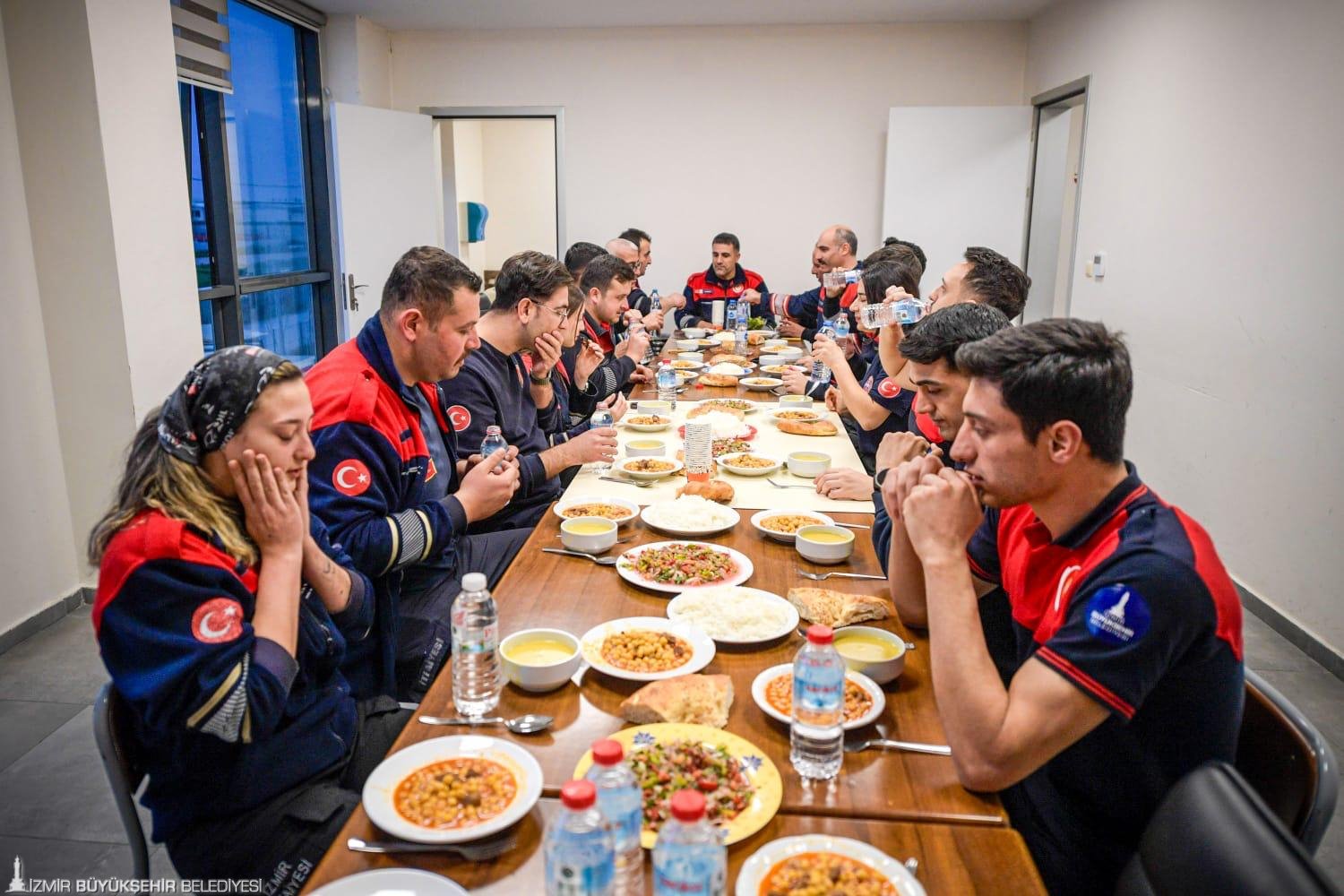 İzmir Büyükşehir Belediyesi İtfaiye Dairesi Başkanlığı personeli, ramazan ayında iftar sofralarını dayanışma ve ekip ruhuyla hazırlıyor. İmece usulü kurulan sofrada kimi çorba pişiriyor, kimi salata doğuruyor, kimi de pilav yapıyor. Ateş savaşçıları bir yandan yemeklerini hazırlarken bir yandan da olası ihbarlara karşı her an tetikte bekliyor. Tüm ekibin katkısı ile iftar için hazırlanan sofrada hep birlikte dualar okunduktan sonra oruçlar açılıyor.