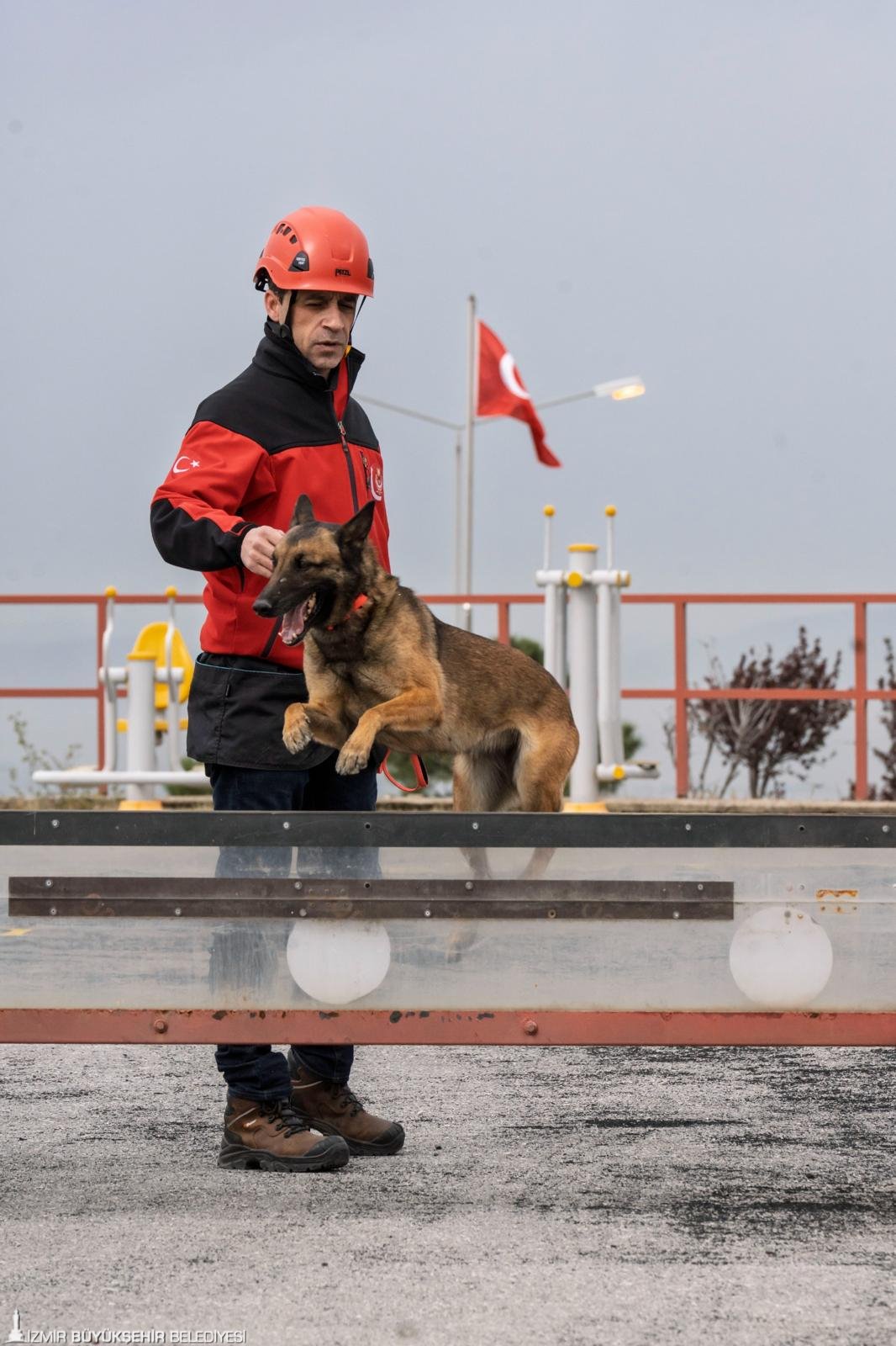 Köpeklere yönlendirme, çeviklik, itaat ve arama-bulma ana başlıklarında eğitim veriliyor. İzmir Büyükşehir Belediyesi İtfaiye Dairesi Başkanlığı Arama Kurtarma Şube Müdürü Şenol Dereköy, bu köpeklerin özel olarak seçildiğini aktardı. Dereköy, “Bu eğitimlerde verilen görevleri her köpek yapamaz. Öncü birlik olarak bizim için çok değerli ve çok önemliler. Köpeklerimiz olmazsa olmazımız. Teknolojik cihazlarla, insan gücüyle arama kurtarma yapılıyor ama bir yere kadar. Köpekler, yetenekleri gereği dakikalar içerisinde hızlı sonuç alacak şekilde çalışıyor. Kazazedeye ne kadar hızlı ulaşabilirsek bizim için o kadar iyi. Başarı oranları çok yüksek. Onlarla çalışmak bizim için de çok keyifli. Onlar bizim bir parçamız” diye konuştu.