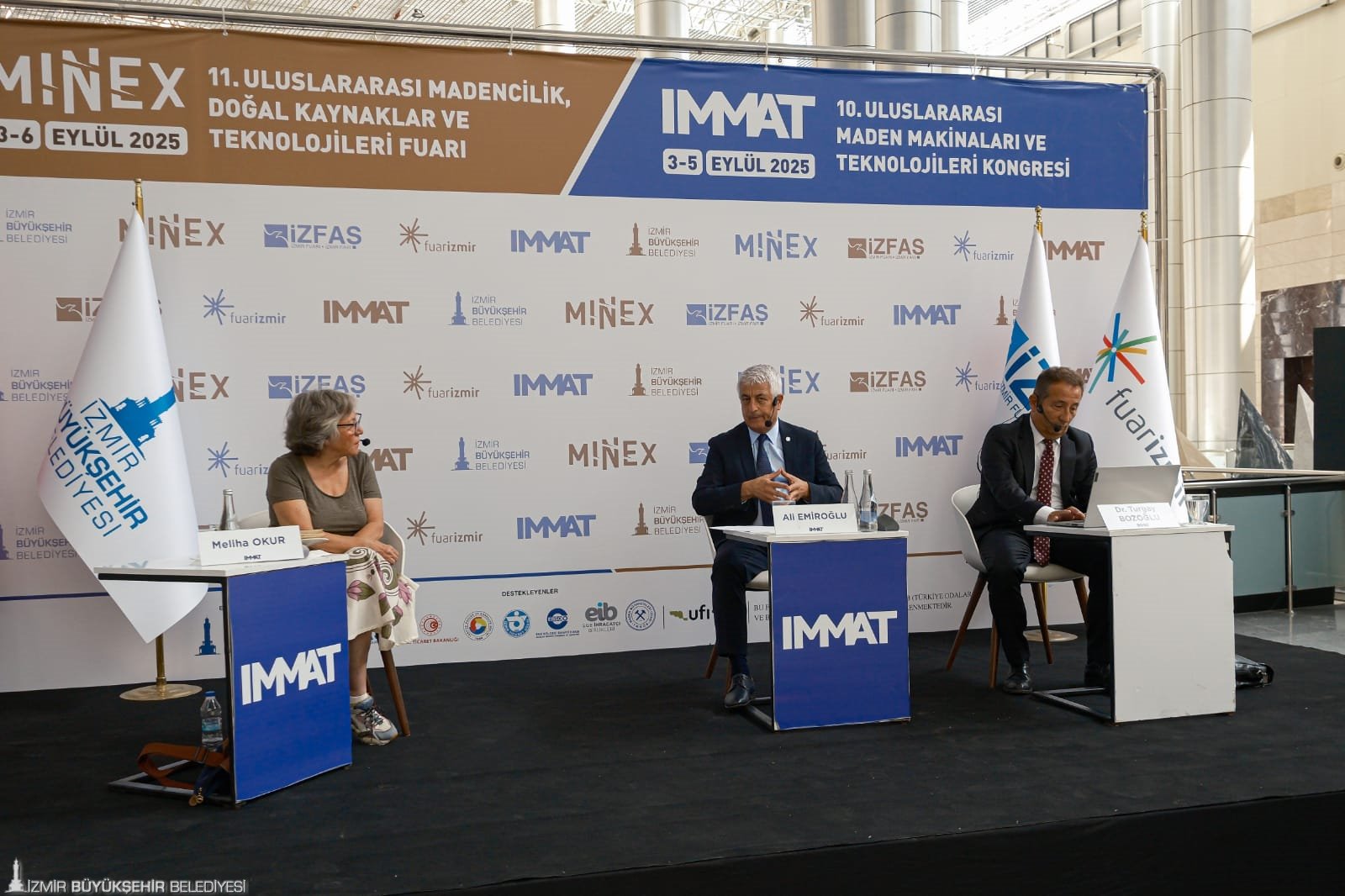 İzmir Büyükşehir Belediyesi’nin ev sahipliğinde İZFAŞ tarafından düzenlenen MINEX – 11. Uluslararası Madencilik, Doğal Kaynaklar ve Teknolojileri Fuarı, Fuar İzmir’de düzenleniyor. Fuar ile eş zamanlı olarak TMMOB Maden Mühendisleri Odası İzmir Şubesi tarafından organize edilen 10. Uluslararası Maden Makinaları ve Teknolojileri Kongresi (IMMAT-2025) de gerçekleştiriliyor. Akademi ve sektör temsilcilerini bir araya getirerek, madencilik alanında teknik ve bilimsel gelişime katkı sunan kongrenin, Meliha Okur, Turgay Bozoğlu ve Ali Emiroğlu konuşmacı olduğu açılış oturumu, “Madencilik ve Ekonomi” başlığı altında gerçekleştirildi.