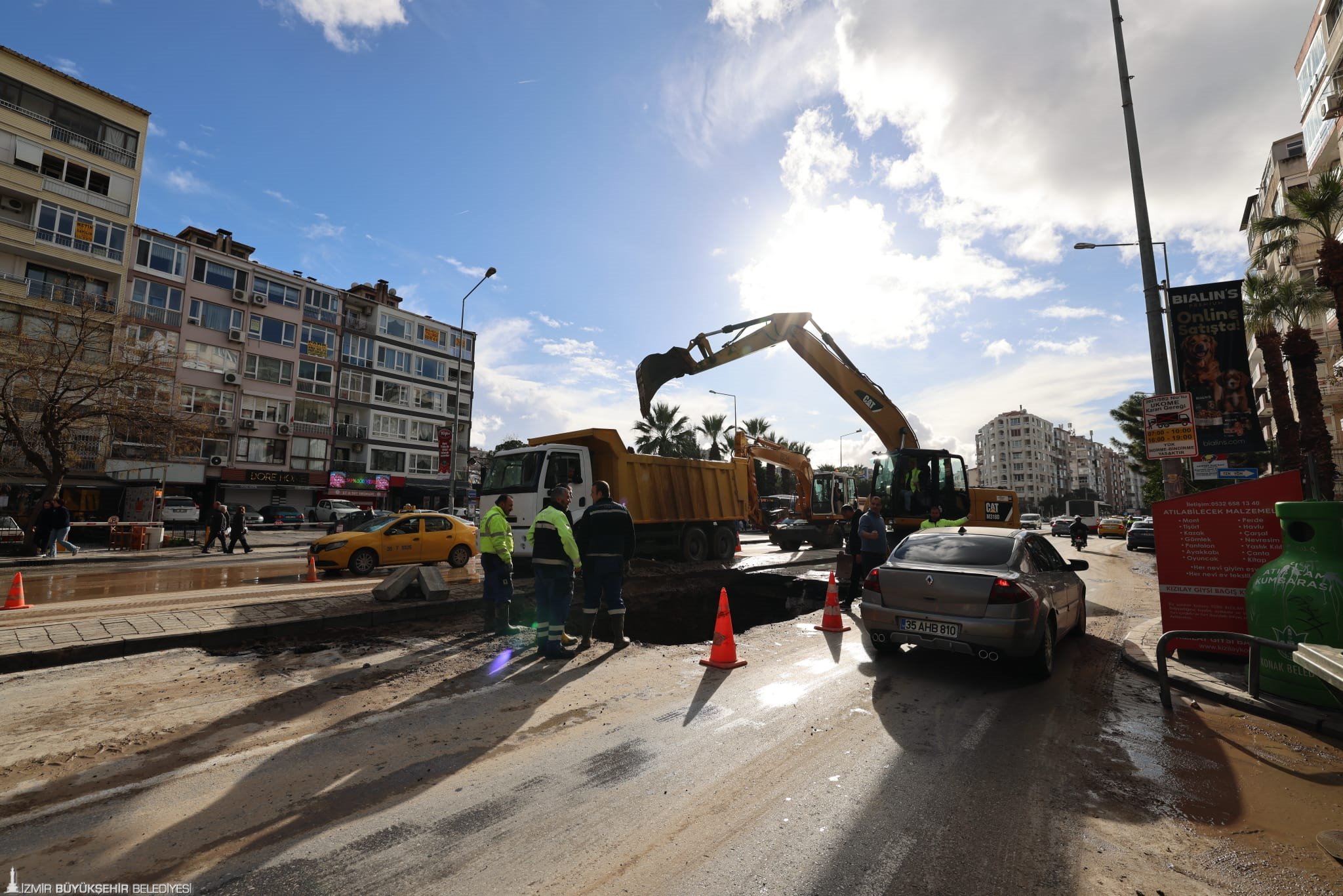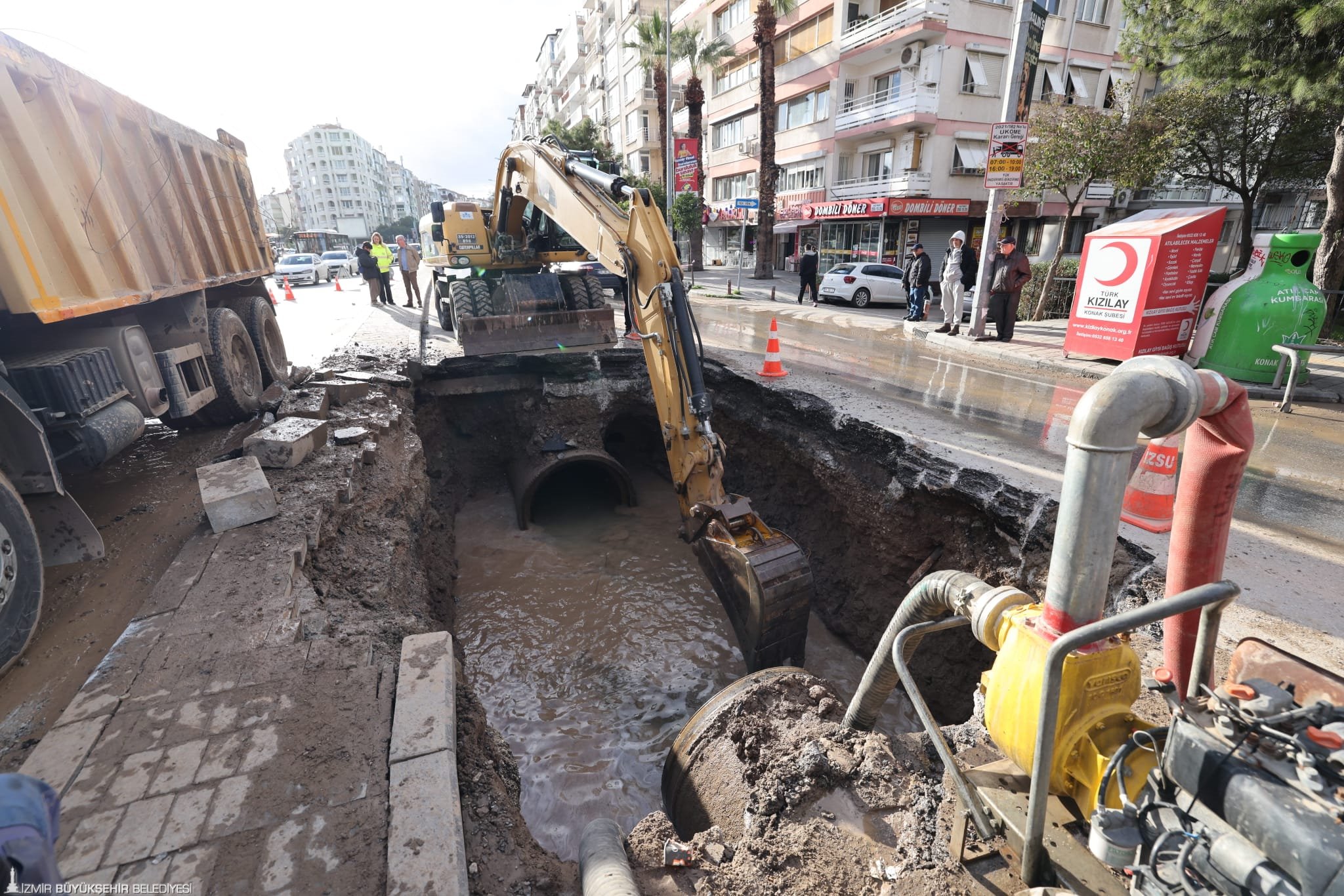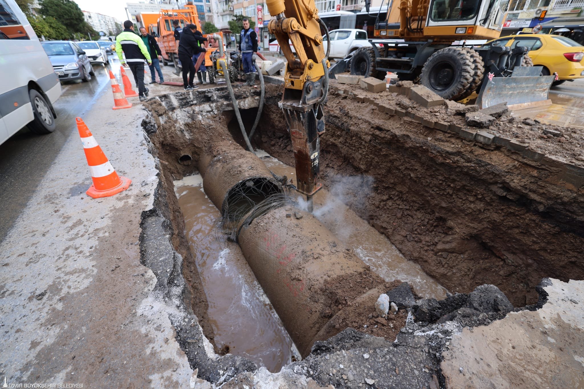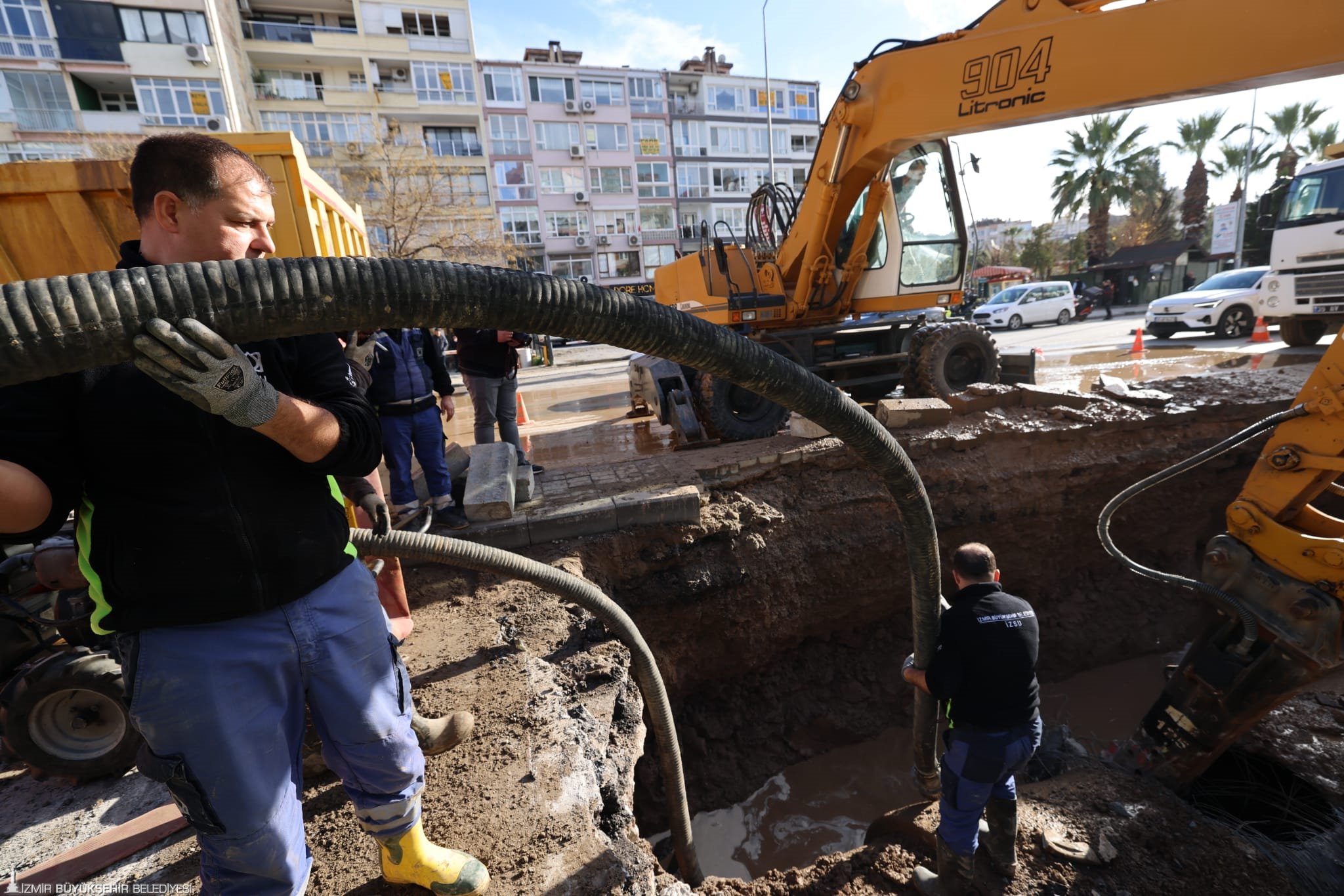 İzmir Büyükşehir Belediyesi İZSU Genel Müdürlüğü, Konak’ta İnönü Caddesi ile 200 Sokak kavşağında öğle saatlerinde meydana gelen ana isale hattı arızasına hızlı şekilde müdahale etti. Kentin içme suyu iletiminde kritik öneme sahip 1,4 metre çapındaki içme suyu beton borusunda oluşan arızanın, boru birleşim noktasından kaynaklandığı belirlendi. Arızanın giderilmesi ve olası daha büyük altyapı risklerinin önüne geçilmesi amacıyla hat kontrollü şekilde devre dışı bırakıldı.