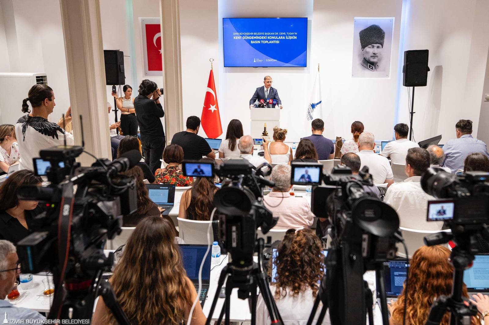 İzmir Büyükşehir Belediye Başkanı Dr. Cemil Tugay, kent gündemindeki konulara ilişkin basın toplantısı düzenledi. Egemenlik Evi’ndeki Çetin Emeç Toplantı Salonu’nda düzenlenen basın toplantısına yerel ve ulusal basının temsilcileri katıldı. Başkan Dr. Cemil Tugay, İzmir Büyükşehir Belediyesi’nin yürüttüğü çalışmalar, toplu iş sözleşmesi süreci, mali yapı ve belediyenin yol haritası gibi konulara ilişkin bilgilendirme yaptı.