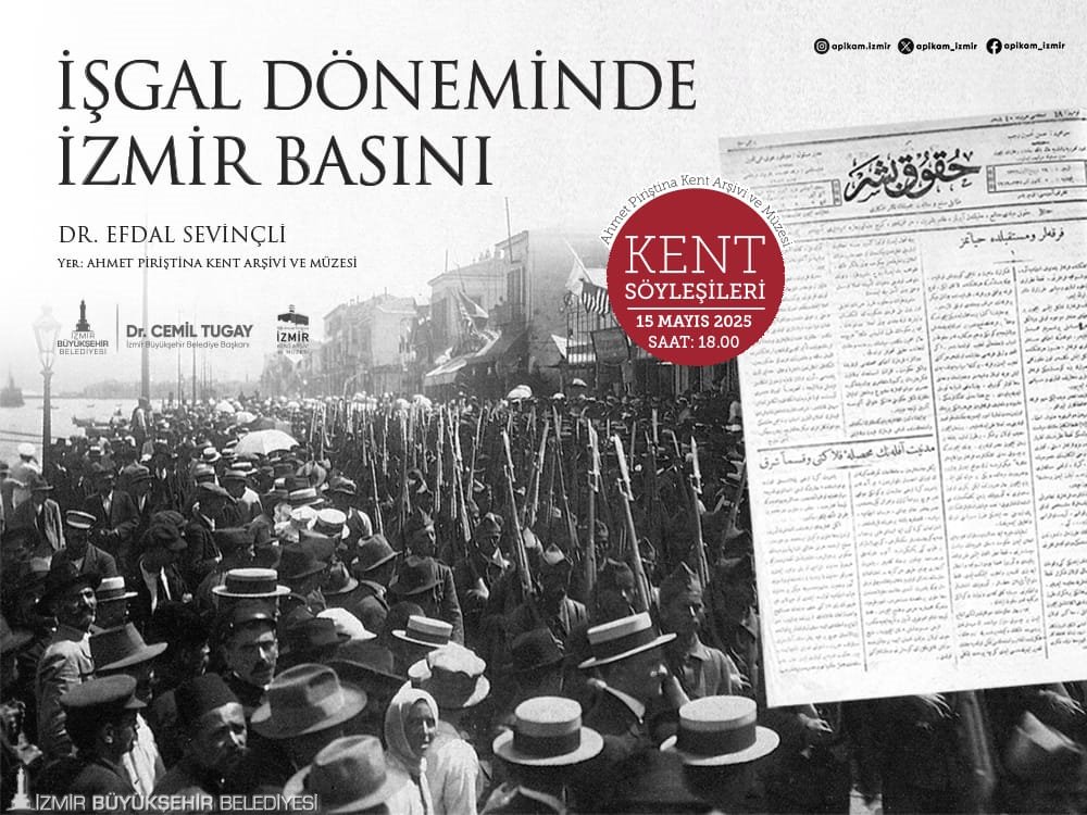İzmir Büyükşehir Belediyesi APİKAM tarafından gerçekleştirilen Kent Söyleşileri, “İşgal Döneminde İzmir Basını” söyleşisiyle devam ediyor. 15 Mayıs 1919’da Yunanistan ordusunun İzmir’e çıkmasıyla başlayan ve 9 Eylül 1922’de Türk ordusunun kenti geri almasıyla son bulan işgal yıllarında İzmir basınının durumunu konu alacak söyleşi, 15 Mayıs Perşembe günü 18.00-19.30 saatleri arasında düzenlenecek. Ahmet Piriştina Kent Arşivi ve Müzesi bahçesinde gerçekleştirilecek söyleşinin konuğu İzmir kent tarihi, kültür ve sanat hayatı alanında çalışmaları bulunan Dr. Efdal Sevinçli olacak.