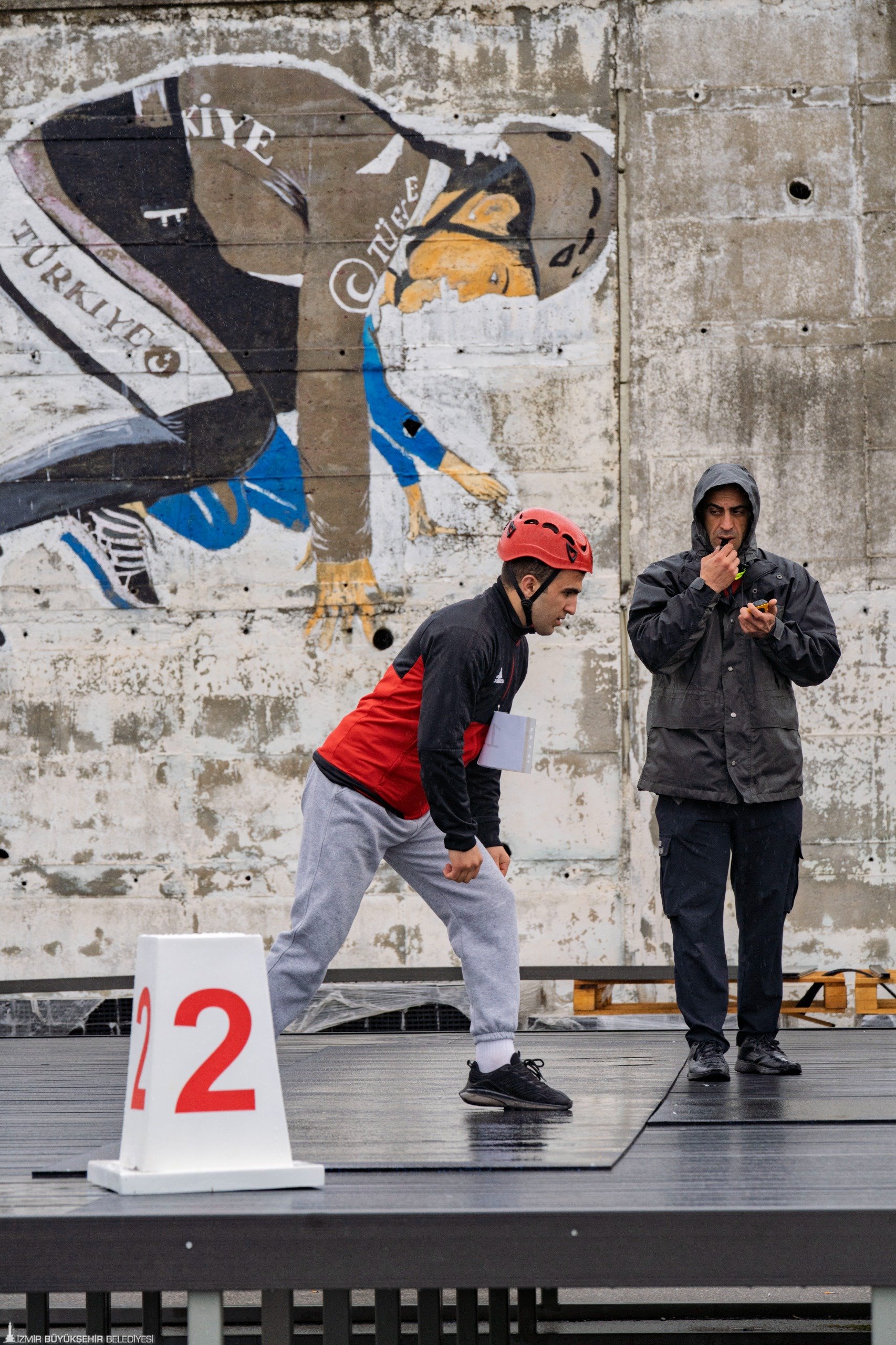 İzmir Büyükşehir Belediyesi İtfaiye Dairesi Başkanlığı’nın 154 memur alımı için açtığı sınava 2 bin 70 kişi başvurdu. Başvuru şartlarını taşıyan 759 aday 18 Nisan’a kadar Toros Eğitim Merkezi'nde uygulamalı sınavlara katılarak zorlu parkurlarda ter dökecek. Uygulama sınavının ilk gününde yağışlı havada mücadele veren adaylar, İzmir İtfaiyesi bünyesinde görev yapmak için kıyasıya yarıştı. İtfaiyeci adayları, zorlu yarışa engel tahtasını (zabor) aşarak başladı. Daha sonra uzunluğu 12 metre, genişliği 18 santimetreyi bulan denge tahtasında yürüyerek tünelden geçti. Fiziki yeterliliğin ölçülmesi için 33 metre koşunun ardından kurulu olan merdivenden kuleye tırmanarak en zorlu parkurları test eden adaylar, karanlık ve dumanlı odada yön bulmaya çalıştı, itfaiye araçlarının direksiyonuna geçti.