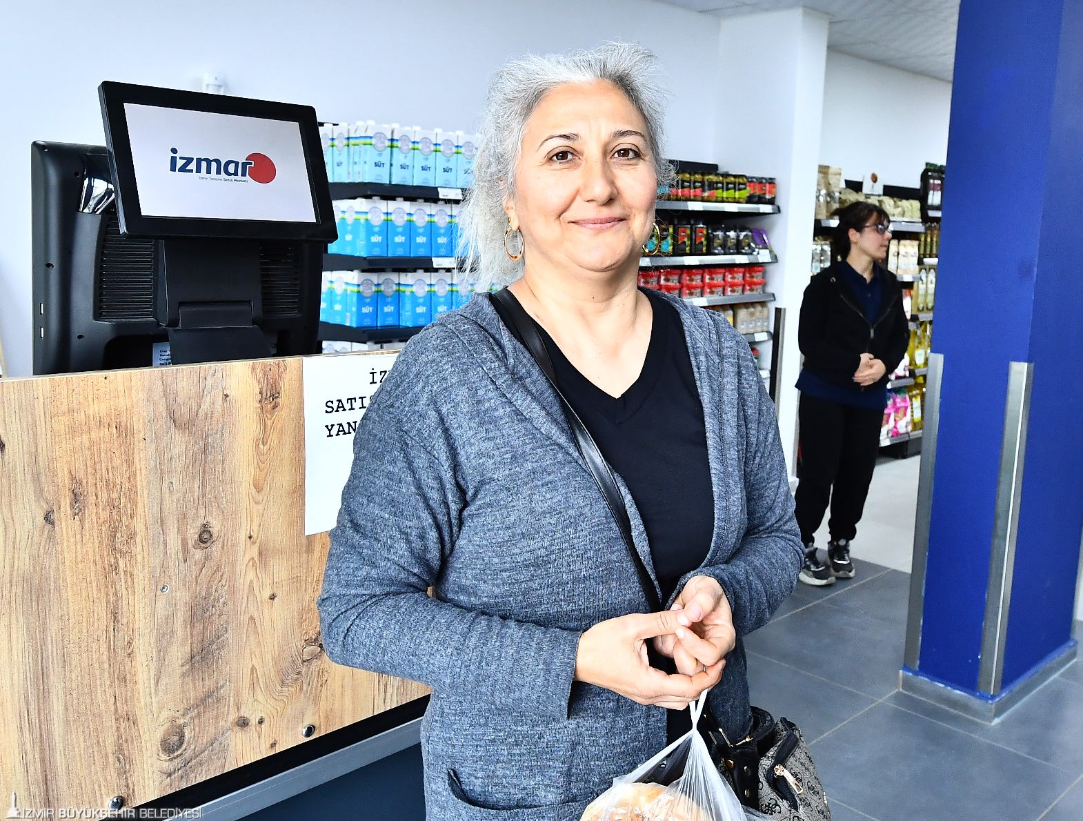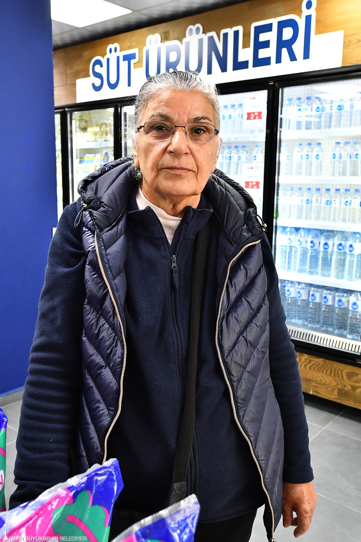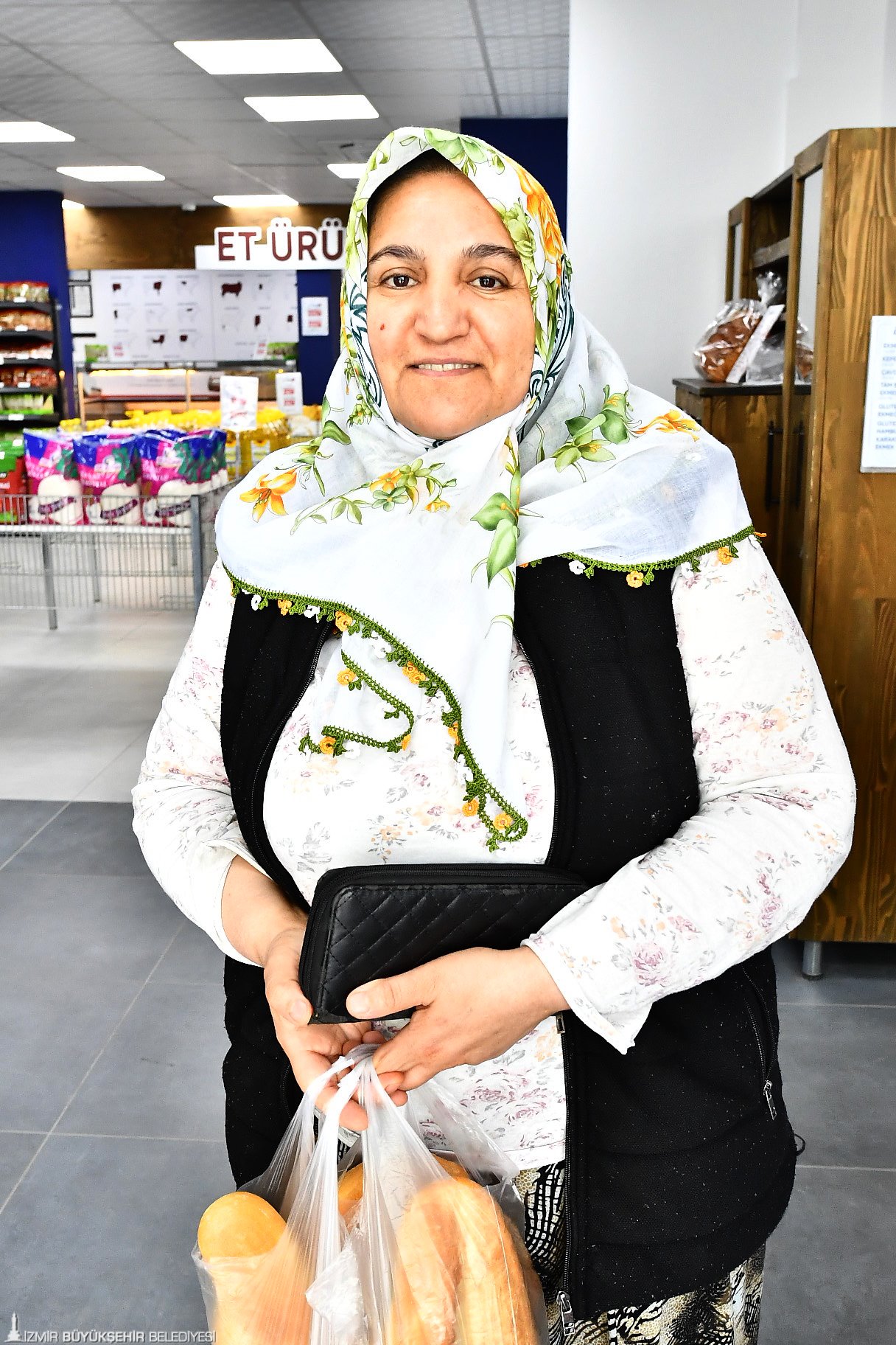 Zehra Atik: “İZMAR’ı çok beğeniyorum. İyi ki var, iyi ki burada. Her gün gelip her şeyden alıyoruz. Fiyatları da uygun. Halk Ekmek de var.”