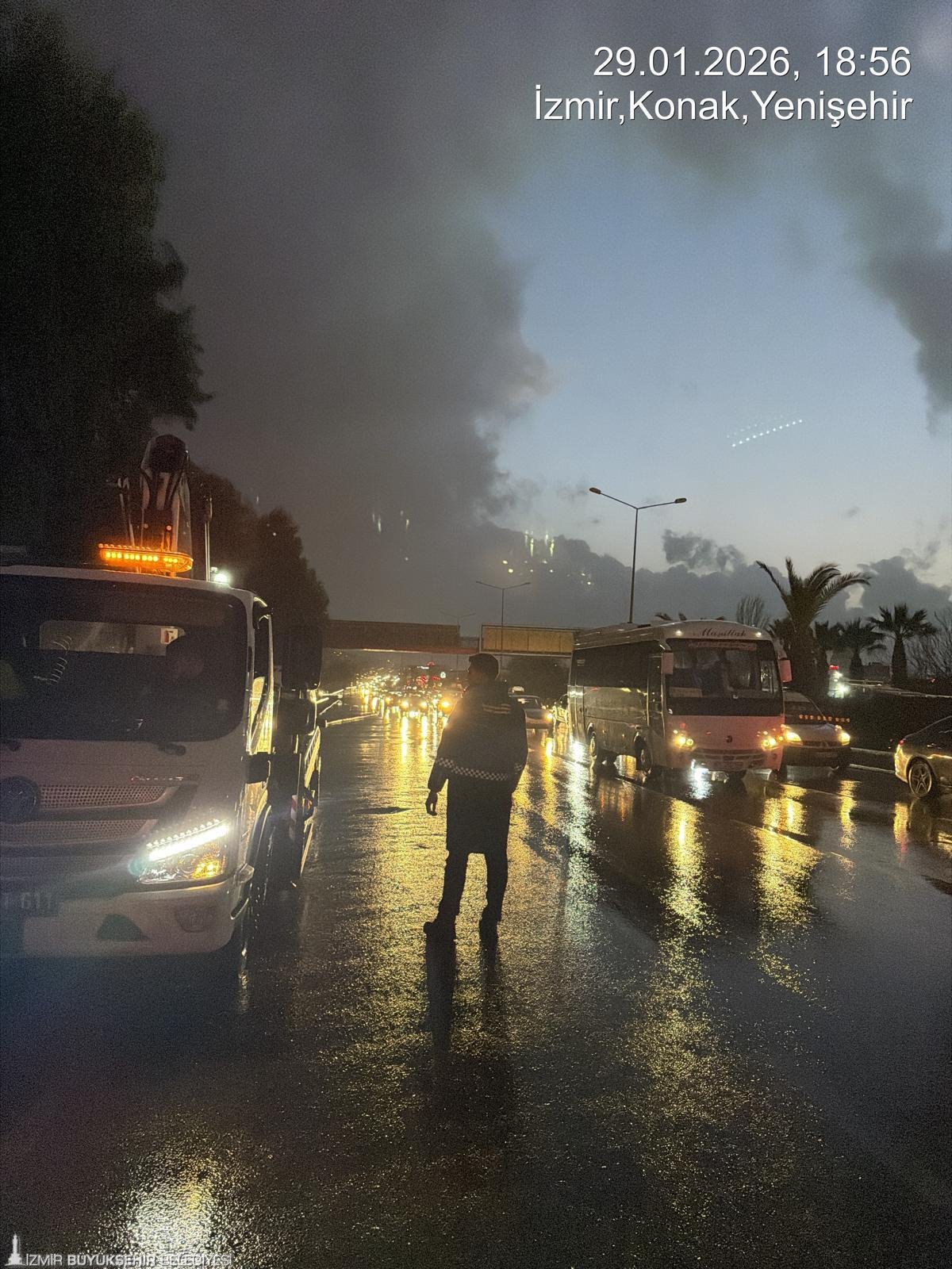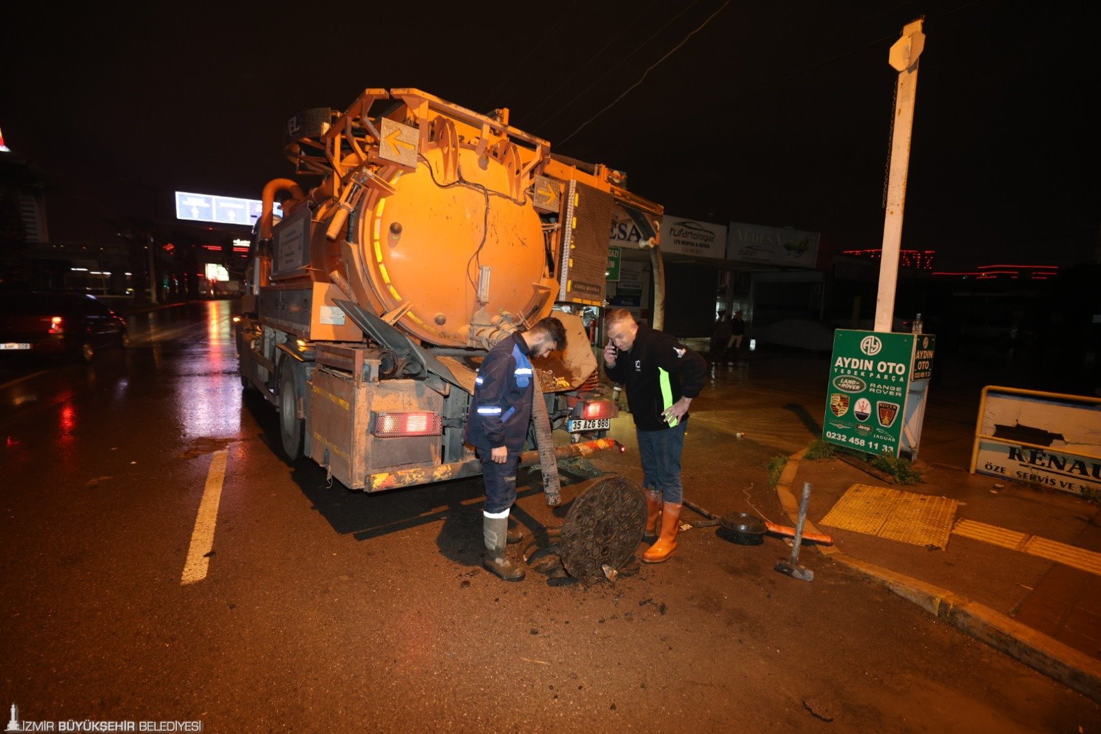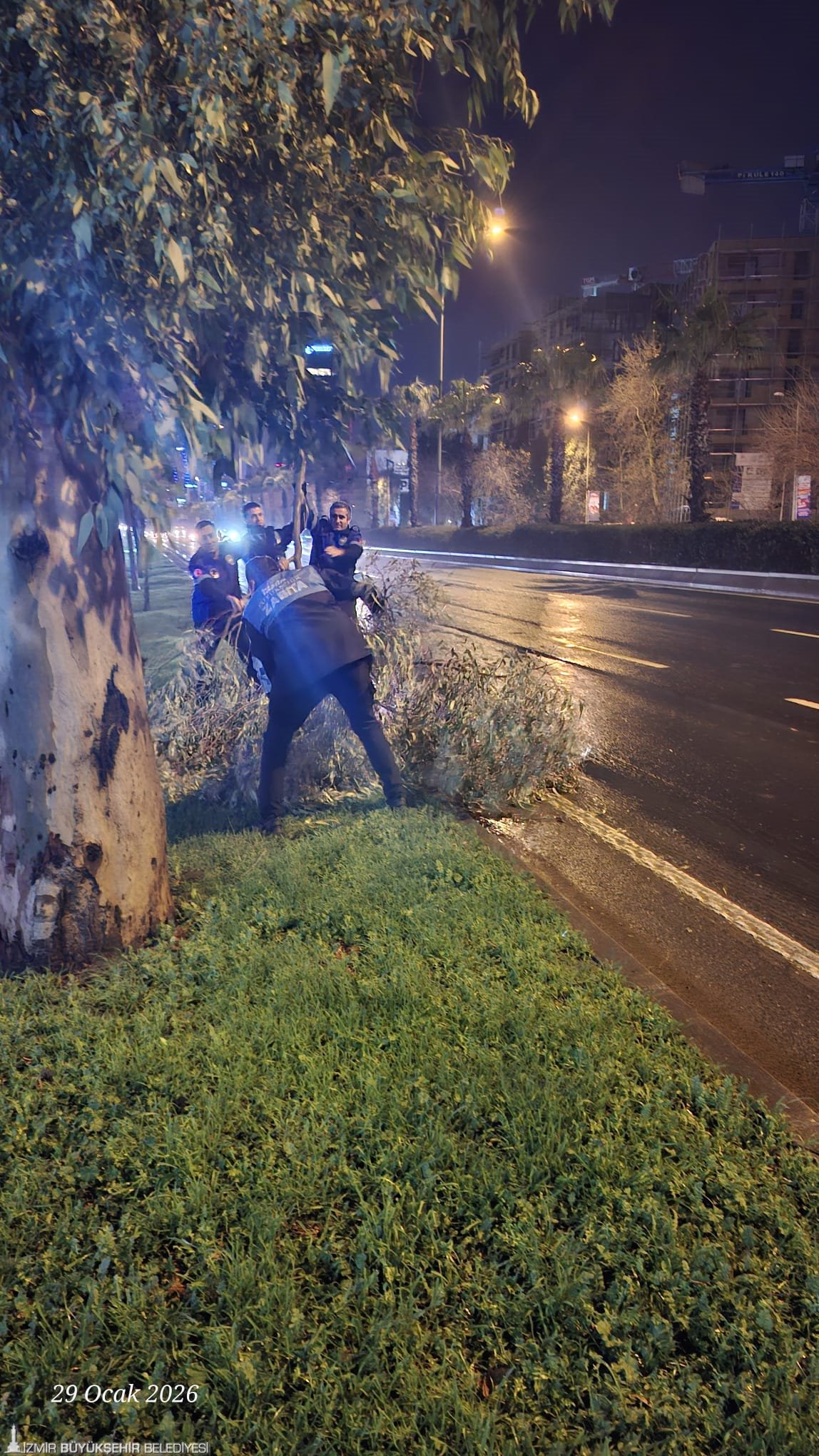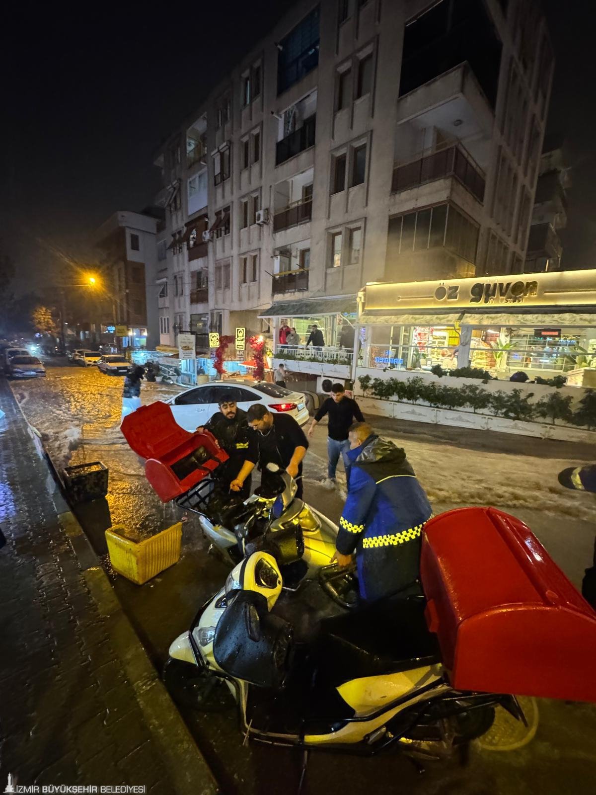 İzmir Büyükşehir Belediyesi, yağış öncesinde AKOM koordinasyonunda hazırlanan kuvvetli yağış, sel ve fırtına hazır müdahale planını devreye aldı. Bu kapsamda İtfaiye, İZSU, Fen İşleri, Yol Yapım, Park ve Bahçeler, Zabıta ve ilgili tüm birimlerde ekip, araç ve personel görevlendirmesi yapıldı. Riskli noktalarda önleyici tedbirler alınırken, ihbarlara hızlı müdahale edilebilmesi amacıyla ekipler kritik bölgelerde önceden konuşlandırıldı. Gece boyunca başta ana arterler olmak üzere kent genelinde yol temizlik ve kanalizasyon temizlik çalışmalarına devam edildi. Yağıştan etkilenen bölgelerde biriken su ve atıklar temizlenirken, taşkın riski bulunan alanlarda da kontroller gerçekleştirildi.