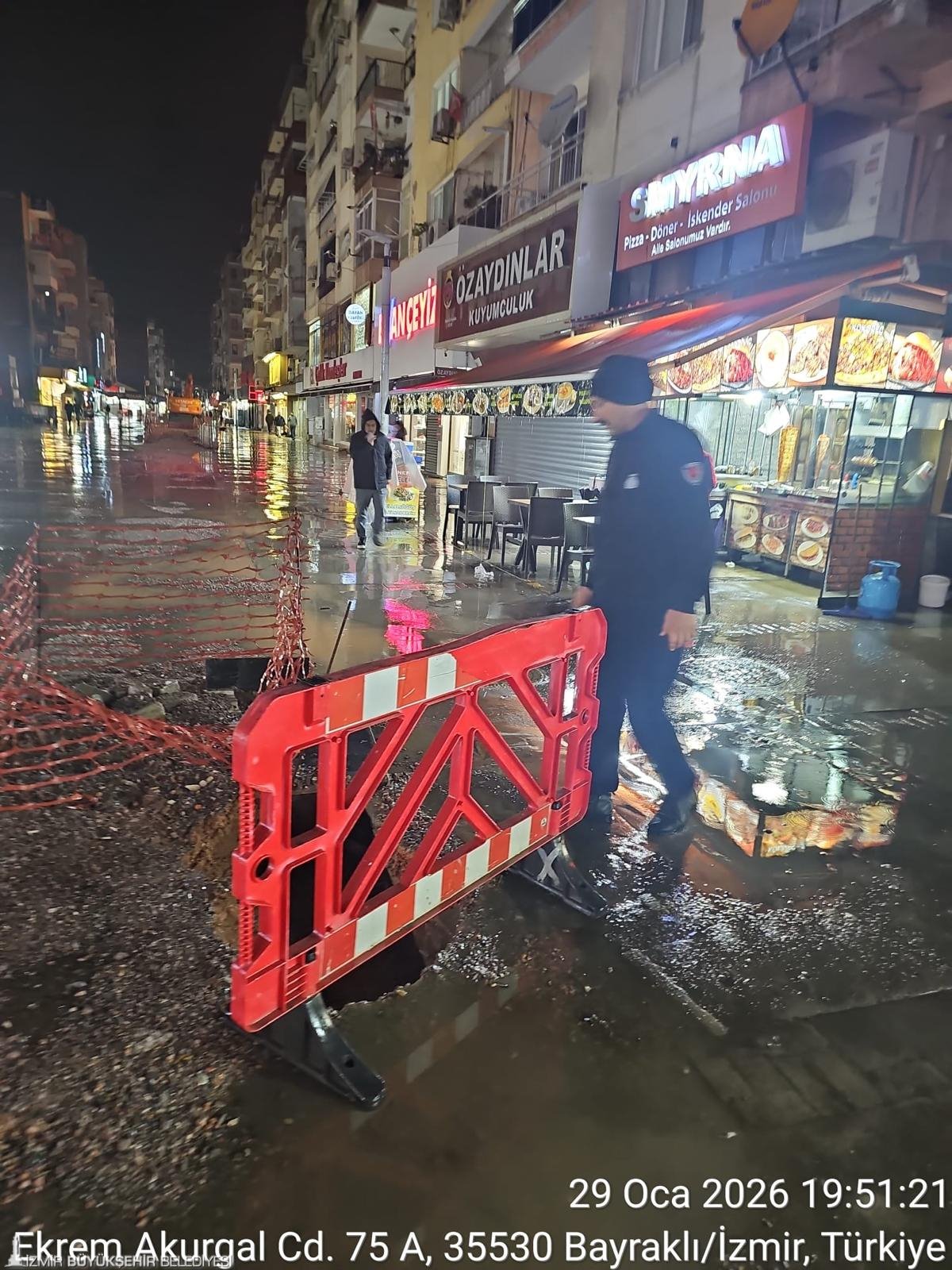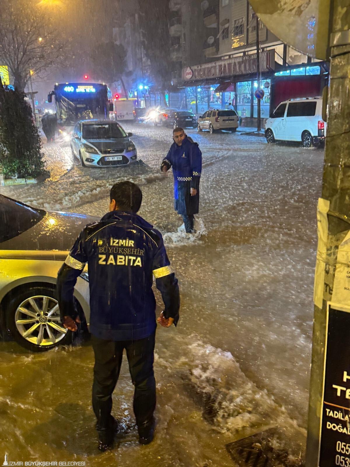İzmir’de akşam saatlerinden itibaren etkisini artıran sağanak yağış, kent genelinde su baskını riskini de beraberinde getirdi. Meteoroloji Genel Müdürlüğü verilerine göre son 24 saatte kent merkezinde metrekareye 45,2 kilogram yağış düştü. Bazı bölgelerde kısa sürede yüksek miktarda yağış kaydedilirken, en yüksek yağış Buca’da metrekareye 80 kilogram, Konak’ta ise 63 kilogram olarak ölçüldü. Büyükşehir Belediyesi, 1.314 personel, 342 araç ve 200 pompa ile çalışmalarını sürdürürken, gelen ihbarlara hızla müdahale edildi. İzmir Büyükşehir Belediyesi Başkan Vekili Dr. Zafer Levent Yıldır ile İZSU Genel Müdürü Gürkan Erdoğan, gece boyunca sağanak ve fırtınanın etkili olduğu Buca, Karabağlar ve Bornova’da sahaya çıkarak yürütülen çalışmaları yerinde inceledi. Saat 03.00’a kadar sahada bulunan İzmir Büyükşehir Belediyesi Başkan Vekili Yıldır, muhtarlar ve yurttaşlarla görüşerek esnafa geçmiş olsun ziyaretinde de bulundu.