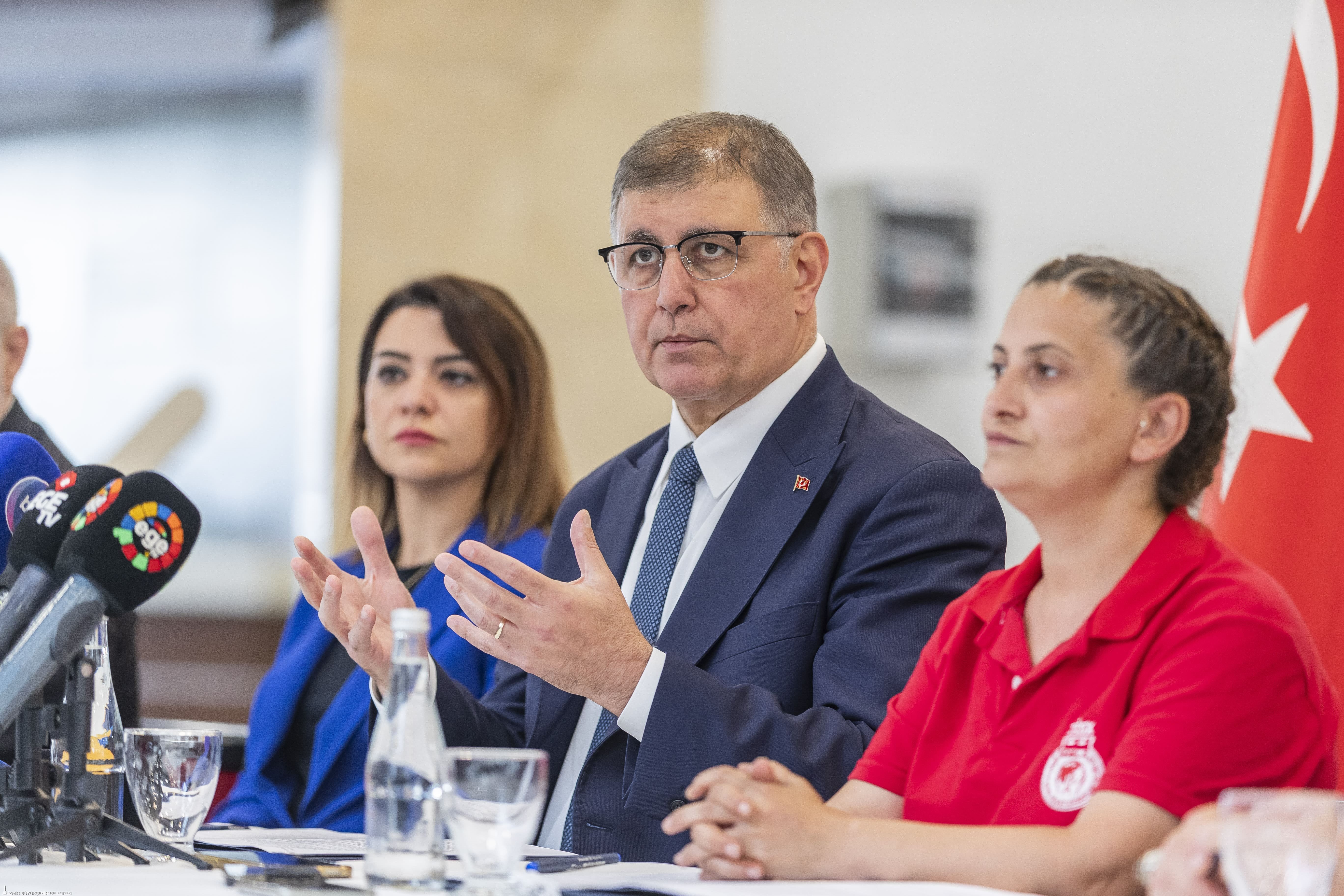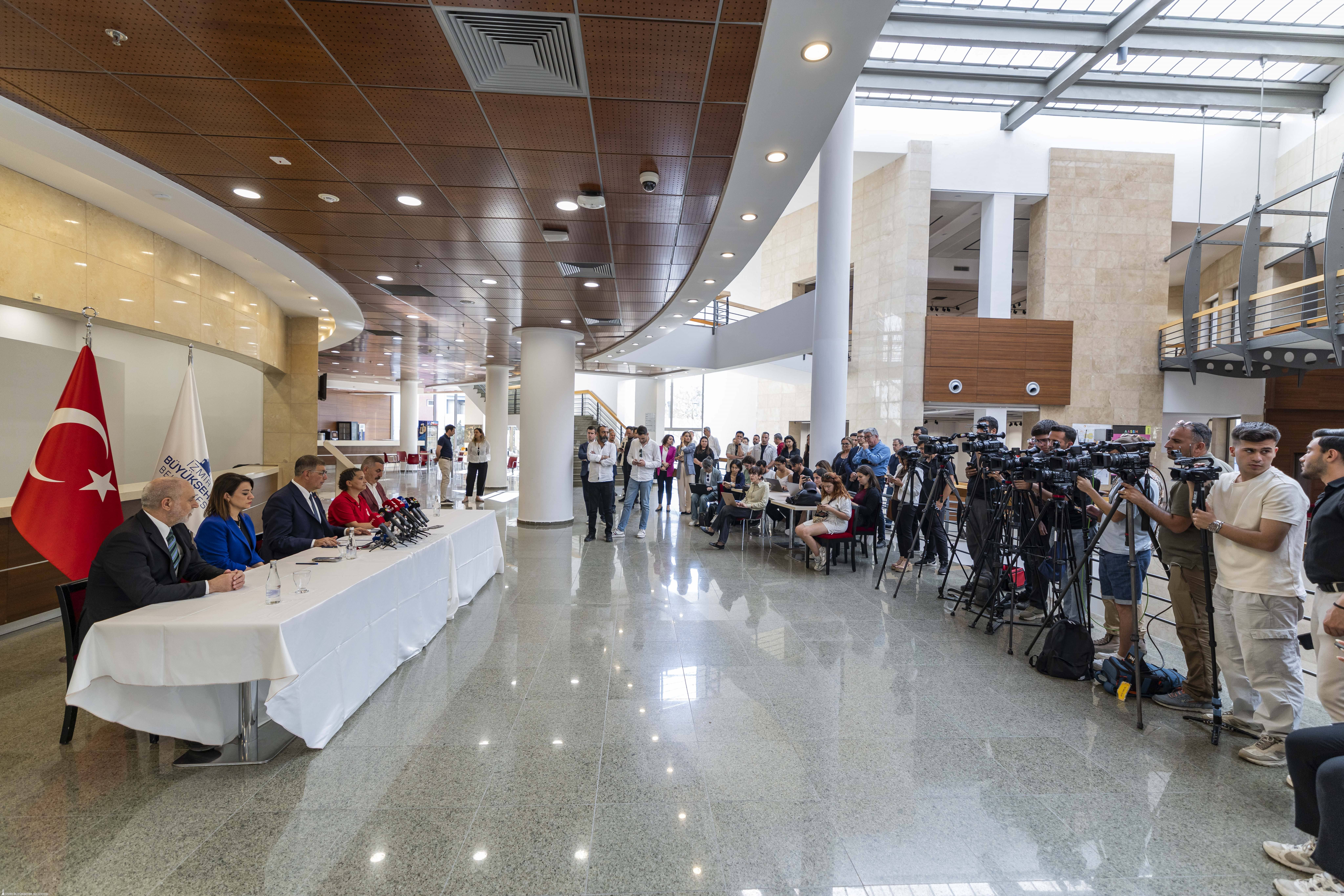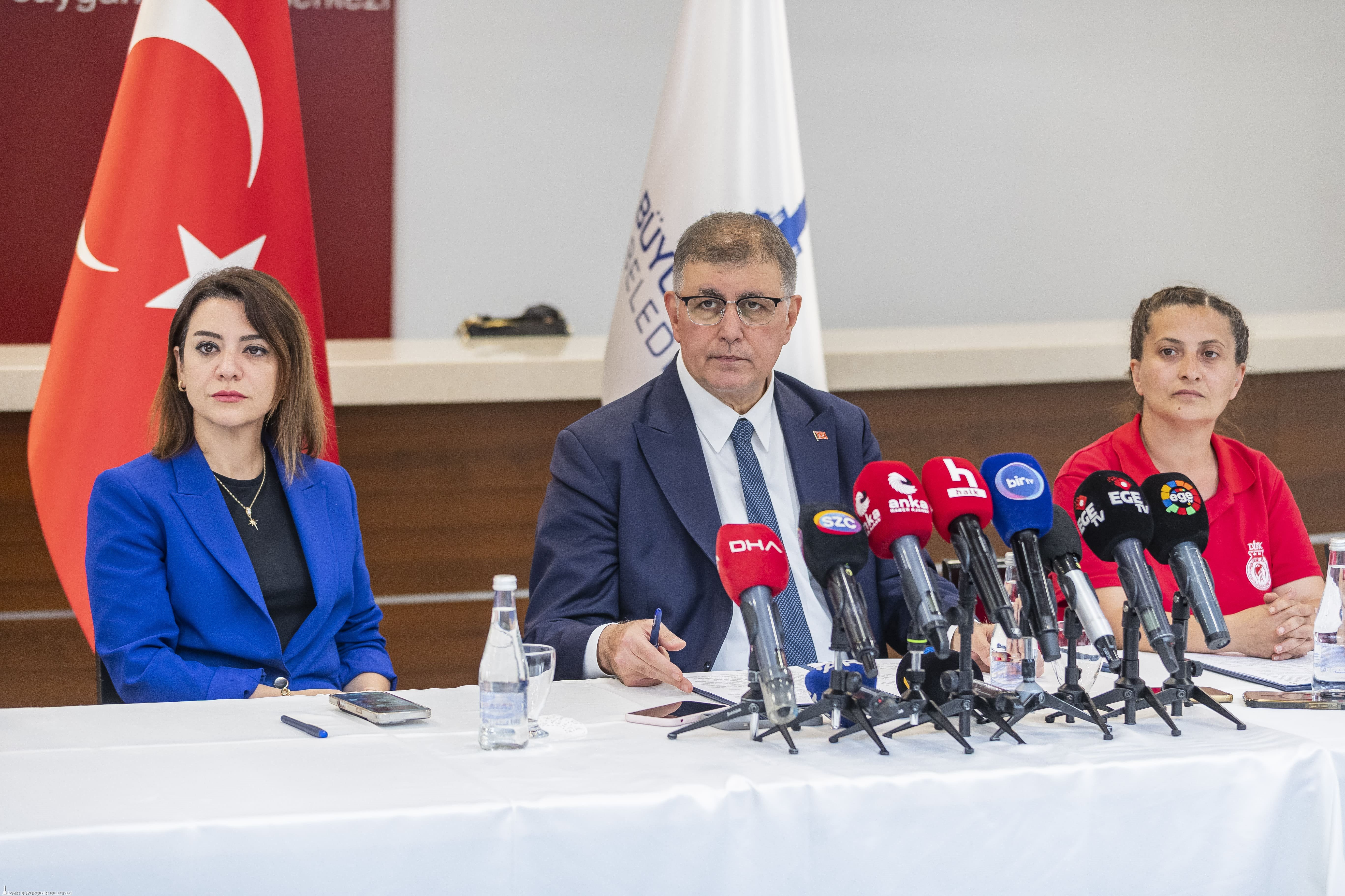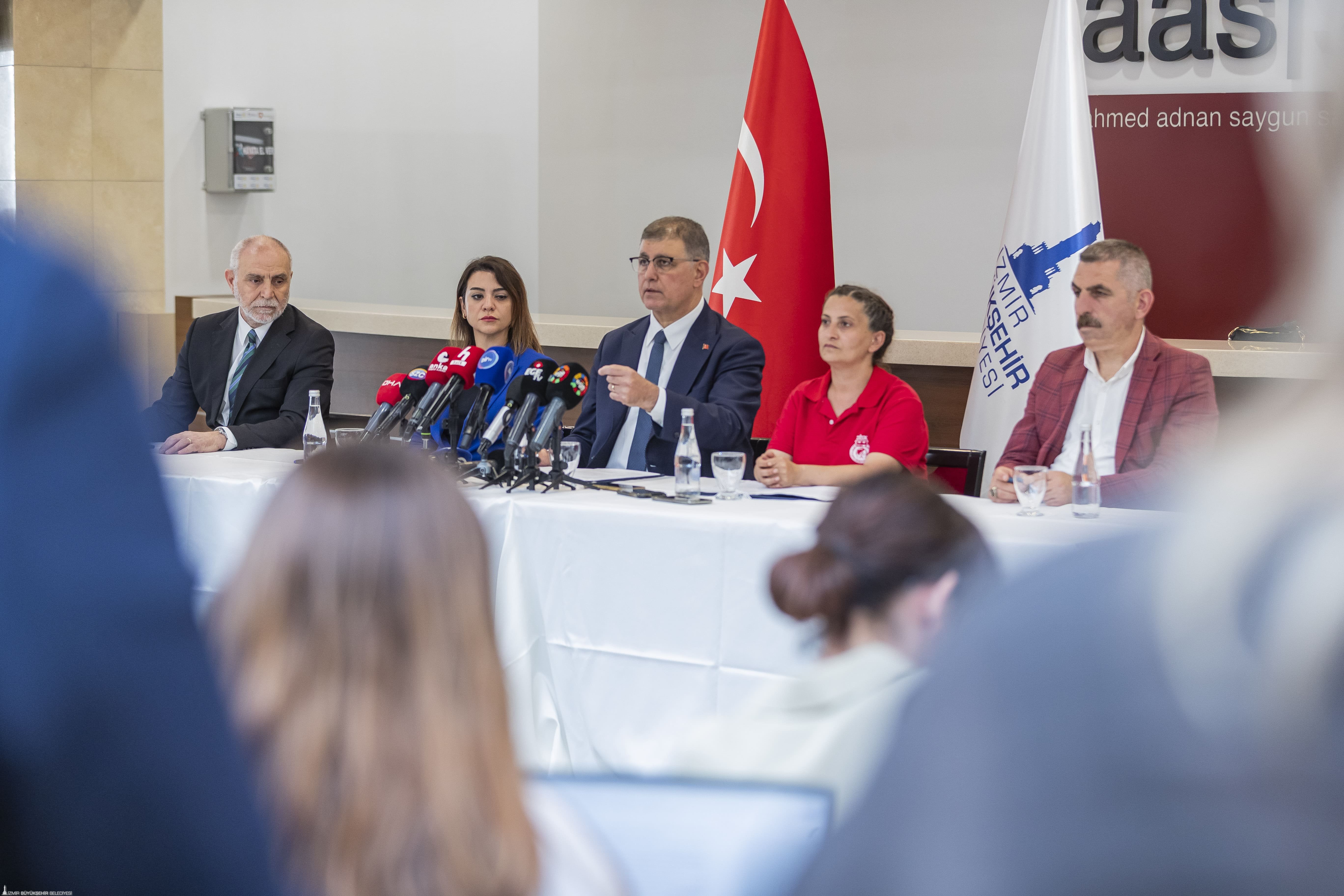 Süreci özetleyerek konuşmasına başlayan İzmir Büyükşehir Belediye Başkanı Dr. Cemil Tugay, “Bütçe olanaklarımızla yapabildiğimizi yapabiliyoruz. Sendika yönetiminde olan arkadaşlarımız da işçilerin haklarını korumak adına taleplerini kendi doğruları oranında dile getiriyorlar. Bu gayet doğal bir süreçtir. Zaman içinde konuşmalar, tartışmalar yaşandı. Üslup hataları olduğunu söyleyebilirim, her iki taraf için de bunu söyleyebilirim. Şu gerçekten hiçbir zaman kopmadığımızı biliyoruz; bizler İzmir Büyükşehir Belediyesi çatısı altında İzmir halkına hizmet etme sorumluluğunda olan kişiler olarak başkanından en alt çalışanına kadar bir aileyiz, bir bütünüz. Aile olma ifadesi sıkça kullanıldığı için içi boşaltılmış bir ifade gibi görünebilir ama biz gerçekten öyle hissediyoruz. Konu uzlaşmaya ihtiyaç duyan, tartışmalı bir konuydu. Sıkıntılı bir süreç olmasından kaynaklı insanların zorlandığını ve üslup hatalarının olağan görülmesi gerektiğini de düşünüyorum” diye konuştu.