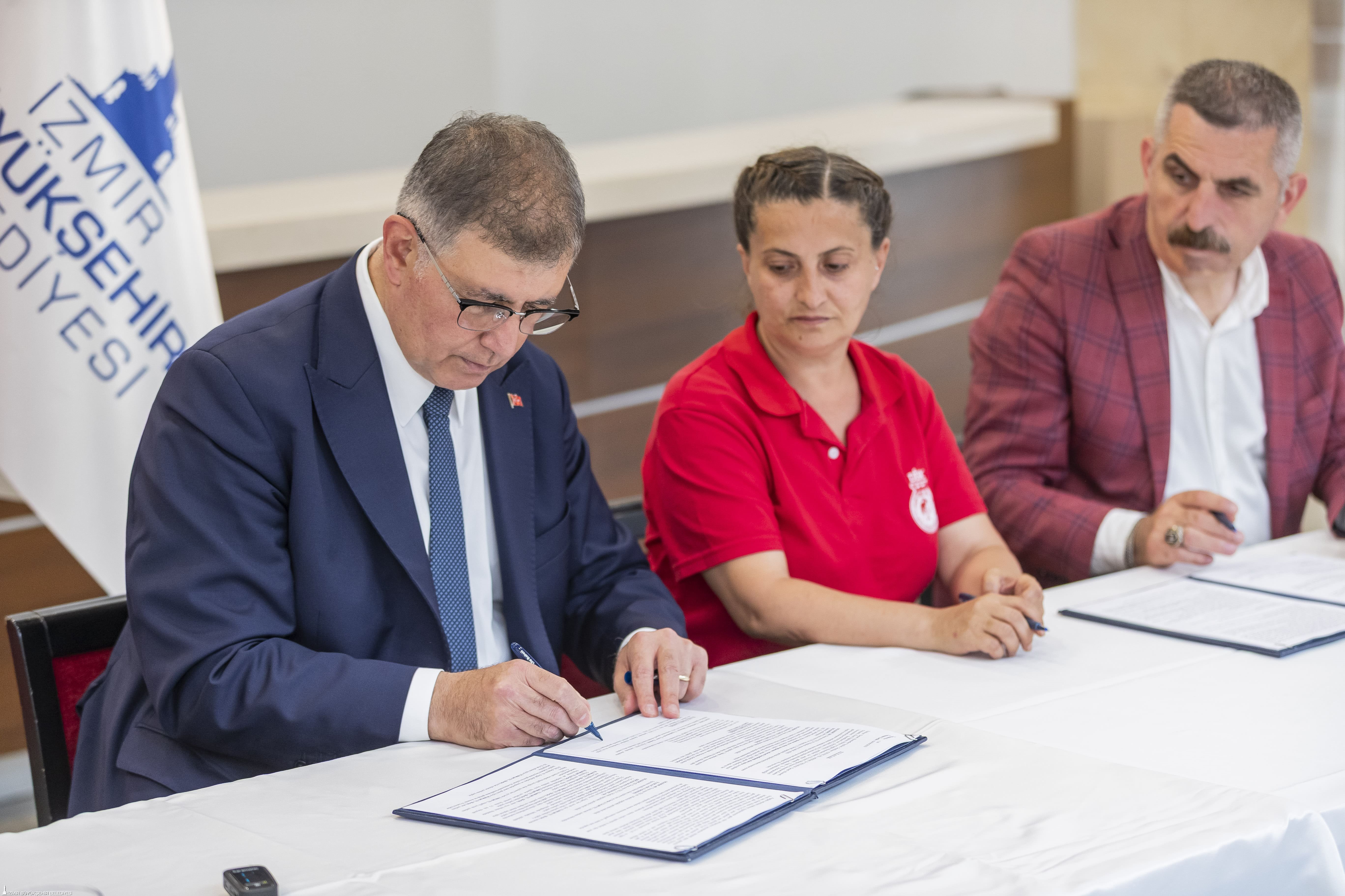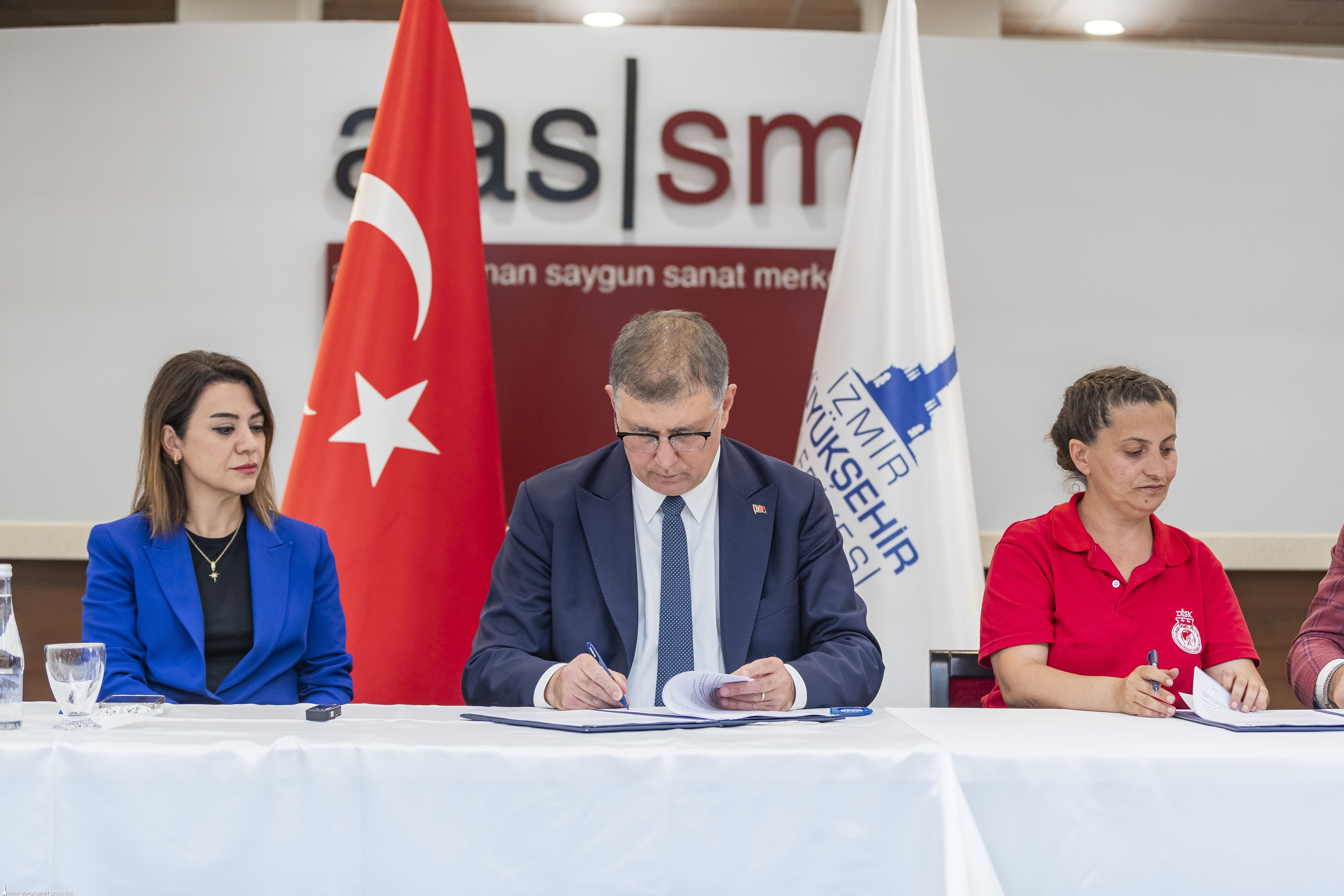 İzmir Büyükşehir Belediyesi ile Devrimci İşçi Sendikaları Konfederasyonu (DİSK) Genel İş Sendikası İzmir 1 ve 3 No'lu Şubeler arasında yürütülen toplu iş sözleşmesi görüşmelerinde uzlaşmaya varıldı. İzmir Büyükşehir Belediye Başkanı Dr. Cemil Tugay, sözleşmeyi DİSK Genel İş 1 No'lu Şube Başkanı Engin Topal ile 3 No'lu Şube Başkanı Serap Yılmaz'ın yanı sıra CHP Genel Başkan Yardımcısı Gamze Taşçıer'in katılımıyla Ahmed Adnan Saygun Sanat Merkezi'nde (AASSM) imzaladı.