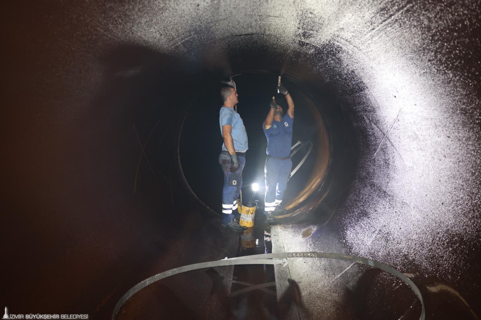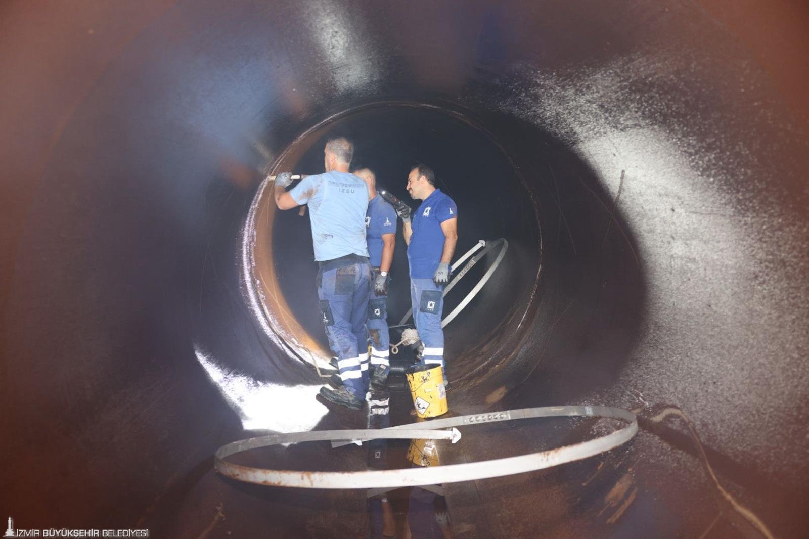 “Güzelhisar (Petkim) Barajı ile Sarıkız ve Göksu Kuyuları’ndan şehrimize su taşıyan 2,2 metre çapındaki ana su isale hattında dün gece büyük bir patlak meydana gelmiştir. Çiğli 9 Eylül Mahallesi’nde yerin 3 metre altında gerçekleşen bu patlağa, ekiplerimiz kısa sürede müdahale etmiştir. Öncelikle ana isale hattındaki su boşaltılma işlemi başlatılmış ve eş zamanlı olarak vatandaşlarımıza SMS ve sosyal medya hesapları aracılığıyla bilgilendirme yapılmıştır. Su boşaltma işleminin ardından ekiplerimiz, en yakın baca noktasından girerek, yer altından 470 metre ilerleyerek arızaya müdahale etmiştir. Arızalanan hattaki boru çapının büyüklüğü ve teknik özelliklerine uygun olarak boru içinden ve dışından başlatılan onarım işlemleri gece boyunca devam etmiş ve çalışma tamamlanmıştır. 42 km uzunluğunda ve 2,2 metre çapındaki isale hattına verilecek suyun uygun seviyeye gelmesinin ardından, bu gece saat 22.00’de vatandaşlarımıza suyu ulaştırmayı hedeflemekteyiz.”