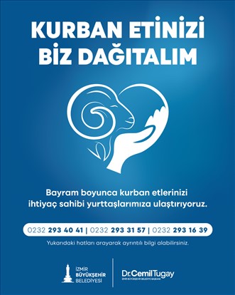 İzmir Büyükşehir Belediye Başkanı Dr. Cemil Tugay, zor bir haftadan geçildiğini belirterek “Bu hafta yaşadığımız krizi sizin desteğinizle aştık. Onun için her birinize yürekten tekrar tekrar teşekkür ediyorum. Yarın Kurban Bayramı, öncelikle bayramınızı kutlamak isterim. Aileniz ve sevdikleriniz ile çok güzel bir bayram diliyorum. Bayram boyunca dua edecek, kurban kesecek yurttaşlarımıza ‘Allah kabul etsin’ diyorum. Bu sene Kurban bağışı kampanyası yapmak istedik. Ne yazık ki valilik izin vermedi. O nedenle başka bir alternatif düşündük. Eğer kestiğiniz kurbanları yoksul ve ihtiyacı olan insanlara ulaştırmak isterseniz şehrin 13 farklı noktasında arkadaşlarımız sizin bağışladığınız kurban etlerini toplayacaklar, bunları soğuk hava depolarında saklayacaklar, bayram boyunca ihtiyacı olan binlerce, belki on binlerce yurttaşımıza ulaştıracaklar. Bağışlanan etlerin ihtiyaç sahiplerine gideceğinden hiçbir şüpheniz olmasın. Ülkemizin, şehrimizin her türlü felaketten, sıkıntıdan, dertten uzak olması, önümüzdeki günlerin aydınlık ve ferahlık içinde olması için biz de sizlerin hayırlarınıza aracılık etmiş olacağız. Bunun için de desteklerinizi bekliyoruz” dedi.