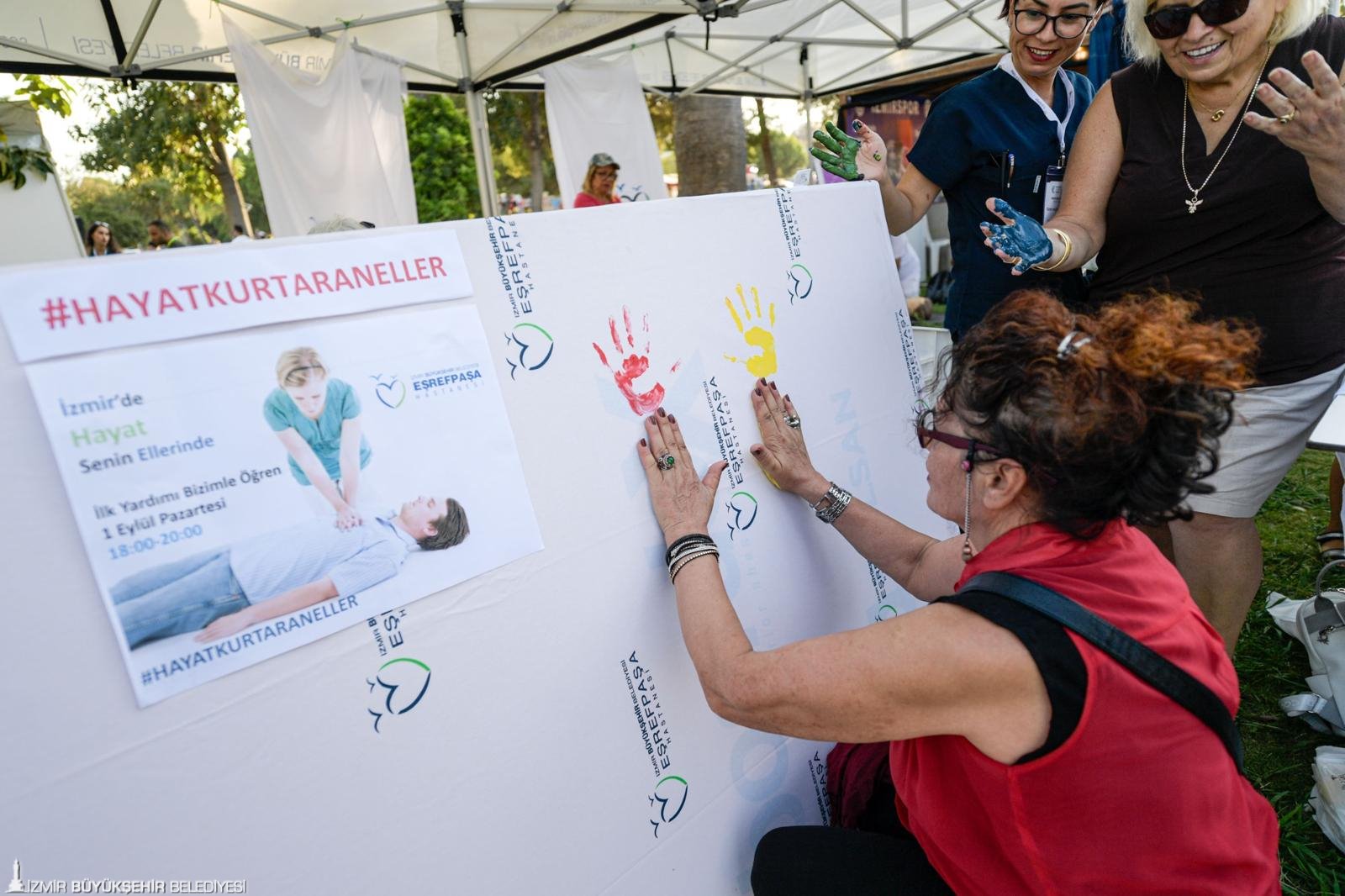 Stantta Hayat Kurtaran Eller etkinliği de yapıldı. Kalp masajını öğrenen katılımcılar ellerini renkli boyalara sürerek beyaz panoya iz bıraktı. Bayram, “Bu çalışma, bizim geleceğe bırakmak istediğimiz bir iz. Her kalp masajını öğrenen kişinin el izini buraya bırakmasını ve o panoyu saklamak, farkındalık oluşturmak istiyoruz” sözlerine yer verdi. Temel yaşam desteği eğitimlerinin fuar boyunca verileceğini kaydeden Bayram, ayrıca uzman hekimler ve hemşireler tarafından çeşitli etkinlikler yapılacağını sözlerine ekledi.