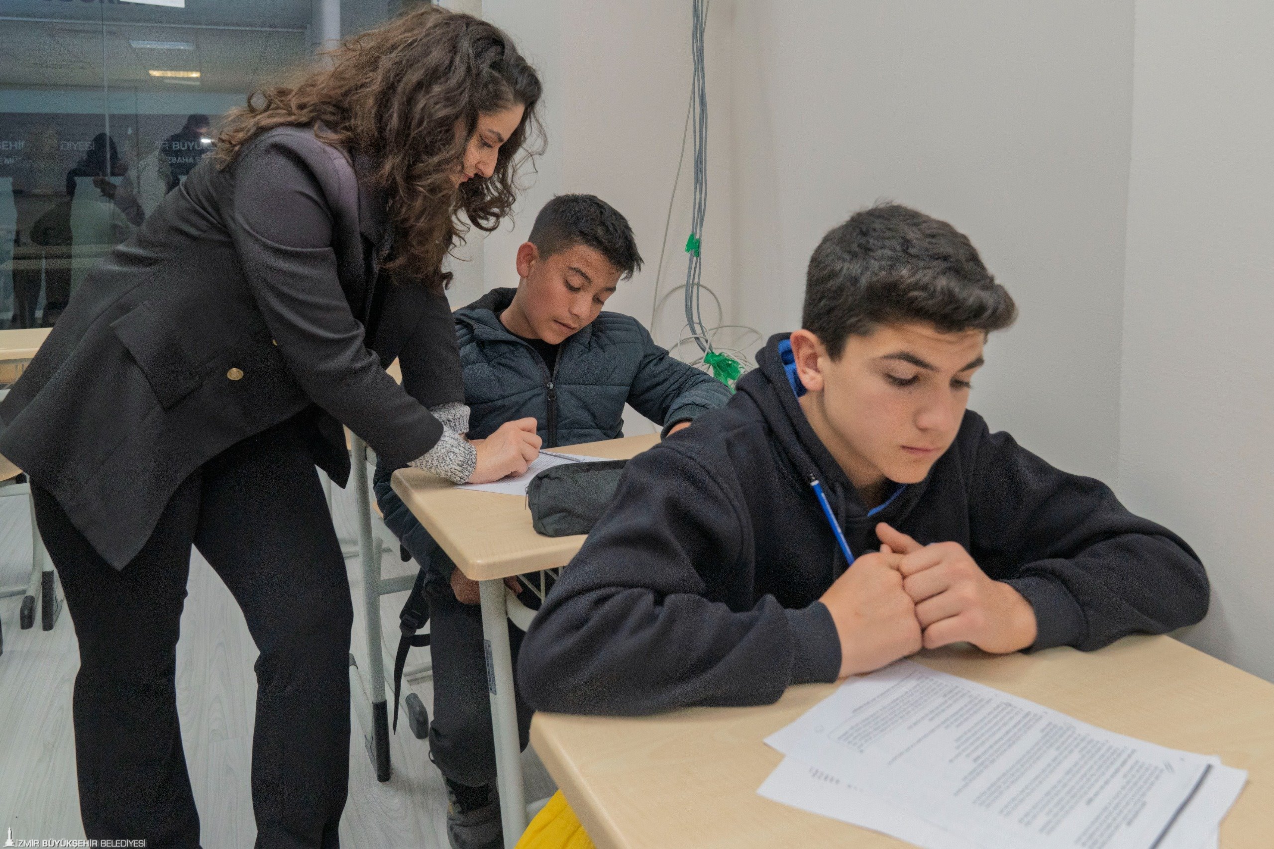 İzmirli 8. ve 12. sınıf öğrencilerinin LGS ve TYT sınavlarına daha verimli hazırlanmalarını ve farklı kaynaklara erişimlerini sağlamayı amaçlayan İzmir Büyükşehir Belediyesi, Konak Center’da Sınav Destek Merkezi’ni hayata geçirdi. Haftada beş gün öğrencileri ağırlayan merkez, matematik ve Türkçe alanlarında öğrencilerin sınav odaklı çalışmasına destek oluyor. Takıldığı konu ve soruları öğretmenlere soran öğrenciler, ders hakkında tekrar yapma fırsatı da buluyor. Ücretsiz hizmet veren merkezde ayrıca haftada bir gün olmak üzere sınav kaygısı ve stres yönetimine yönelik rehberlik çalışmaları da yapılıyor. Sınav Destek Merkezi’ne başvurular devam ediyor. Merkez, LGS ve TYT’ye giren öğrencilere lise tercihi ve üniversite tercihi döneminde de destekte bulunacak.