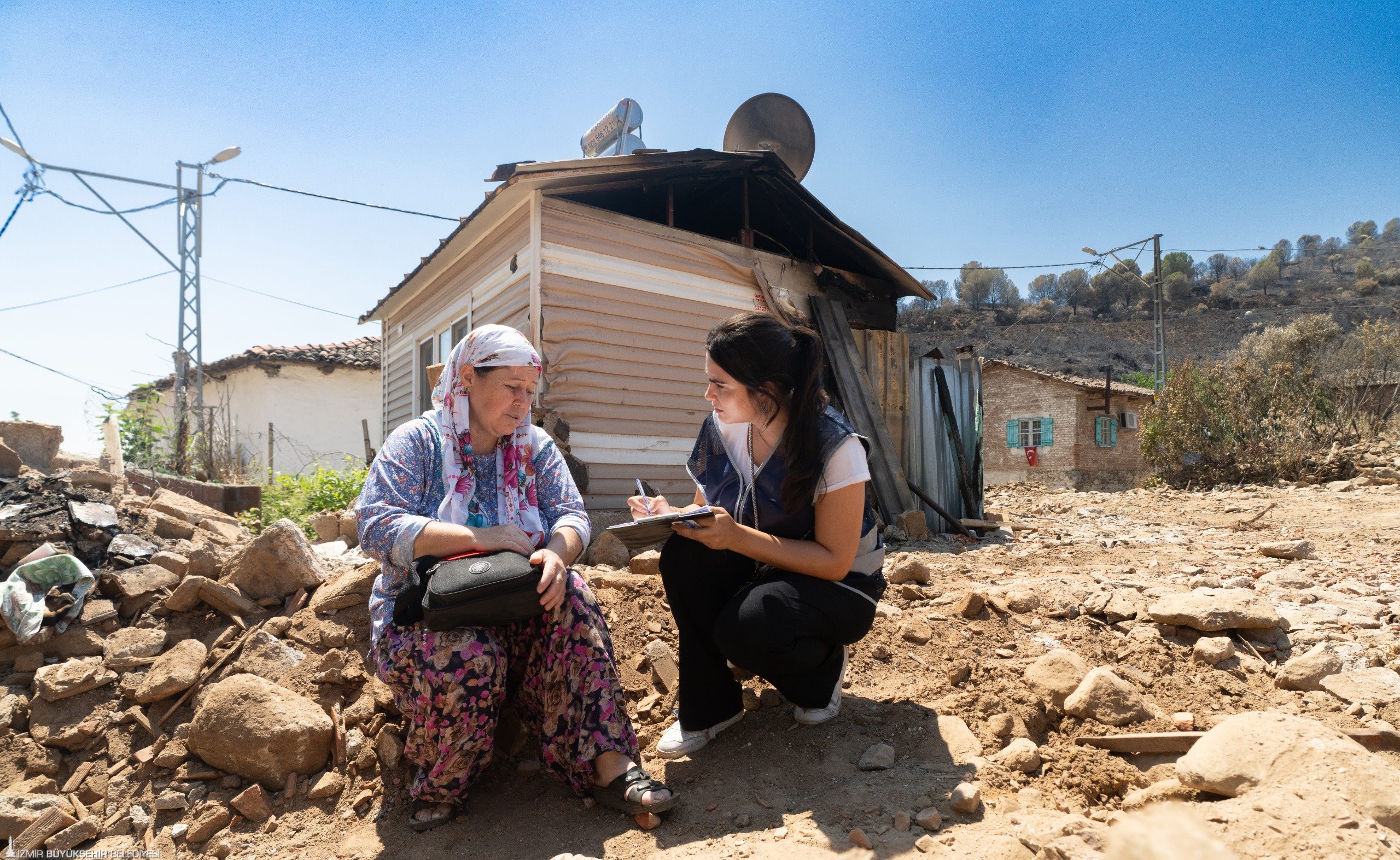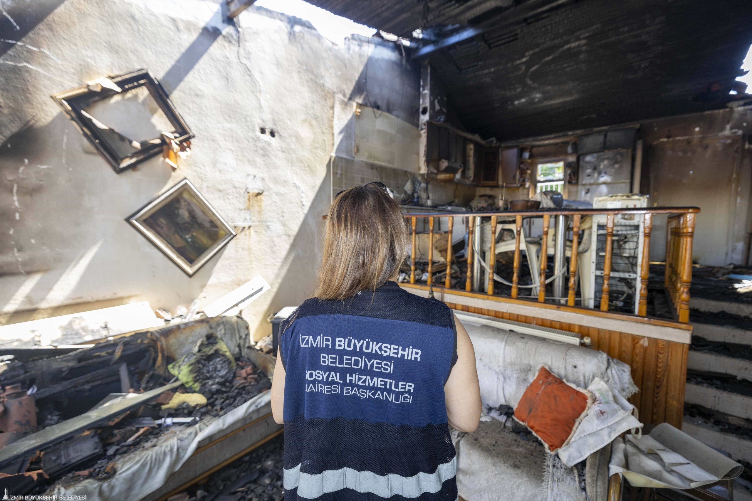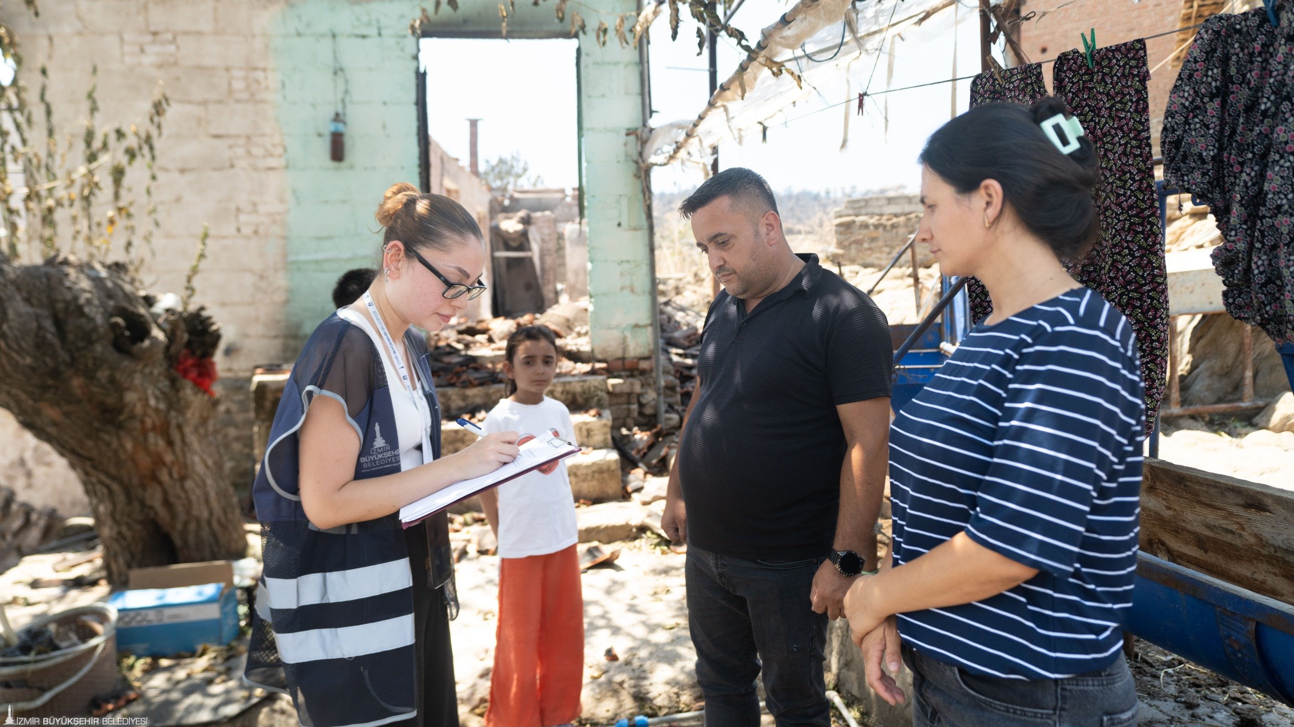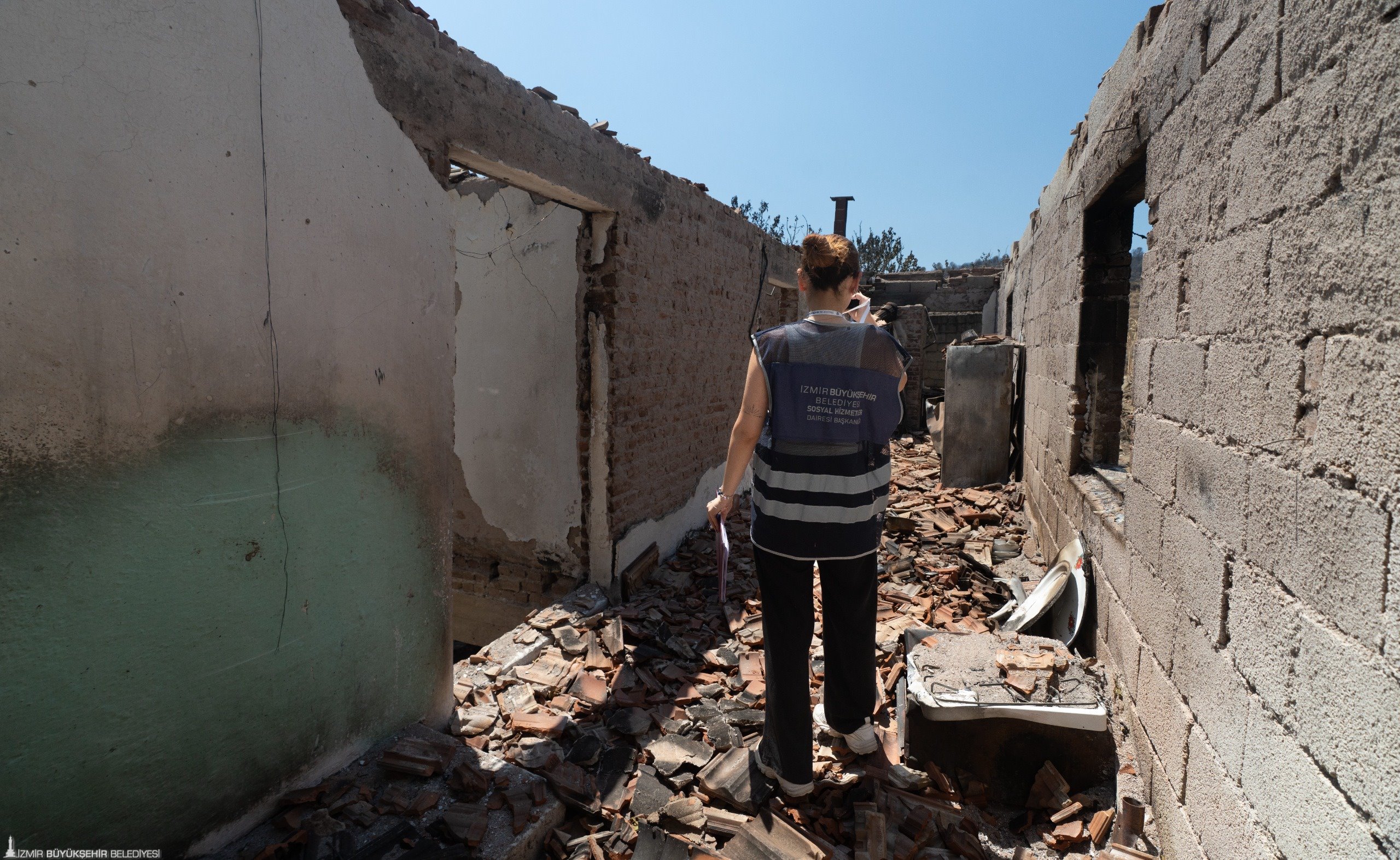 Bölgede incelemelerini sürdüren Sosyal Hizmetler Dairesi Başkanlığı Sosyal İnceleme Ekibi Şefi Gamze Kocadağ, “İzmir Büyükşehir Belediye Başkanı’mız Dr. Cemil Tugay’ın talimatıyla 26 Haziran’dan bu yana çıkan yangınlar nedeniyle vatandaşımızın yanında olmak için sahadayız. Ödemiş, Seferihisar, Foça, Aliağa, Çeşme, Gaziemir gibi birçok ilçede yerinde tespit yaparak vatandaşlarımızın su, gıda, barınma, giysi ve hijyen malzemeleri ihtiyaçları için destek sağladık. Yangından etkilenen vatandaşlarımızı ziyaret ediyor, ihtiyaçlarını yerinde tespit etmeye devam ediyoruz. Bu yaraları hep birlikte saracak, hep birlikte güçleneceğiz. Kimseyi yalnız bırakmamak ve her koşulda onların yanında olduğumuzu belirtmek için buradayız. Biz varız, hepimize geçmiş olsun” dedi.