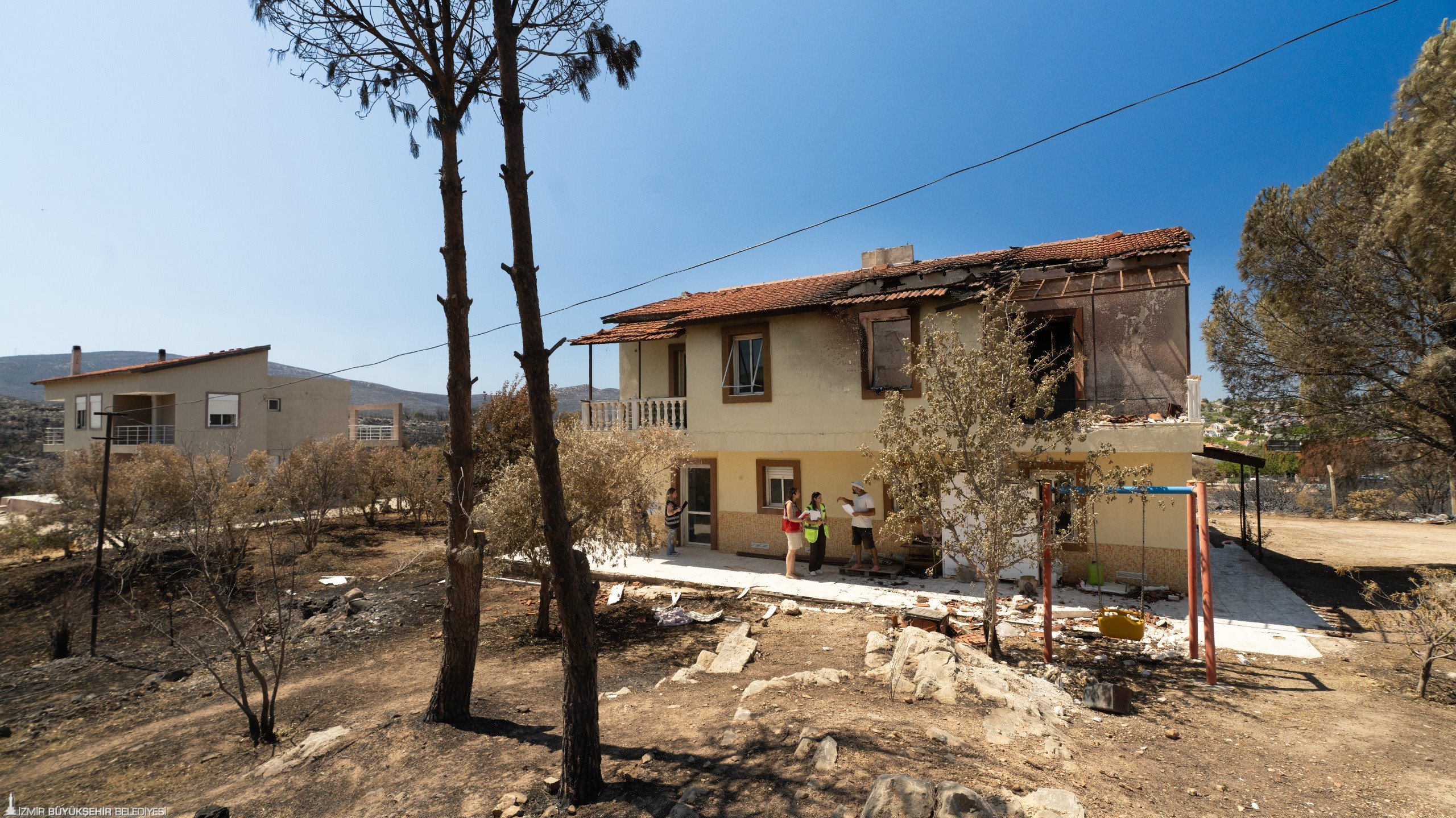 Torbalı’da yaşayan, Seferihisar’daki yazlık evi yanan Güner Kurtuluş, “Yangının çıktığı gün Güzelbahçe Payamlı’da yaşayan akrabalarımızın yanına gittik ve yangın nedeniyle ihtiyaçları var mı diye sorduk. Biz onlara desteğe giderken, yangın rüzgârın etkisiyle evimizin bulunduğu bölgeye sıçradı. Jandarma sitemizi tahliye etti. Çatı katı eşyalarımla birlikte tamamen yandı. Bugün gelen ekiplere yanan eşyalarımızın listesini verdik. Sağ olsunlar zararımızın boyutunu tespit etmeye çalıştılar. İtfaiye ekipleri de hasar tespitini yaptı. İzmir Büyükşehir Belediyesi öğlen ve akşam yemeklerini de getirdi. Yavaş yavaş yaralarımızı saracağız” diye konuştu.