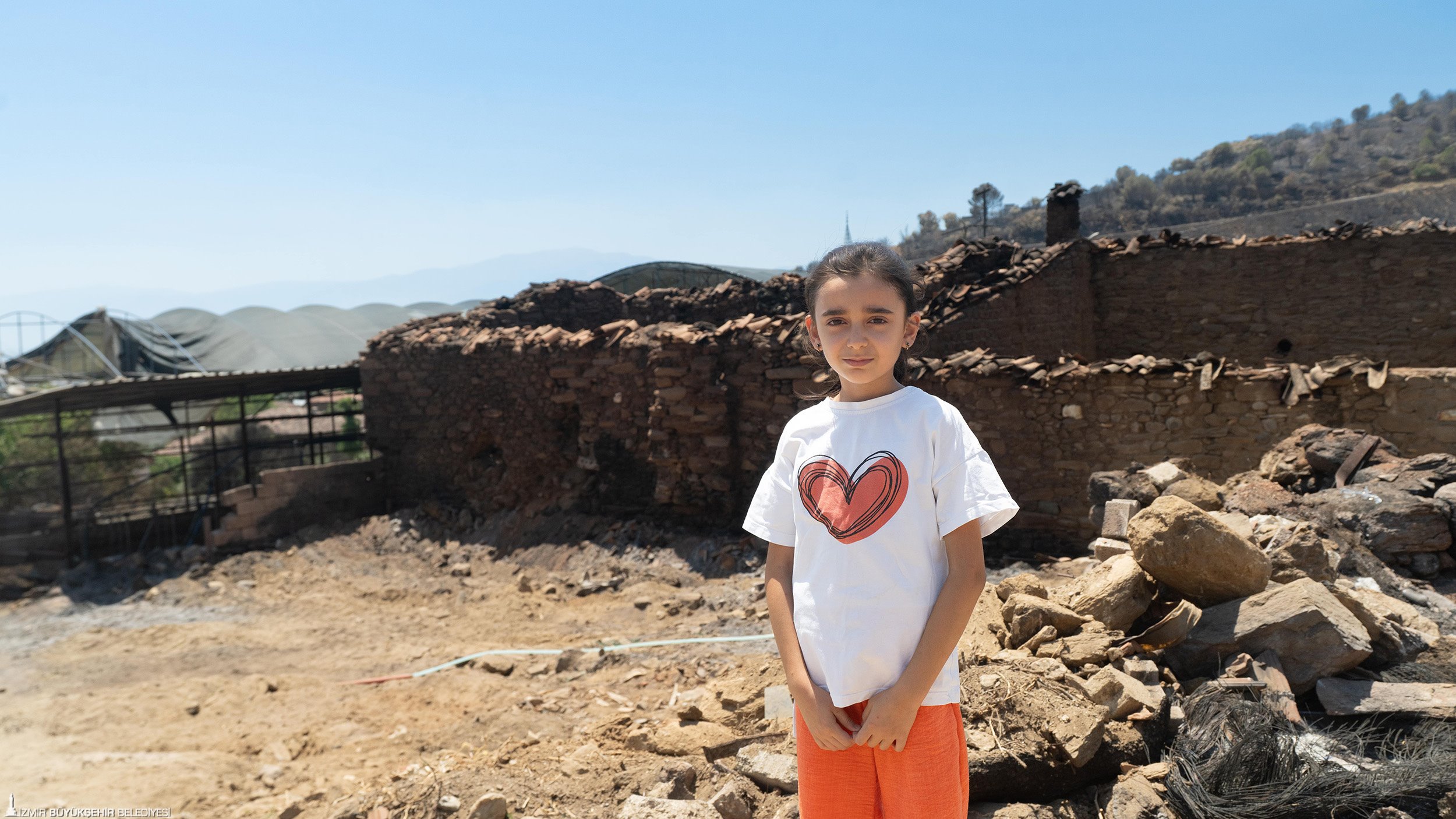 Anne Gülçin Kesimoğlu da “Yangın çok hızlı oldu. O an sadece canımızı ve hayvanlarımızı kurtardık. Üstümüze kar yağar gibi kül yağıyordu. Ertesi gün her şeyin kül olduğunu gördük. Emeklerimizin yerle bir olduğunu gördüğümüzde yıkılmıştık. O sırada Başkan Cemil Tugay geldi. Allah bin kere razı olsun. Bizi ve kızımızı teselli etti. Yanımızda olduğunu hissettirdi” diye konuştu.