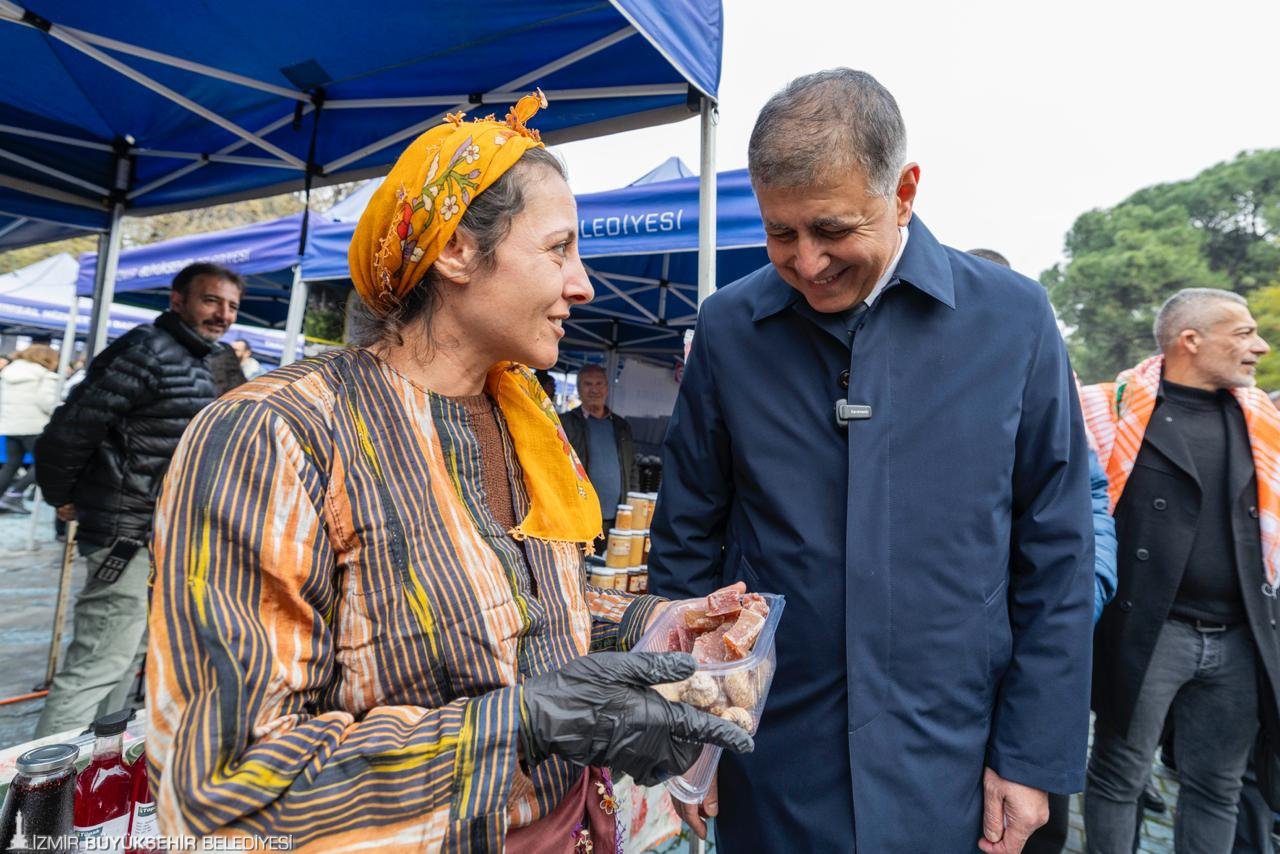 İzmir Büyükşehir Belediyesi tarafından kurulan, kooperatif ürünlerinin satıldığı, üreticinin alın terini koruyan İZMAR mağazalarının sayısının yakında 20’ye ulaşacağını söyleyen Tugay, “Önümüzdeki sene belki 40 ya da 50 olacak. İzmir’in her yerinden İZMAR açılması için talep geliyor. O marketlerde sizlerin ürünleri satılacak. Sebze meyveler için özel marketler kuracağız. Restoranlar, oteller, turizm işletmeleri kaliteli ve iyi ürünü uygun fiyata alsın diye büyük toptancı marketleri açacağız. Bunların hepsi sizin üretmenize ihtiyaç duyuyor. Siz ürettikçe oralarda insanlar daha iyi ürünlerle, daha iyi fiyatlarla buluşacaklar. Kadın kooperatiflerimiz için de bir şey söyleyeyim; her birisini kendi ürettiklerini sattıkları ortamlarda sıkça görüyorum. İyi ki varsınız. Geçenlerde balık halimizin başkanı ile konuştum. Kadın kooperatiflerimiz ile şehir içerisinde uygun noktalarda balık ekmek stantları oluşturacağız. Normalde satılan fiyatın altına balık getireceğiz. Bunu yaparken sadece balıkçılara ve kadınlarımıza değil aynı zamanda o ürüne uygun fiyatla ulaşmaya ihtiyacı olan gençlerimize, ihtiyaç sahibi insanlarımıza da hizmet etmiş olacağız” dedi.
