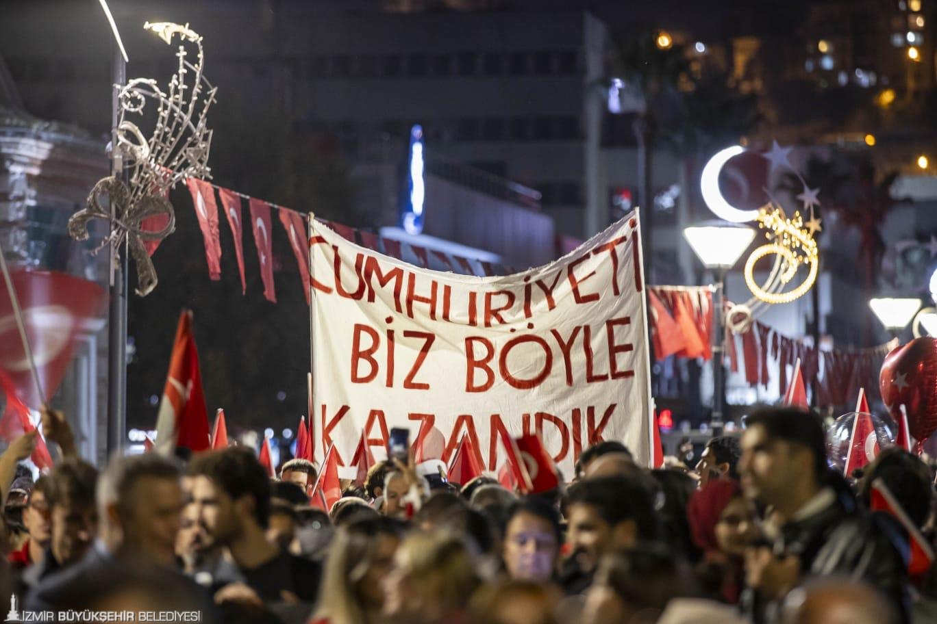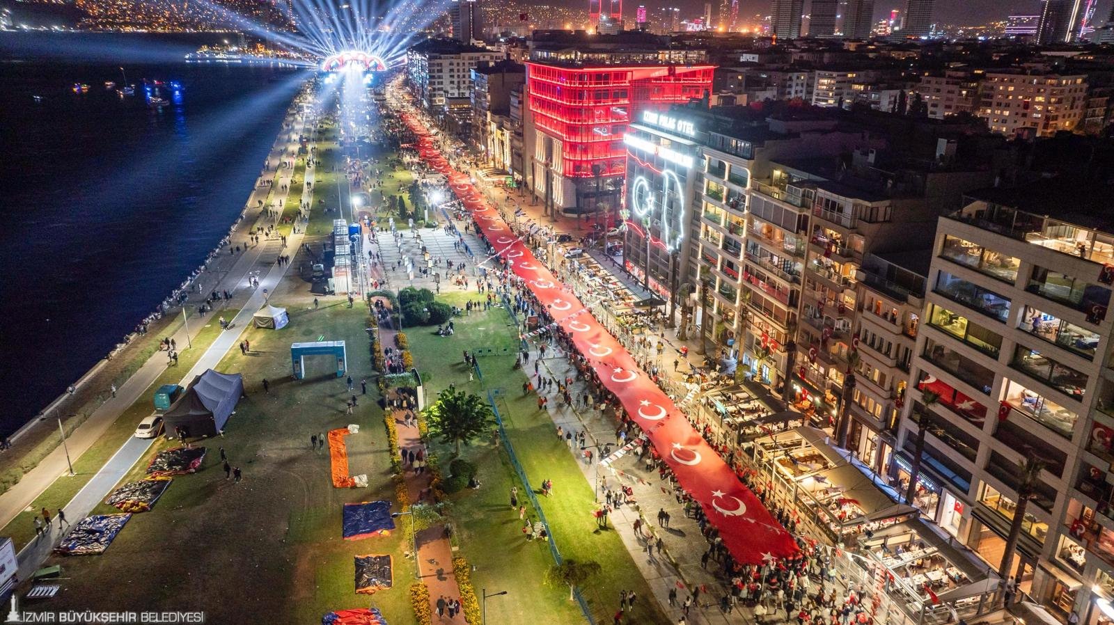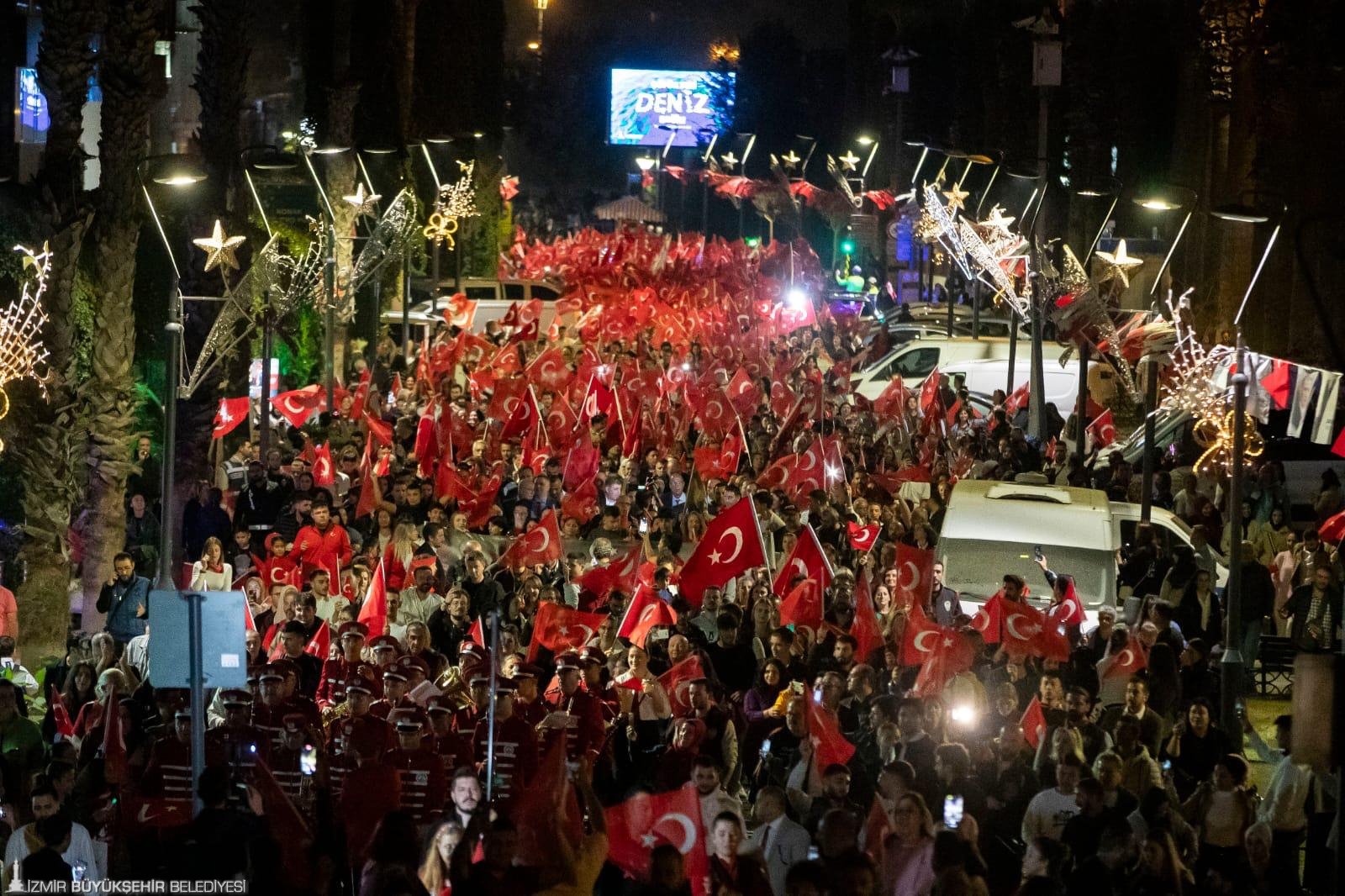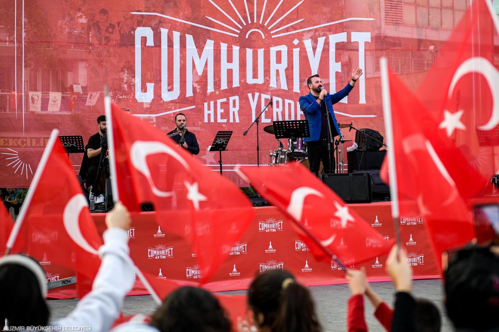 29 Ekim Cumhuriyet Bayramı kutlamaları ve geçit töreni ise saat 10.00’da Cumhuriyet Meydanı’nda başlayacak. Programda; protokol konuşmaları, öğrencilerin şiir okumaları, halk oyunları gösterileri ve dans gösterileri yer alacak. Ege Ordusu ve Garnizon Komutanlığı Bandosu 102. Yıl konseri ise Konak Atatürk Meydanı’nda saat 17.00’de başlayacak. Protokol ve yurttaşlardan oluşan kortej, Hükümet Konağı önünde saat 20.00’de toplanarak İzmir Büyükşehir Belediye Bandosu eşliğinde Alsancak istikametine doğru yürüyecek. Kortej, Konak Pier AVM’nin önünde 350 metrelik Türk bayrağı ve fener alayı ile birleşecek ve dev yürüyüş Cumhuriyet Meydanı'na doğru devam edecek. Cumhuriyet coşkusu, saat 21.00’de Gündoğdu Meydanı’nda düzenlenecek Haluk Levent konseri ile doruğa çıkacak.